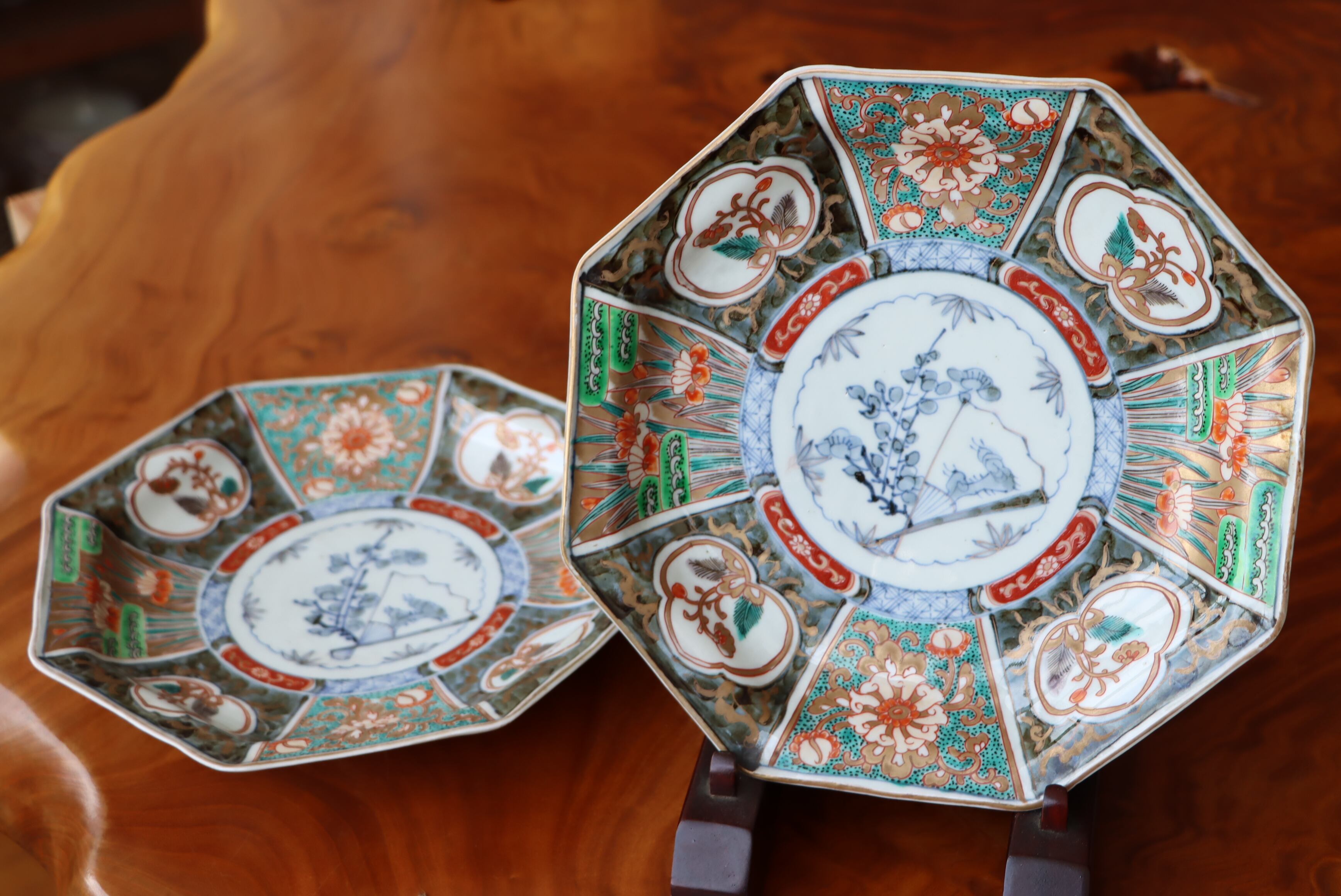 焼成時に窯の中でできる鉄分、くっつき、かまきず、経年による釉薬の薄れがございます。また、一枚一枚手描き、手作りですので器のサイズ(ミリ)、色味、描かれている文様の大きさなど個体差があり、ひとつとして同じものはございません。そういった時代感、個性をご理解いただき、楽しんでくだされば幸いです。電子レンジや食器洗い乾燥機のご使用はお控えください。