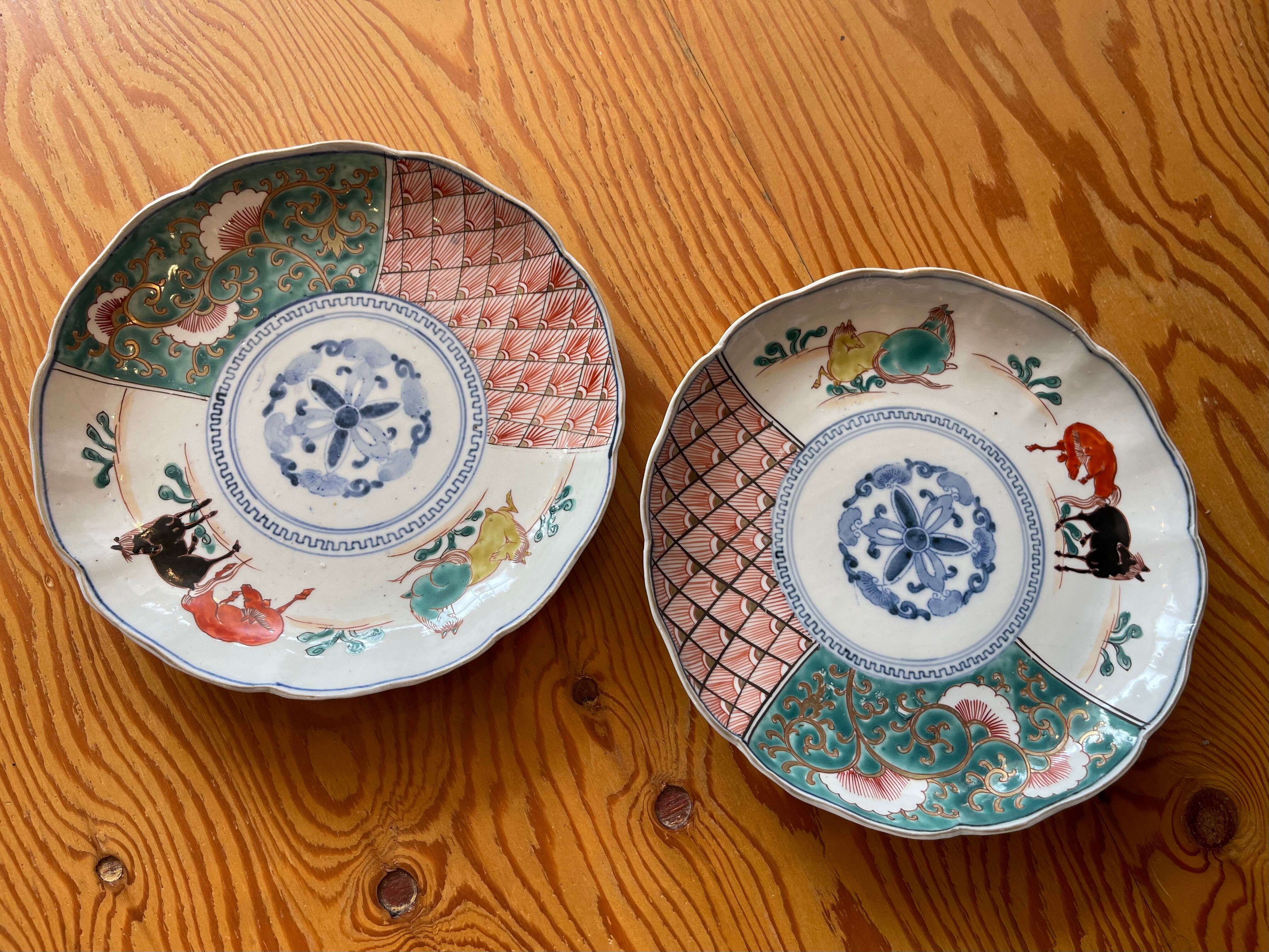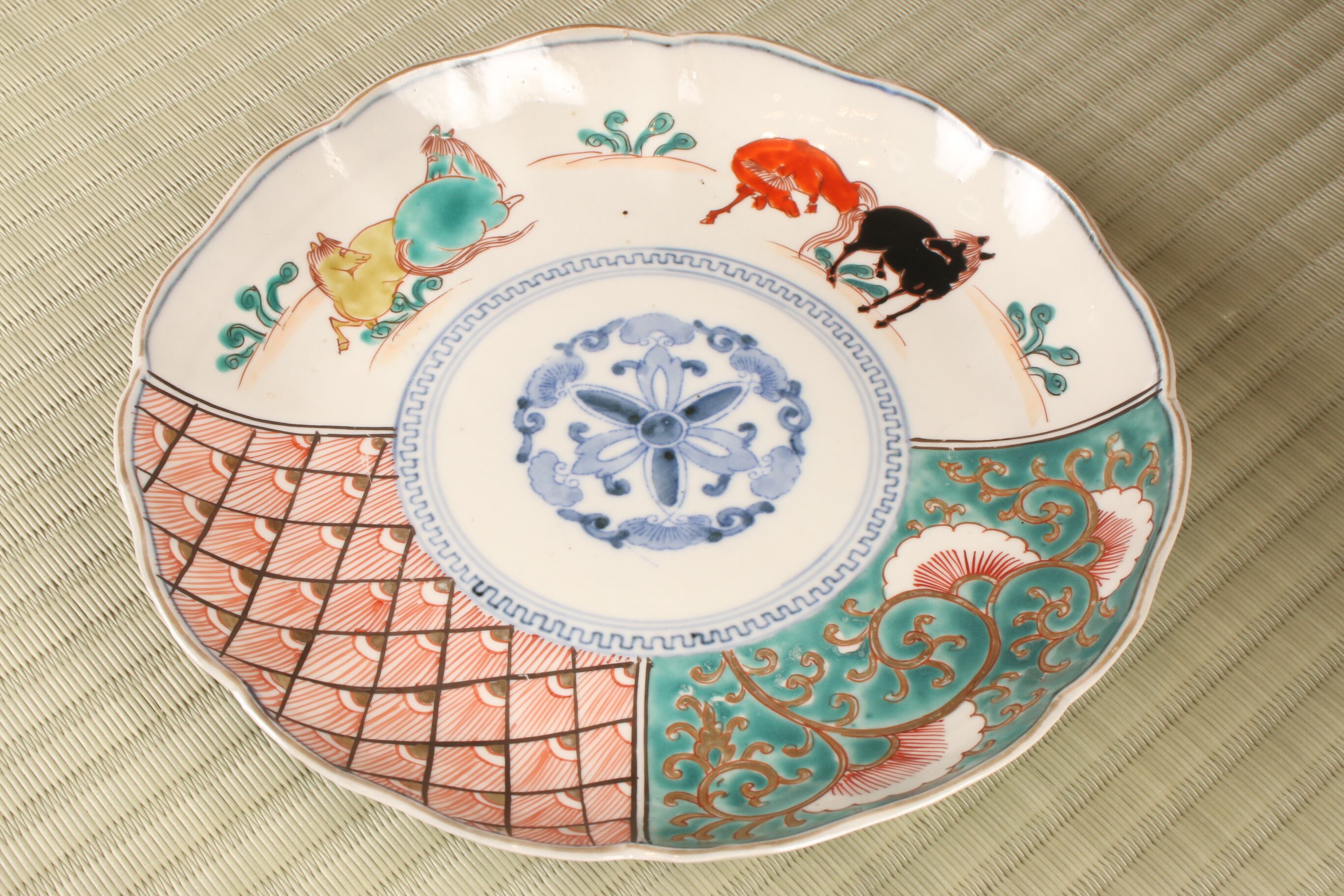 状態:釉薬の剥がれあり。焼成時に窯の中でできる鉄分、くっつき、かまきず、経年による釉薬の薄れがございます。また、一枚一枚手描き、手作りですので器のサイズ(ミリ)、色味、描かれている文様の大きさなど個体差があり、ひとつとして同じものはございません。そういった時代感、個性をご理解いただき、楽しんでくだされば幸いです。電子レンジや食器洗い乾燥機のご使用はお控えください。