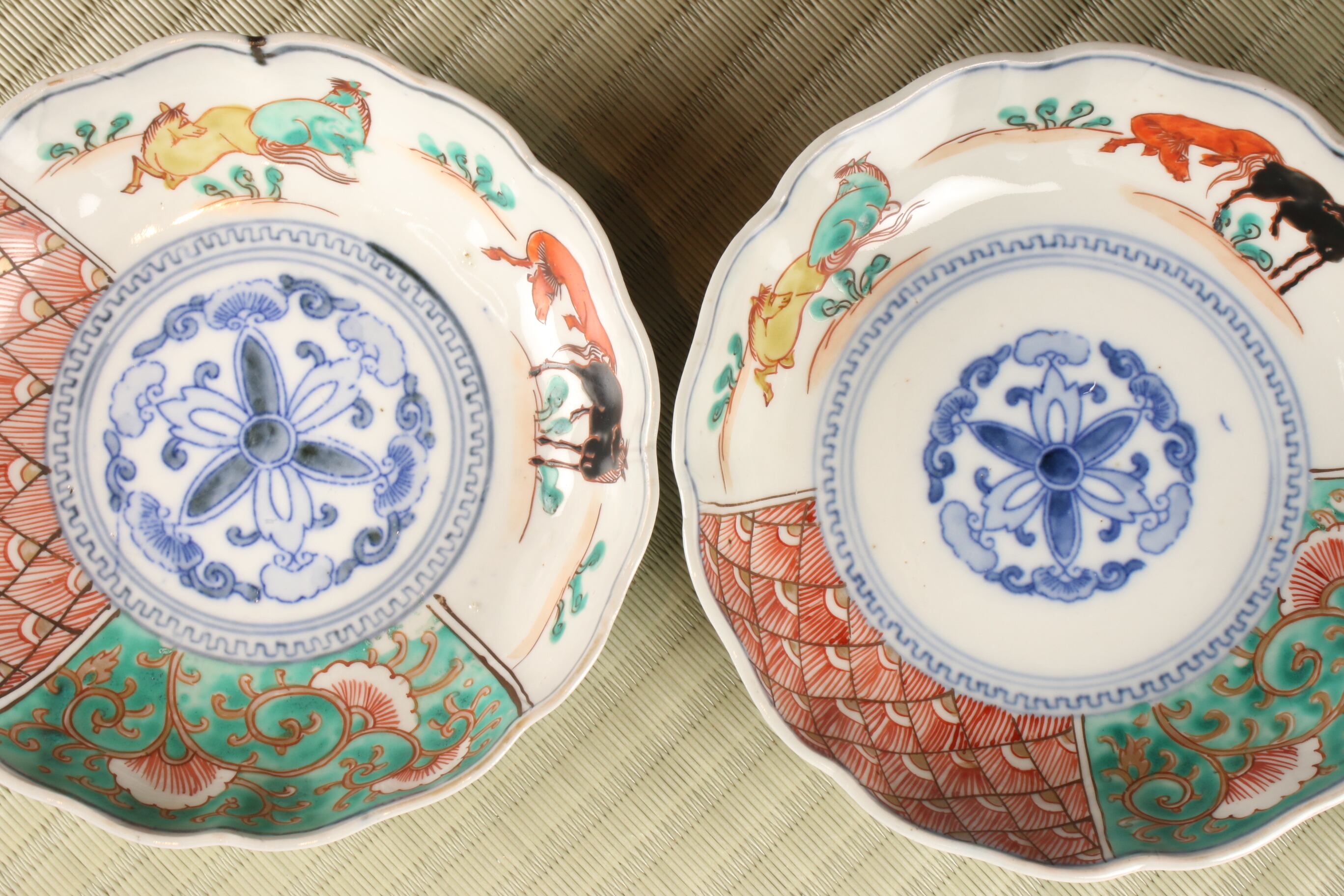 状態:焼成時に窯の中でできる鉄分、くっつき、かまきず、経年による釉薬の薄れがございます。また、一枚一枚手描き、手作りですので器のサイズ(ミリ)、色味、描かれている文様の大きさなど個体差があり、ひとつとして同じものはございません。そういった時代感、個性をご理解いただき、楽しんでくだされば幸いです。電子レンジや食器洗い乾燥機のご使用はお控えください。