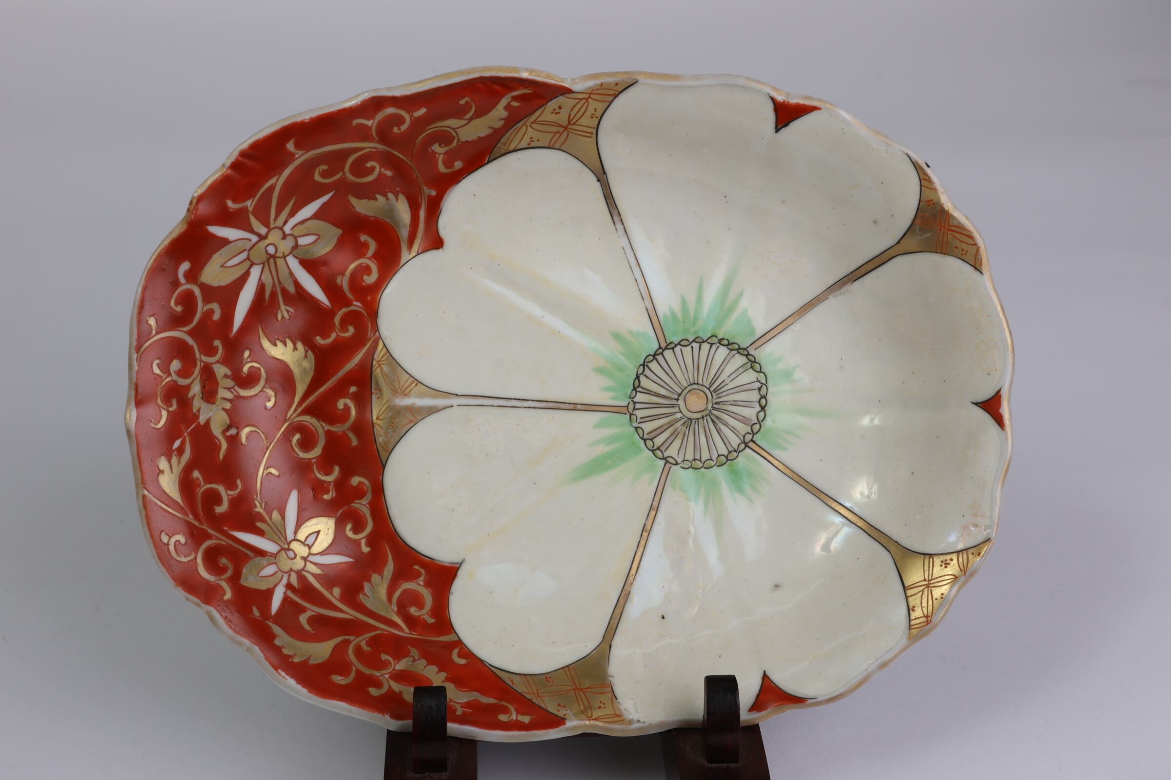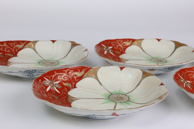 変形皿 伊万里焼 色絵 花文 五枚組 C