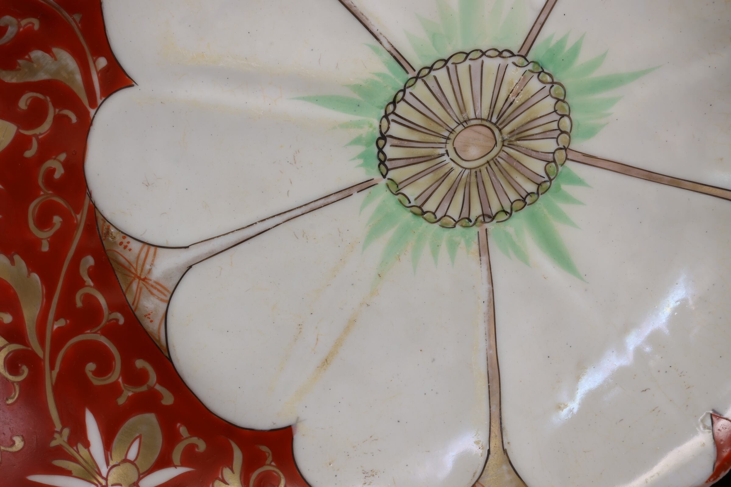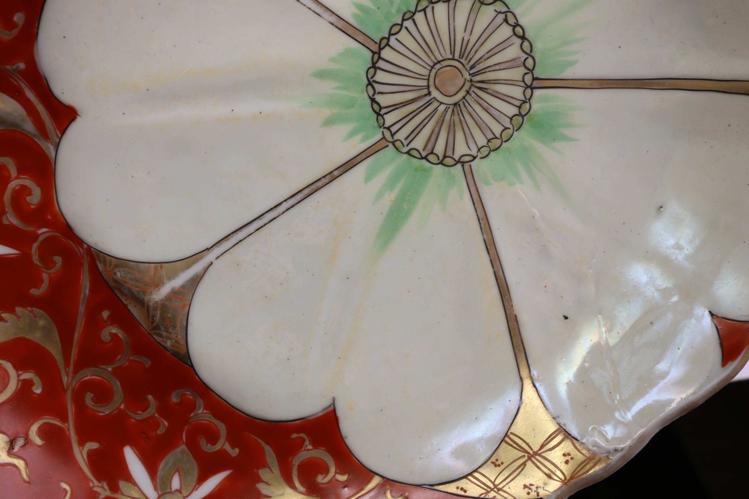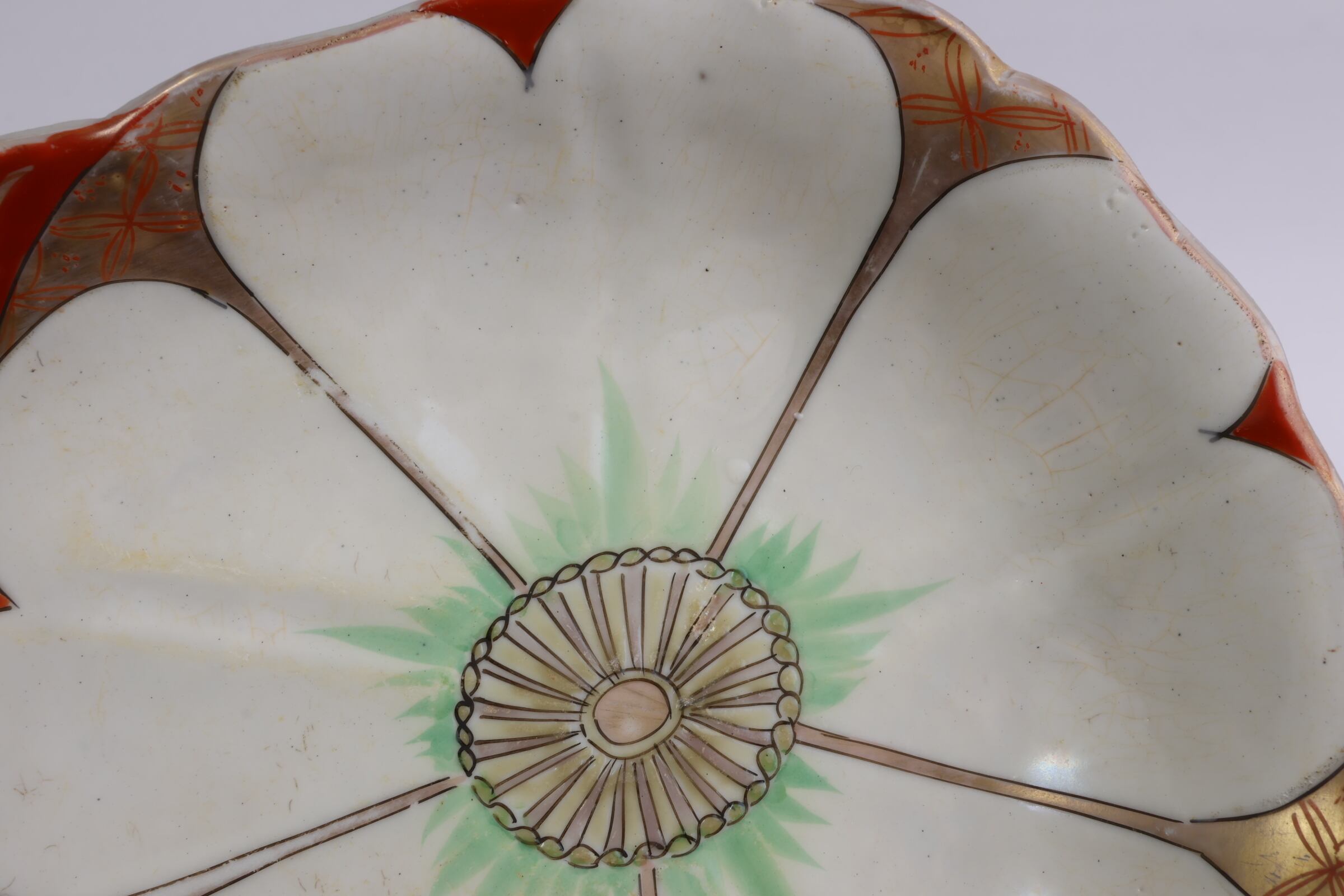 状態:白い花弁の部分に焼く段階でできる貫入、釉薬のヒビ割れのようなものがございます。その他に鉄分、くっつきがございます。お写真にてご確認ください。