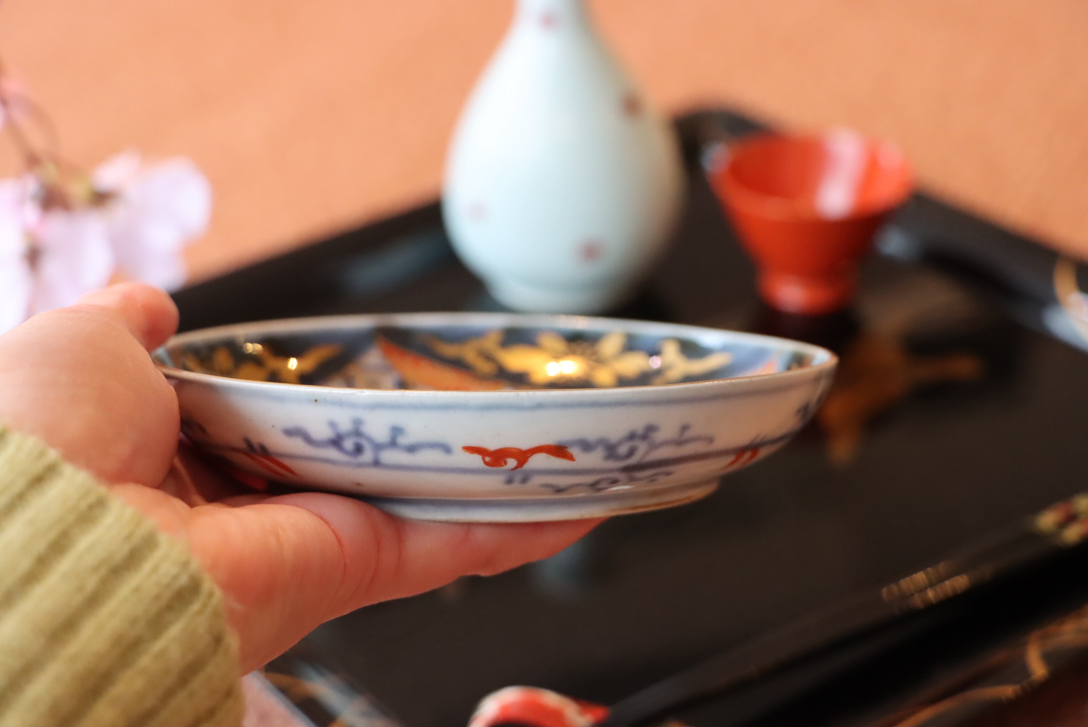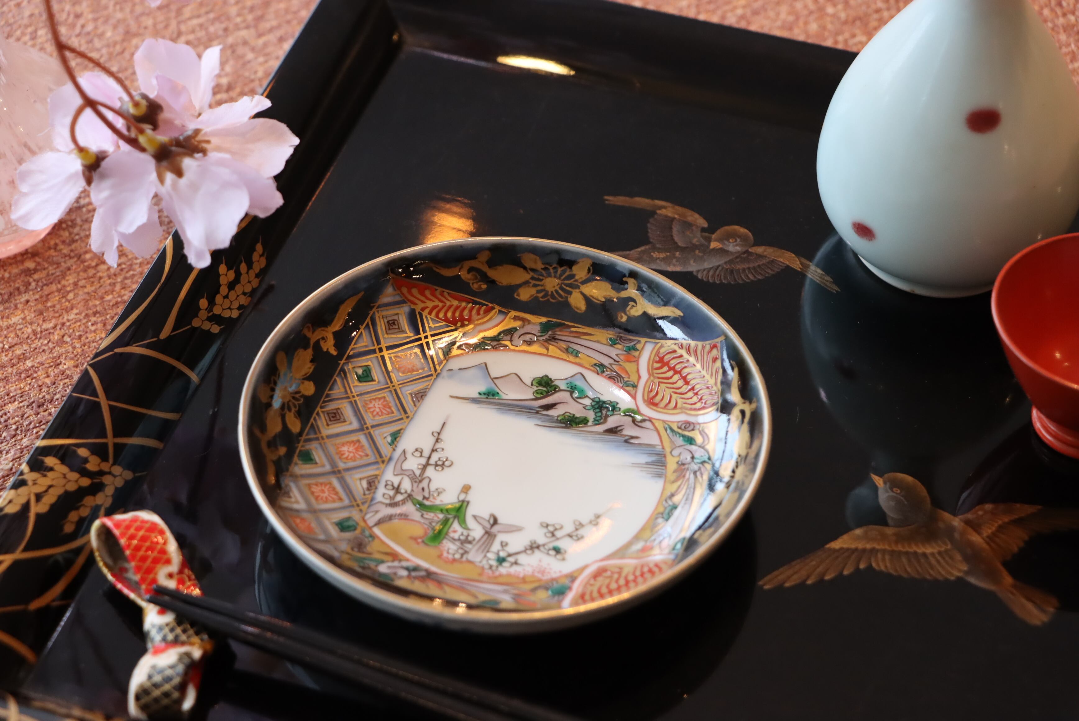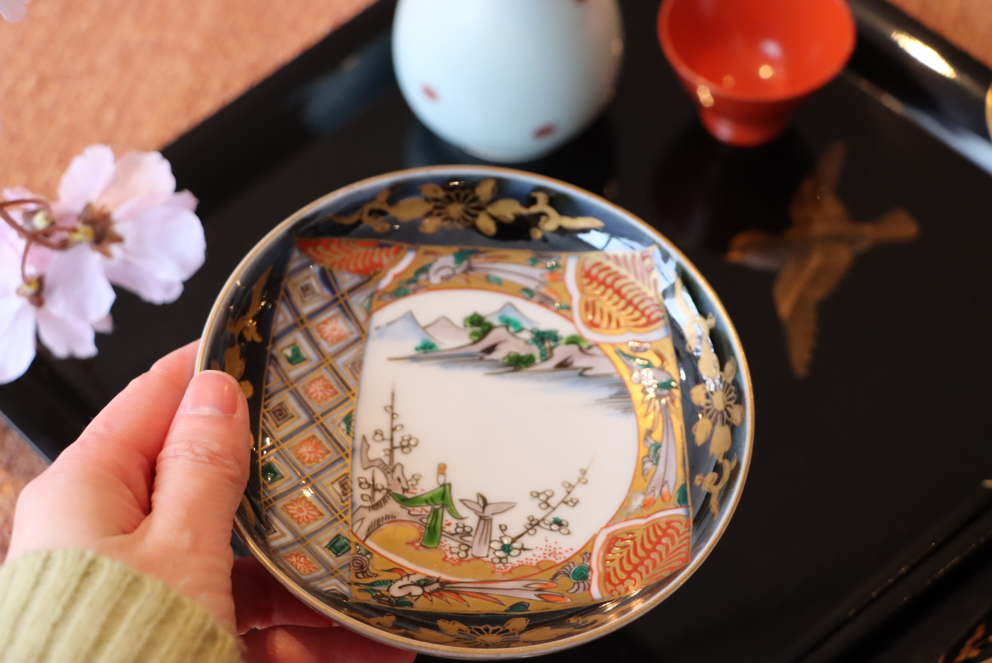 お雛様の持ち物である扇形の変形皿と組み合わせてお使いになられてはいかがでしょうか?