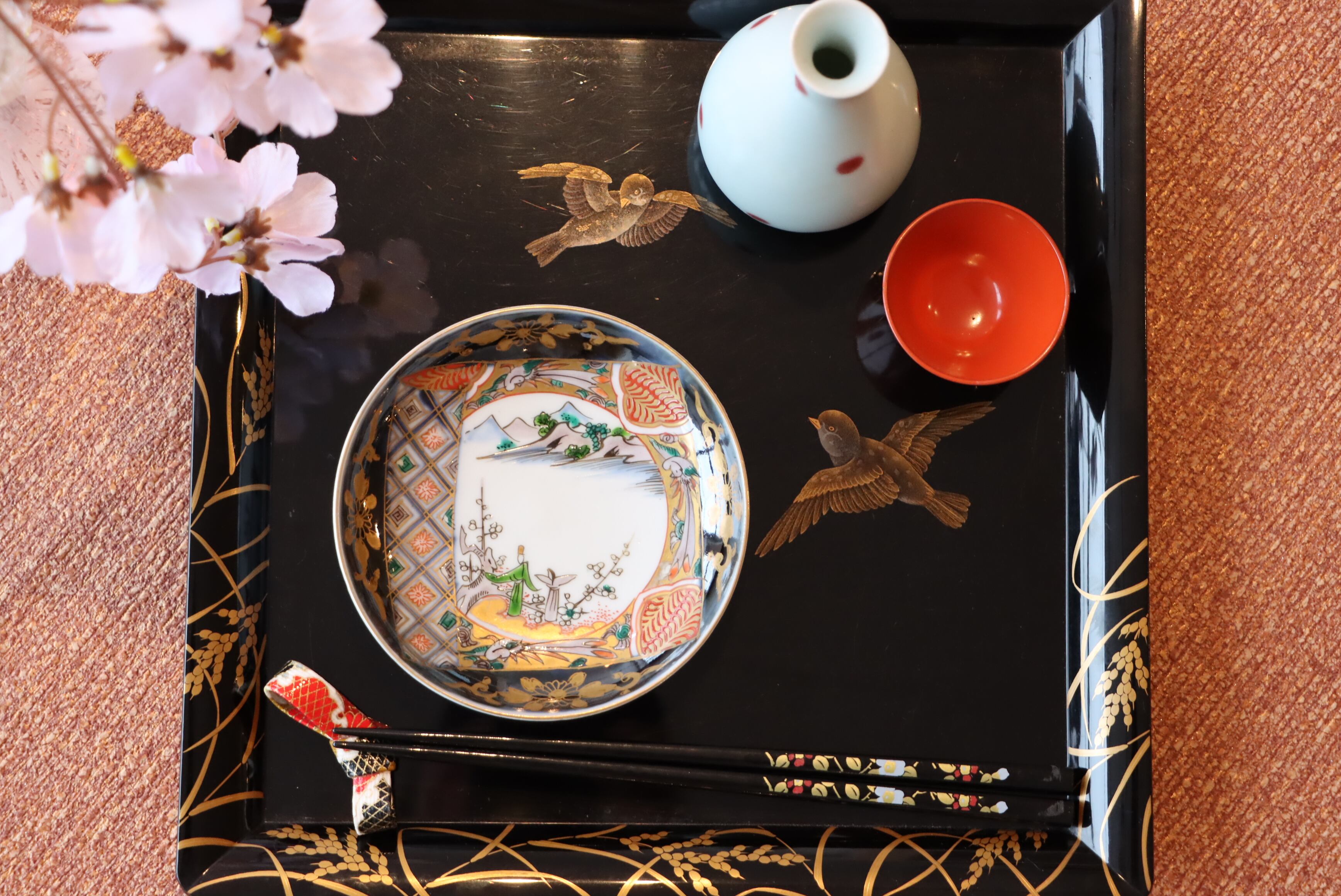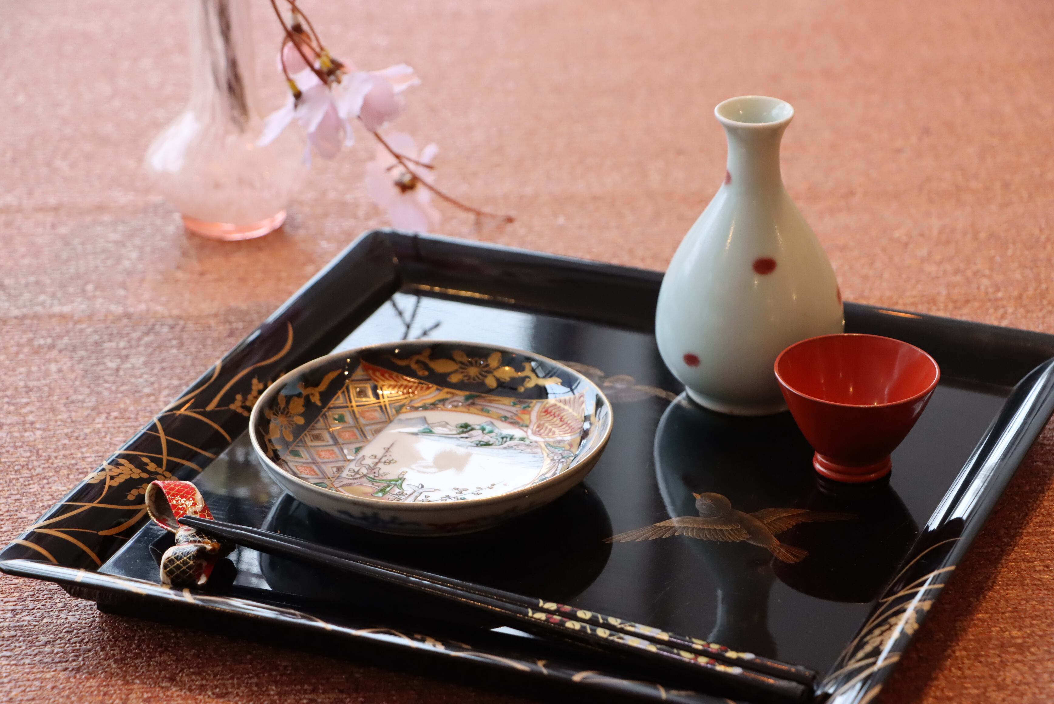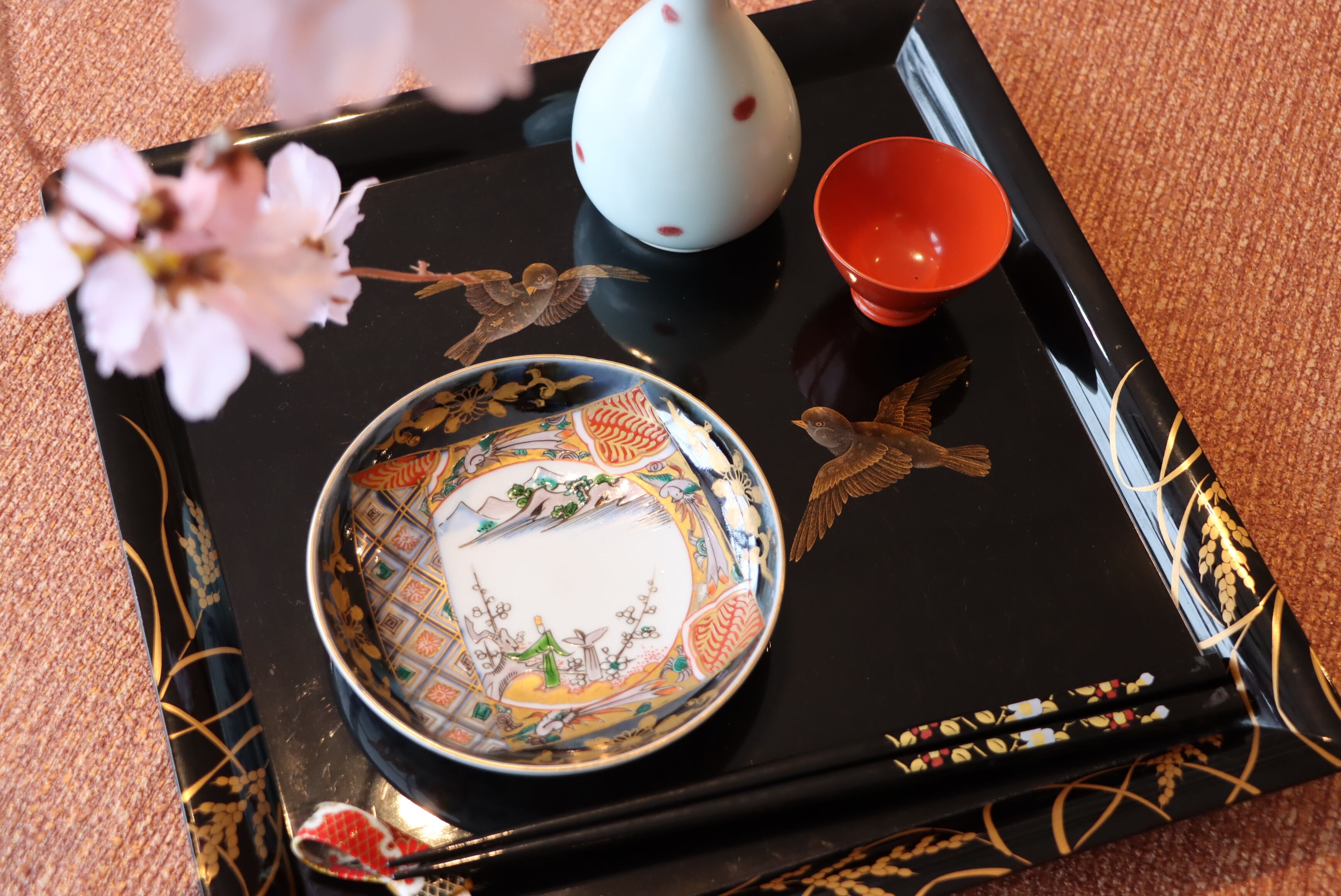 お雛様の持ち物である扇形の変形皿と組み合わせてお使いになられてはいかがでしょうか?
