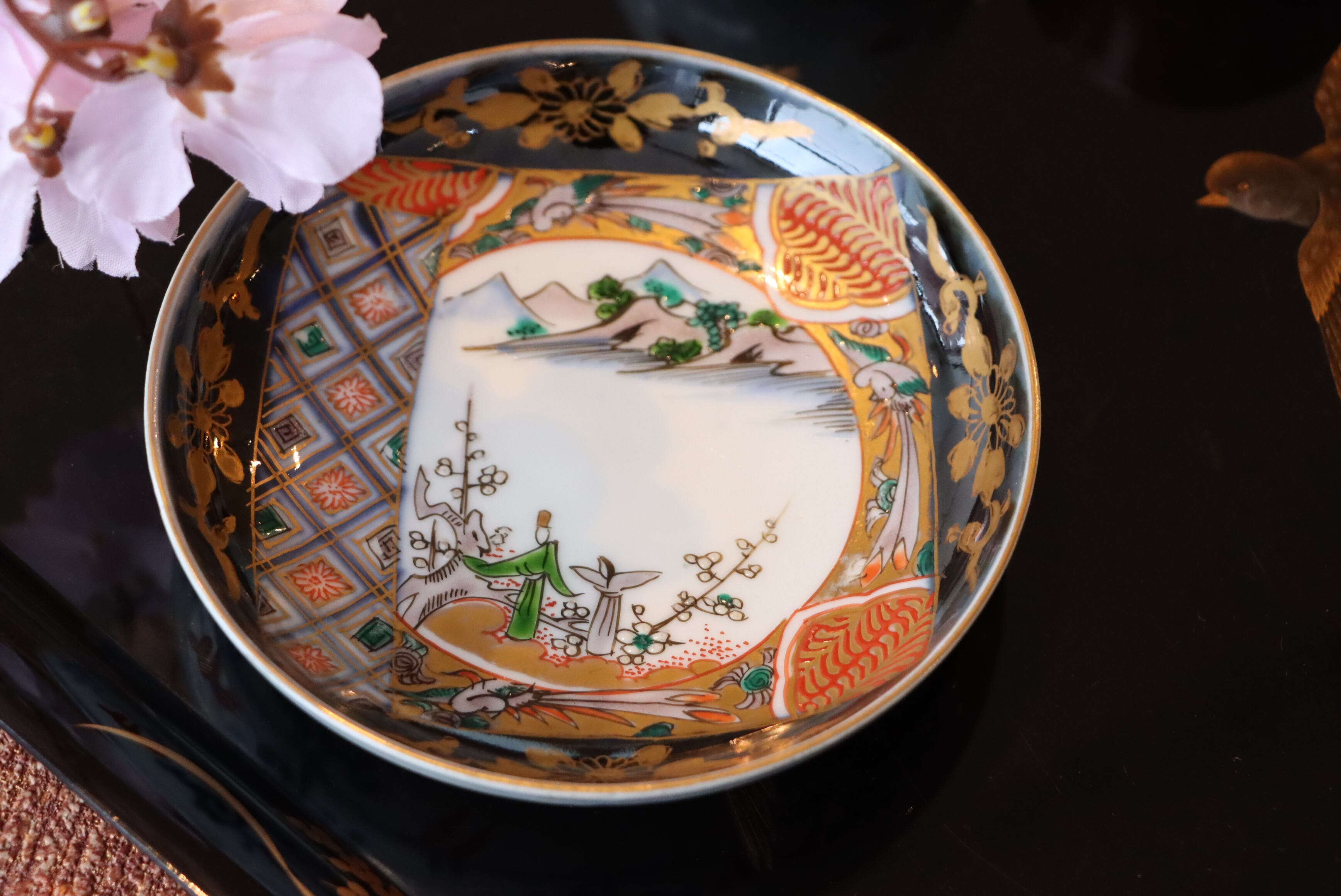 風景の中に立ち雛が描かれた小皿✨
