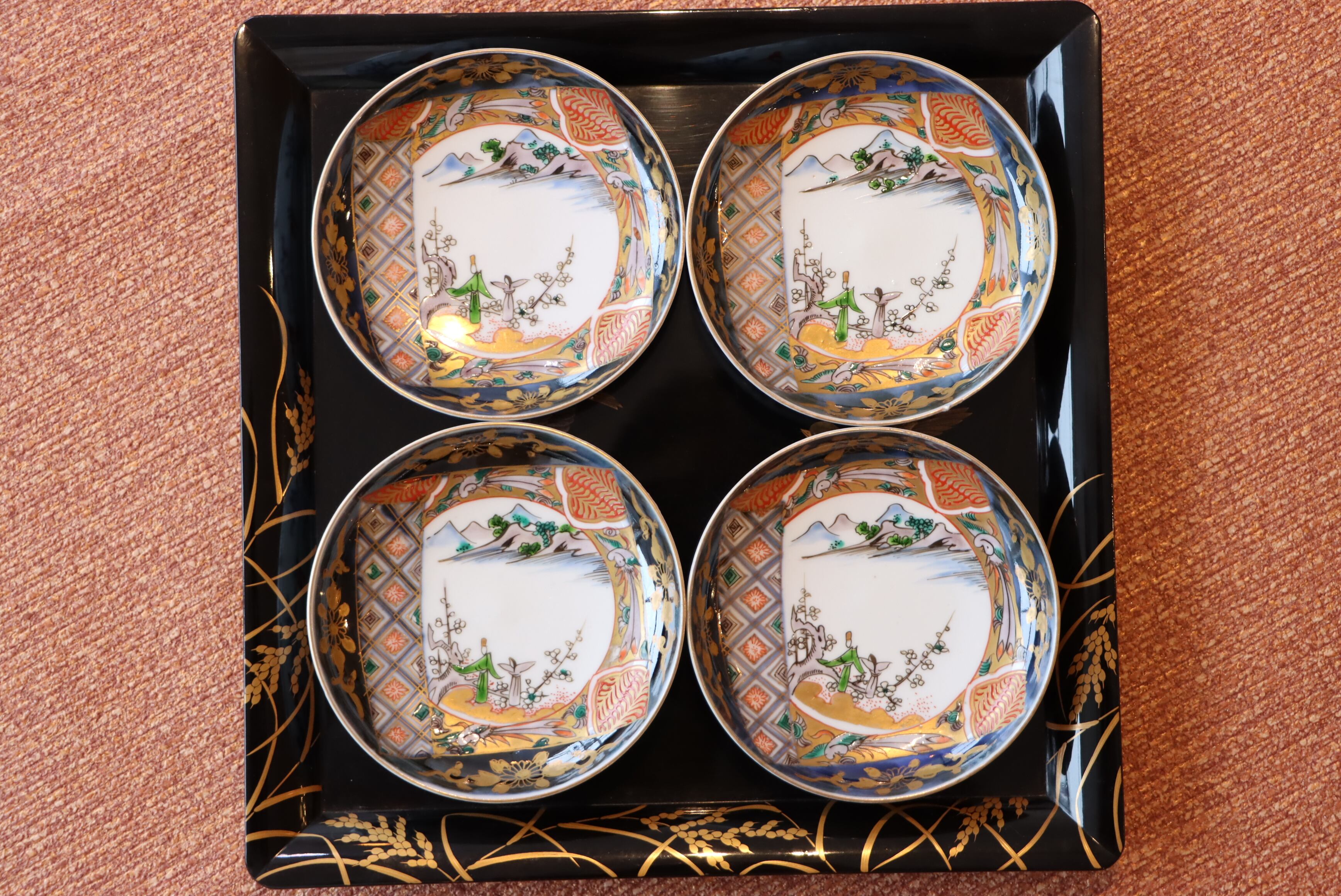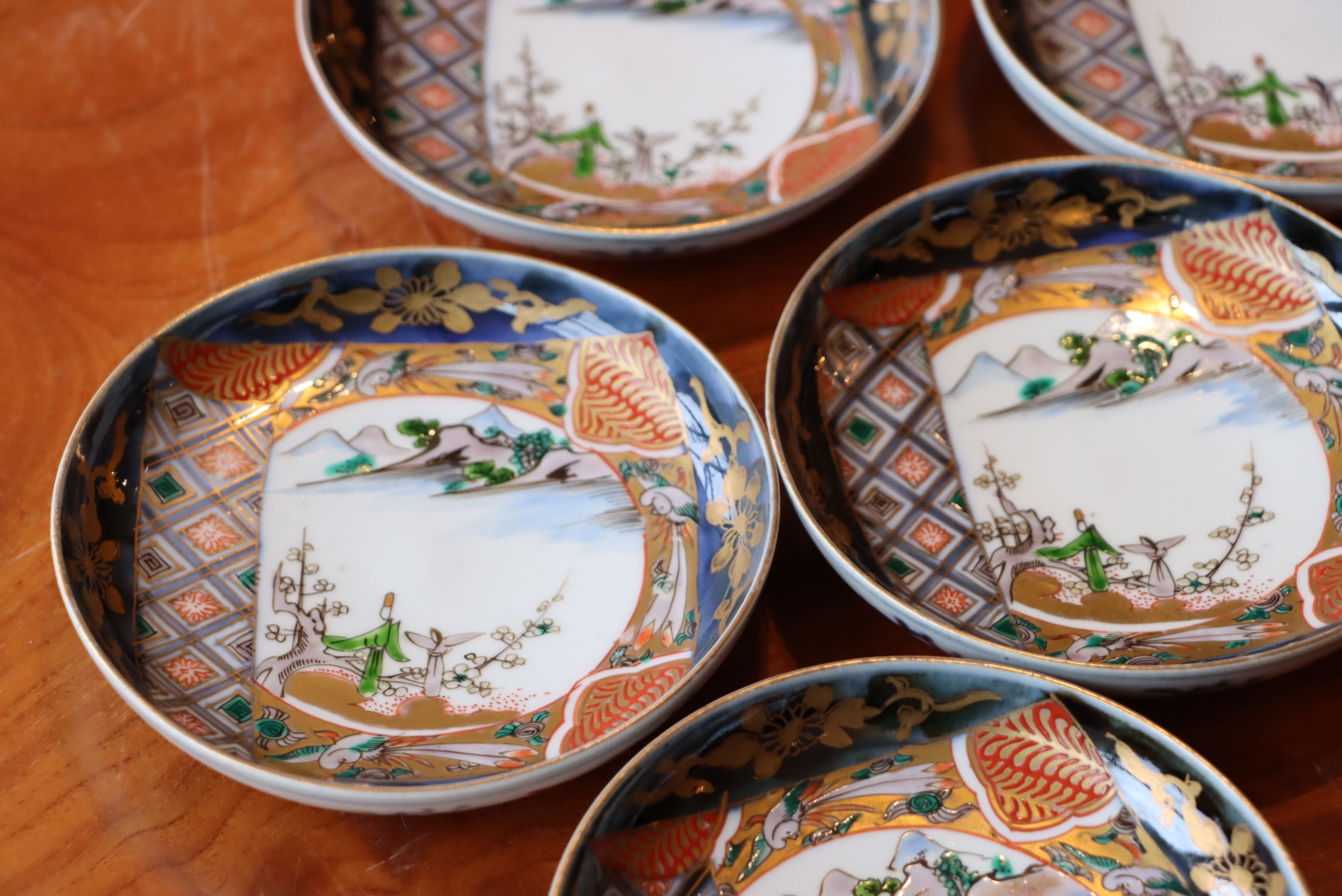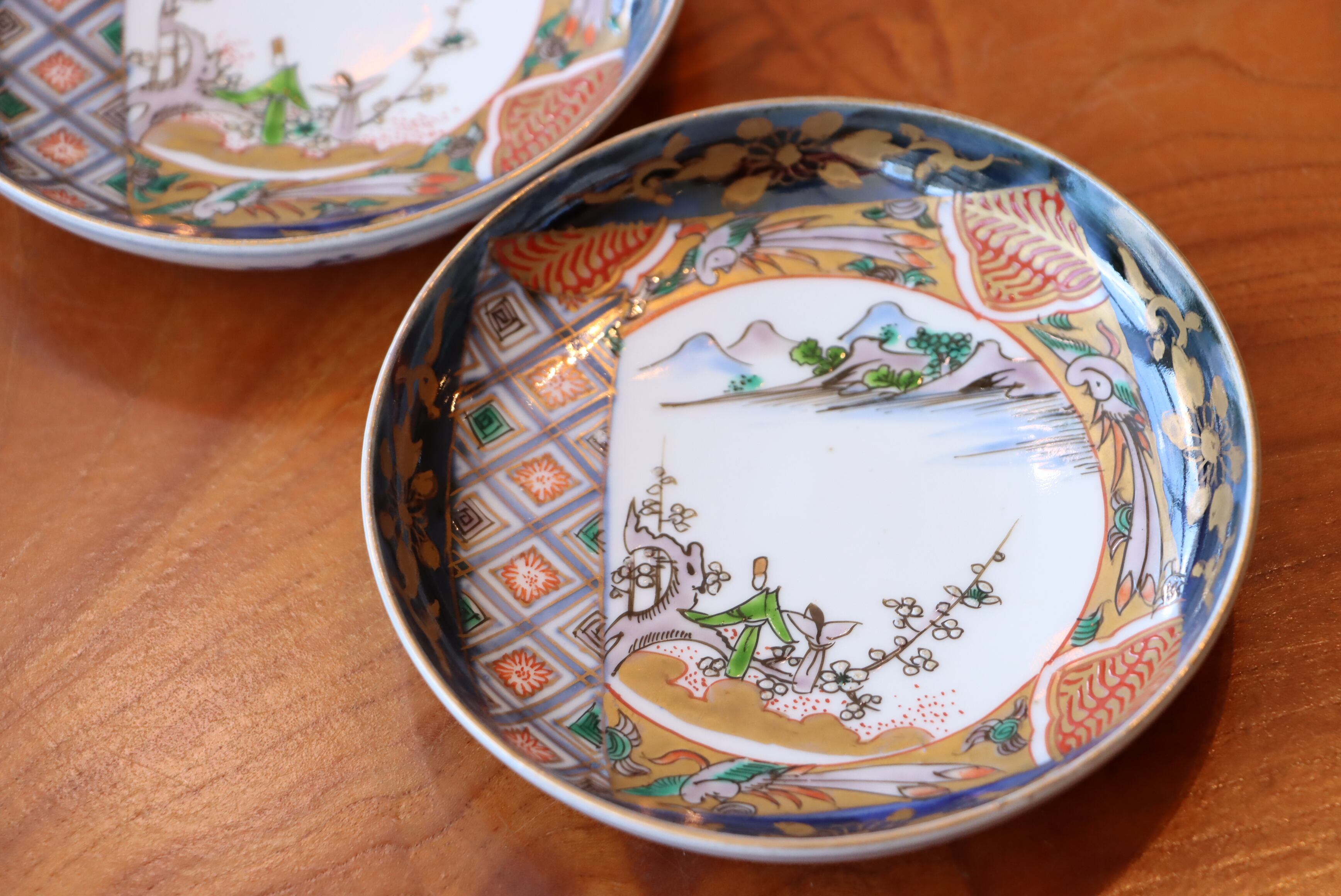 状態:焼成時に窯の中でできる鉄分、くっつき、かまきず、ピンホール、経年による釉薬の薄れがございます。また、一枚一枚手描き、手作りですので器のサイズ(ミリ)、色味、描かれている文様の大きさなど個体差があり、ひとつとして同じものはございません。そういった時代感、個性をご理解いただき、楽しんでくだされば幸いです。電子レンジや食器洗い乾燥機のご使用はお控えください。