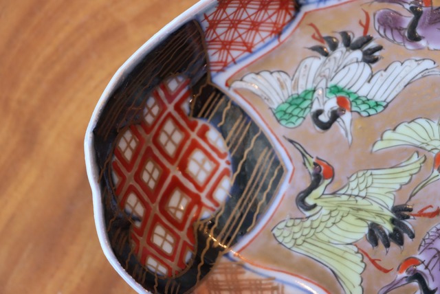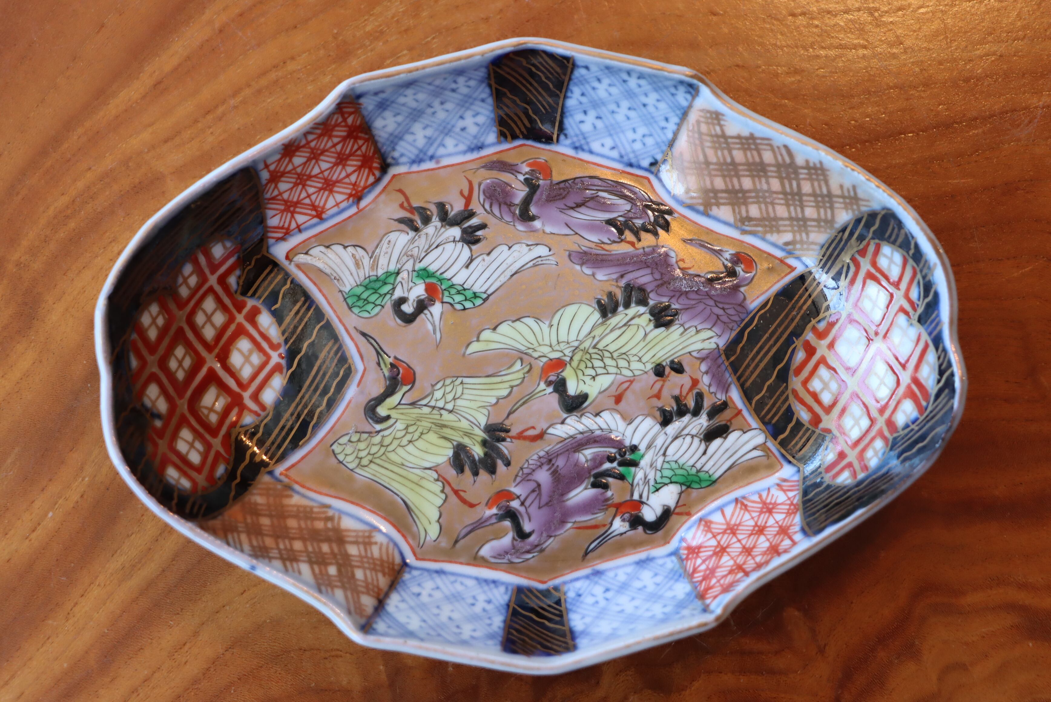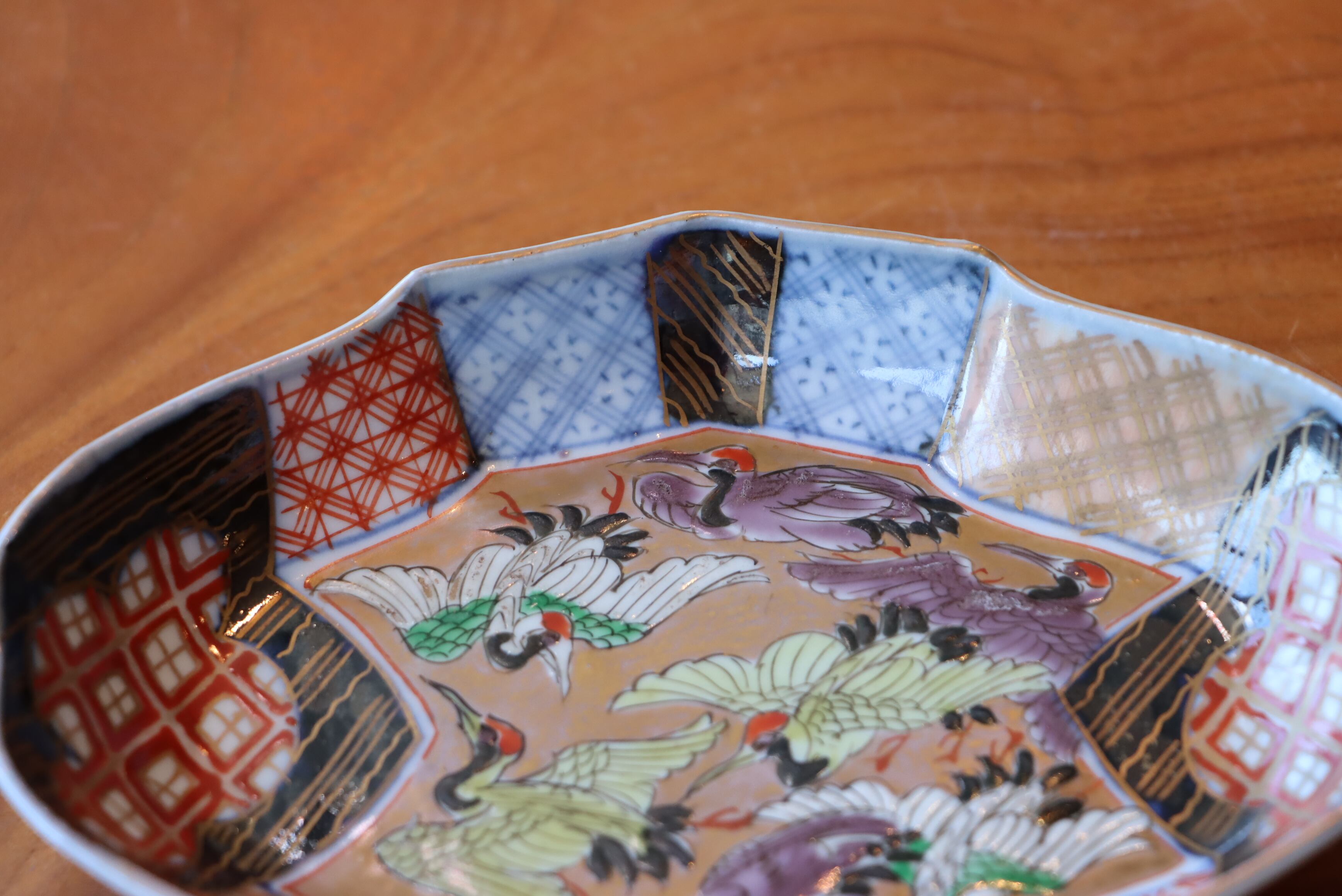 余白がなく器いっぱいに絵柄が施されたとても豪華な変形皿✨