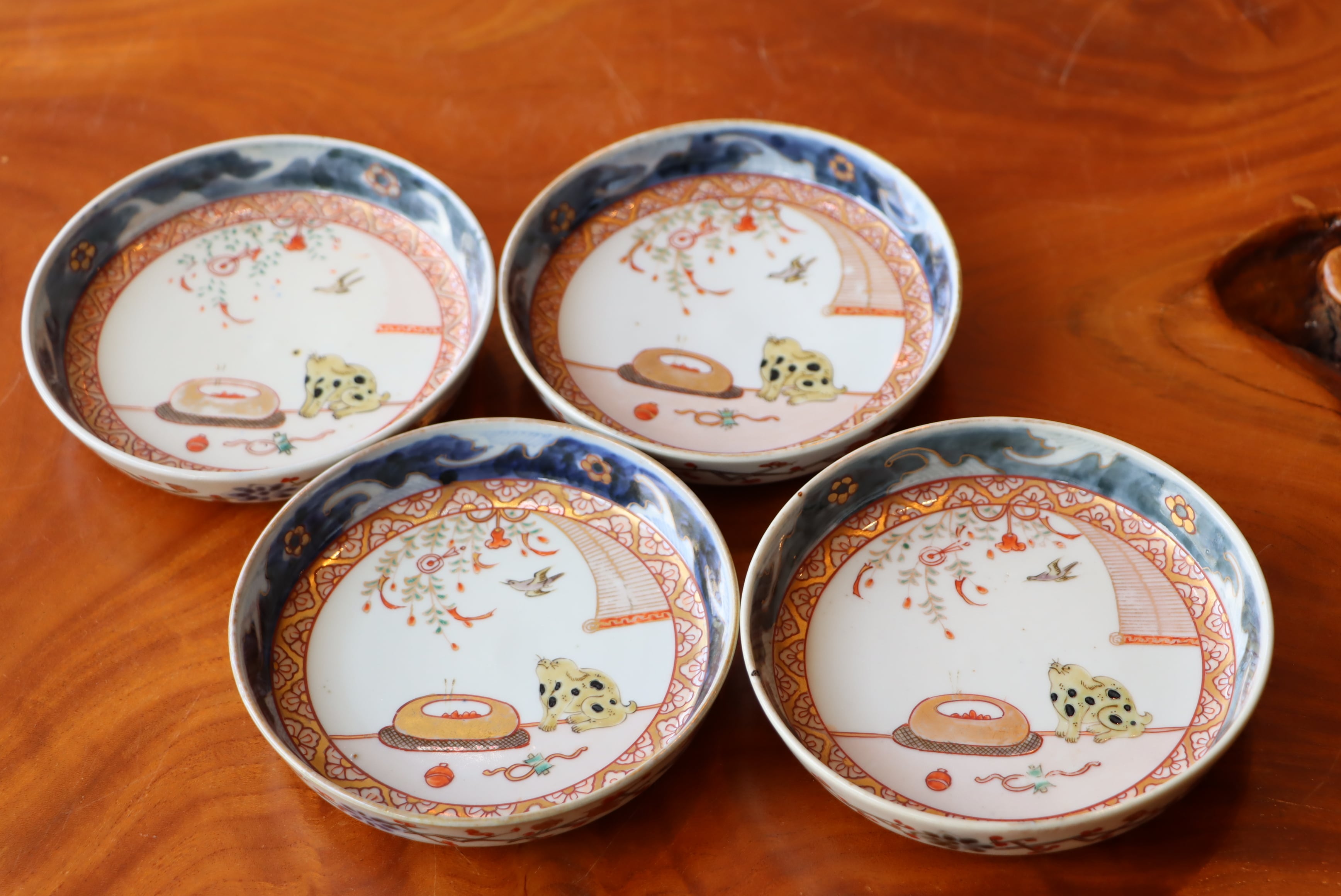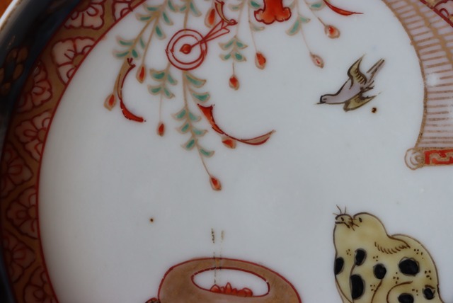 状態:焼成時に窯の中でできる鉄分、くっつき、かまきず、ピンホール、経年による釉薬の薄れがございます。また、一枚一枚手描き、手作りですので器のサイズ(ミリ)、色味、描かれている文様の大きさなど個体差があり、ひとつとして同じものはございません。そういった時代感、個性をご理解いただき、楽しんでくだされば幸いです。電子レンジや食器洗い乾燥機のご使用はお控えください。