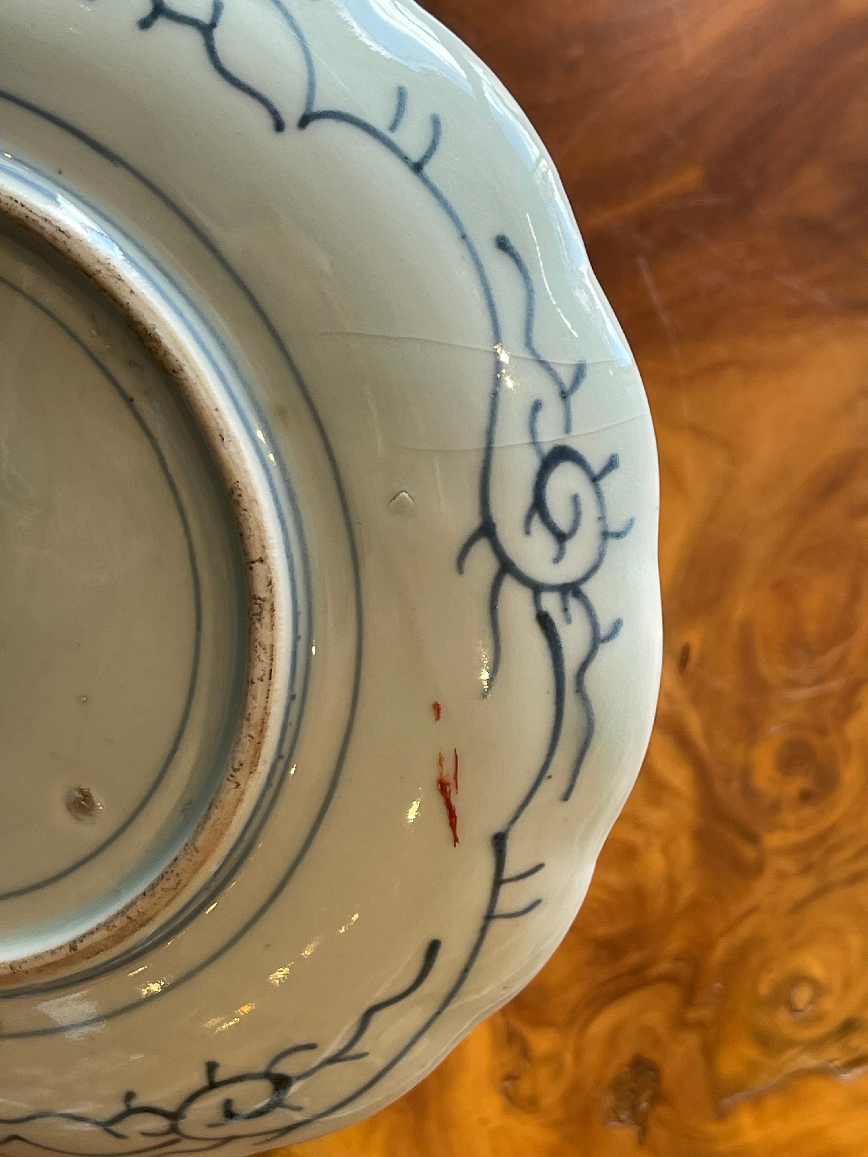状態:貫入あり、焼成時に窯の中でできる鉄分、くっつき、かまきず、ピンホール、経年による釉薬の薄れがございます。また、一枚一枚手描き、手作りですので器のサイズ(ミリ)、色味、描かれている文様の大きさなど個体差があり、ひとつとして同じものはございません。そういった時代感、個性をご理解いただき、楽しんでくだされば幸いです。電子レンジや食器洗い乾燥機のご使用はお控えください。