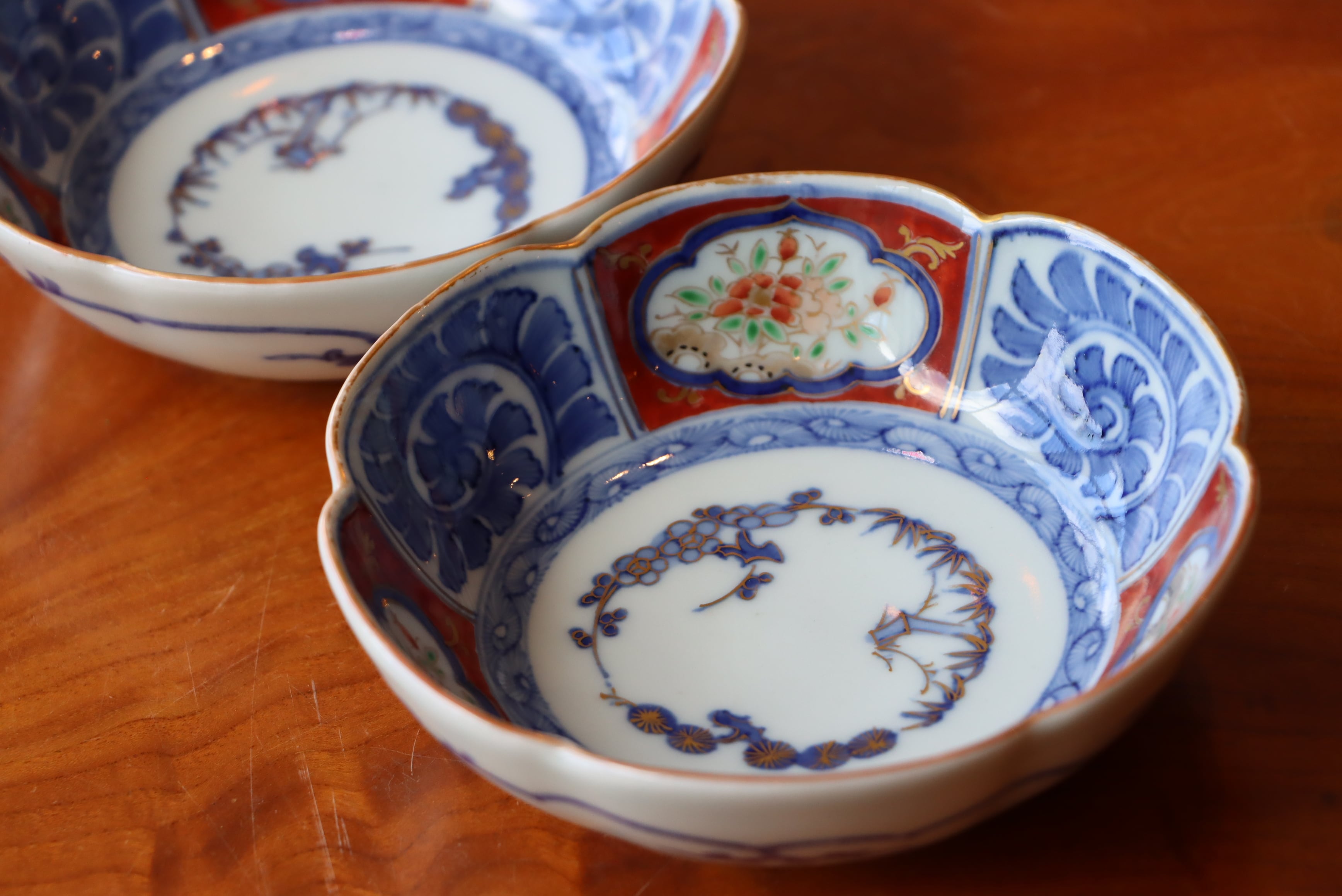 状態:焼成時に窯の中でできる鉄分、くっつき、かまきず、ピンホール、経年による釉薬の薄れがございます。また、一枚一枚手描き、手作りですので器のサイズ(ミリ)、色味、描かれている文様の大きさなど個体差があり、ひとつとして同じものはございません。そういった時代感、個性をご理解いただき、楽しんでくだされば幸いです。電子レンジや食器洗い乾燥機のご使用はお控えください。