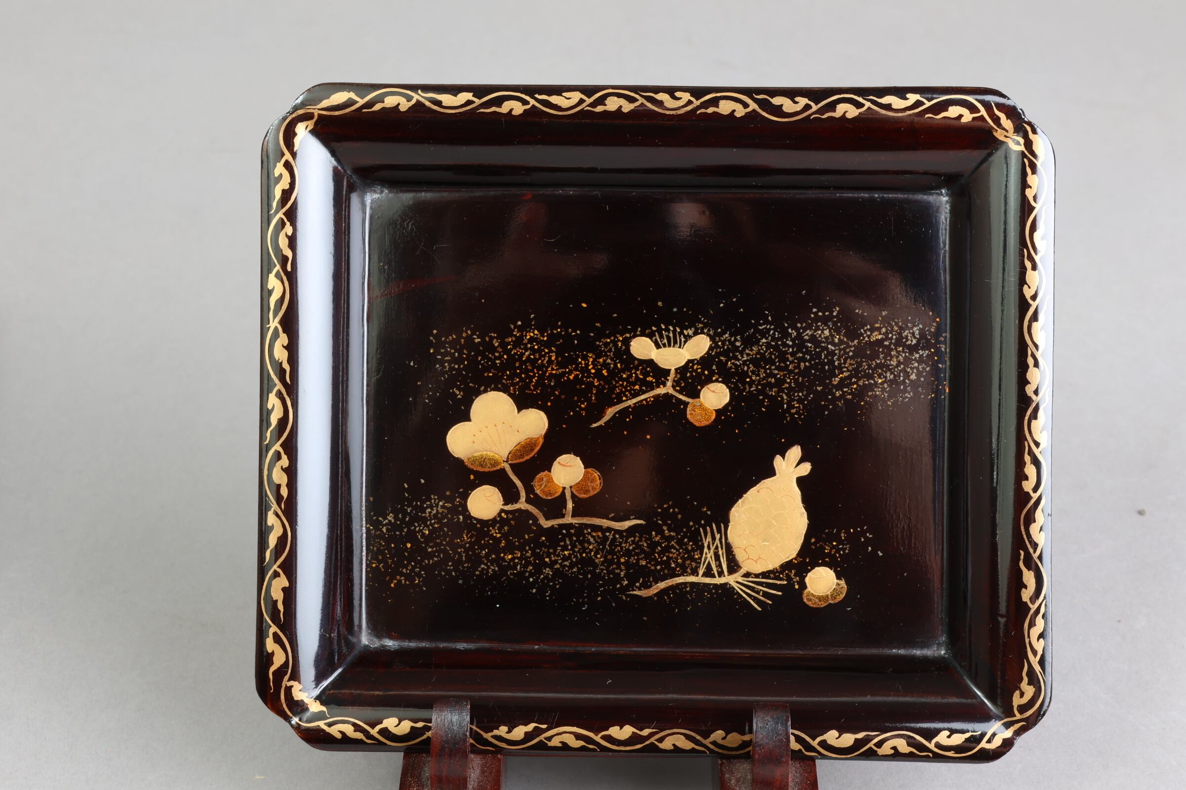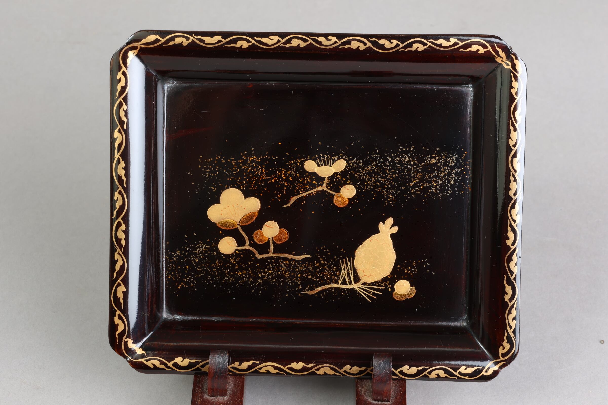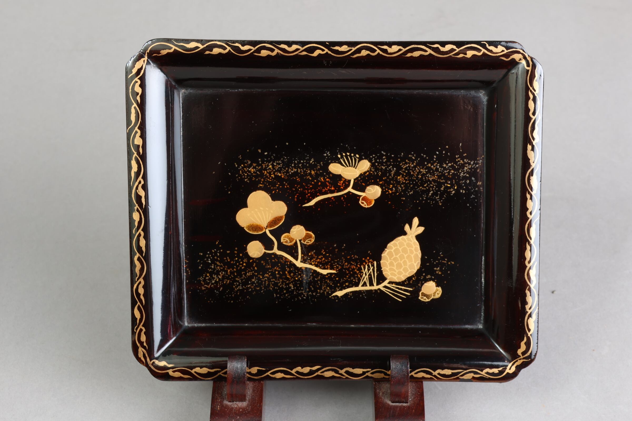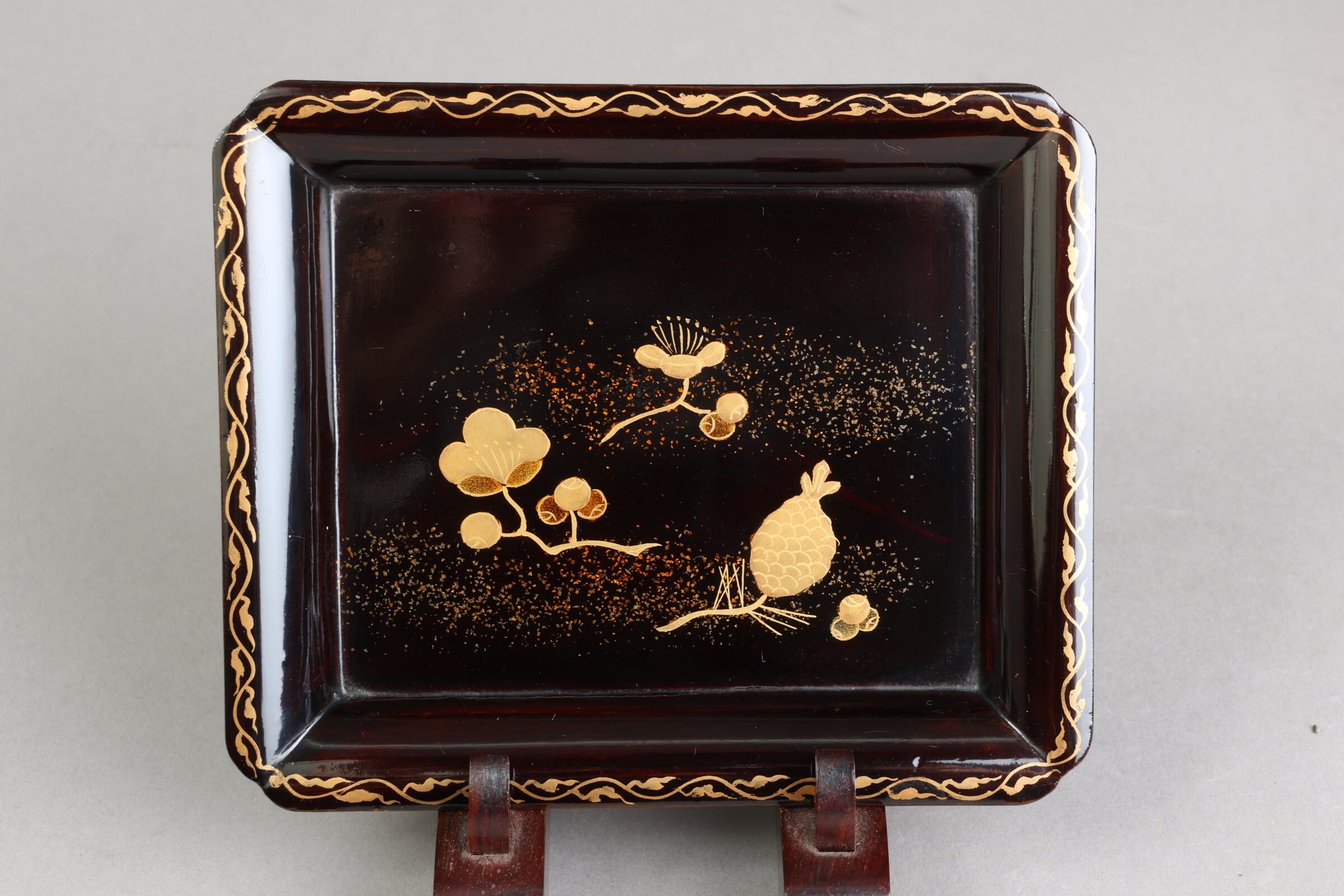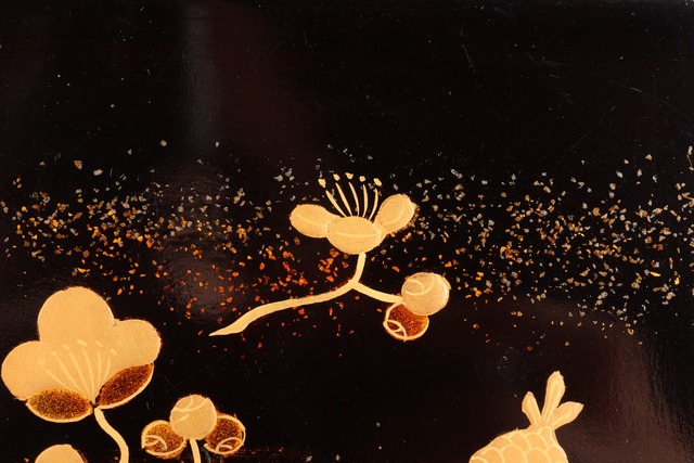 松ぼっくりと梅蒔絵の背景には