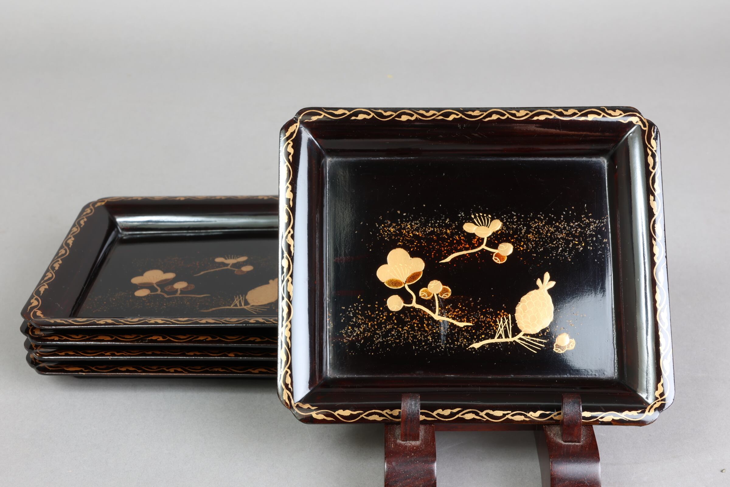 角菓子皿 松梅蒔絵 五枚組 A