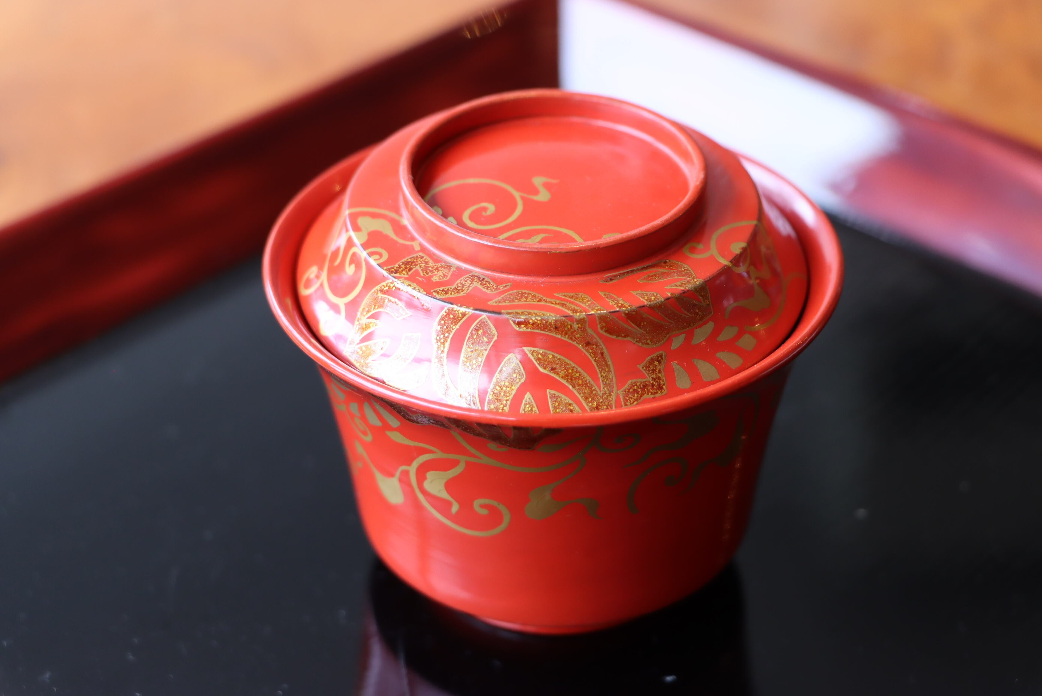 椀 朱塗 唐草鳳凰蒔絵