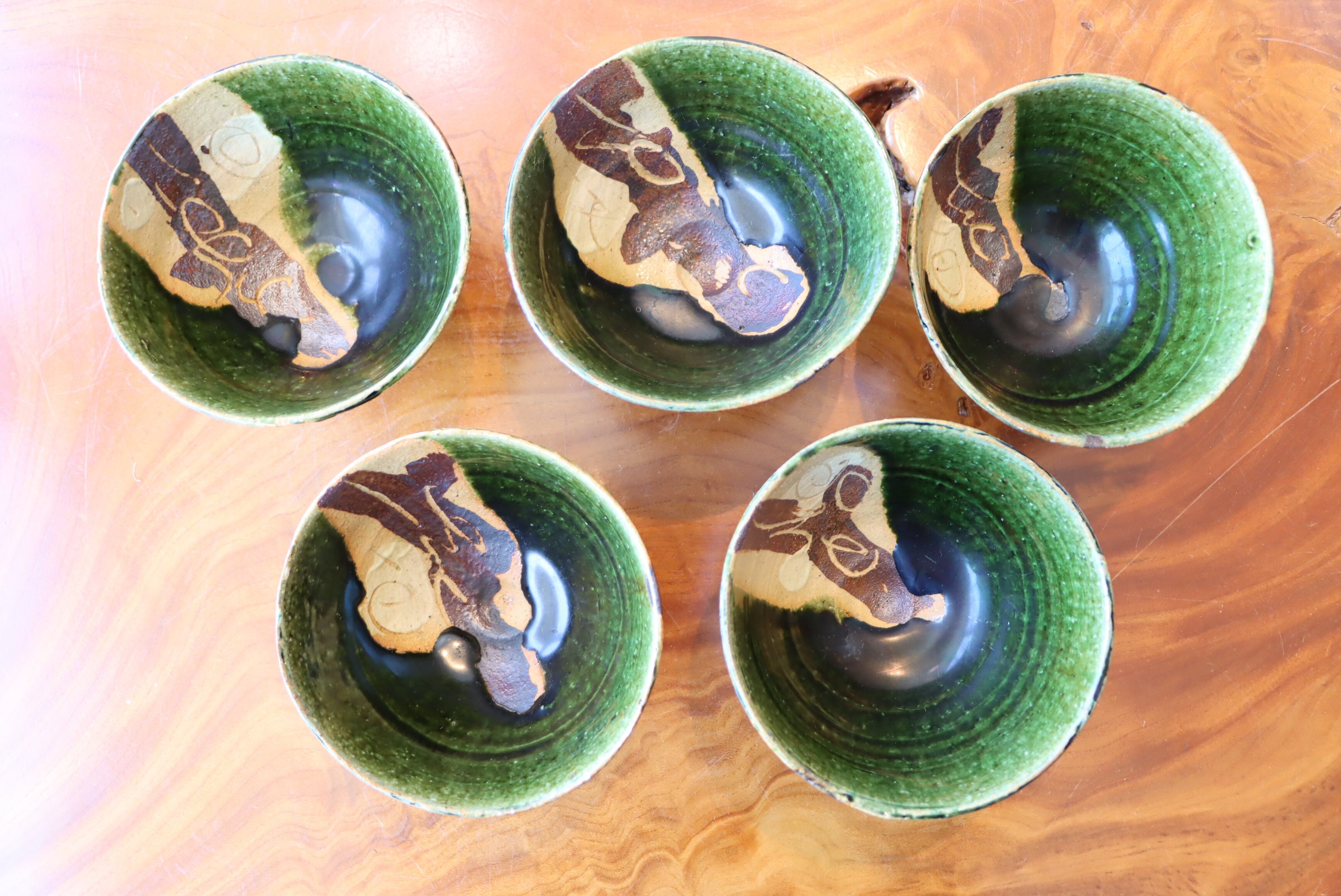 状態:焼成時に窯の中でできる鉄分、くっつき、かまきず、ピンホール、経年による釉薬の薄れがございます。また、一枚一枚手描き、手作りですので器のサイズ(ミリ)、色味、描かれている文様の大きさなど個体差があり、ひとつとして同じものはございません。そういった時代感、個性をご理解いただき、楽しんでくだされば幸いです。電子レンジや食器洗い乾燥機のご使用はお控えください。