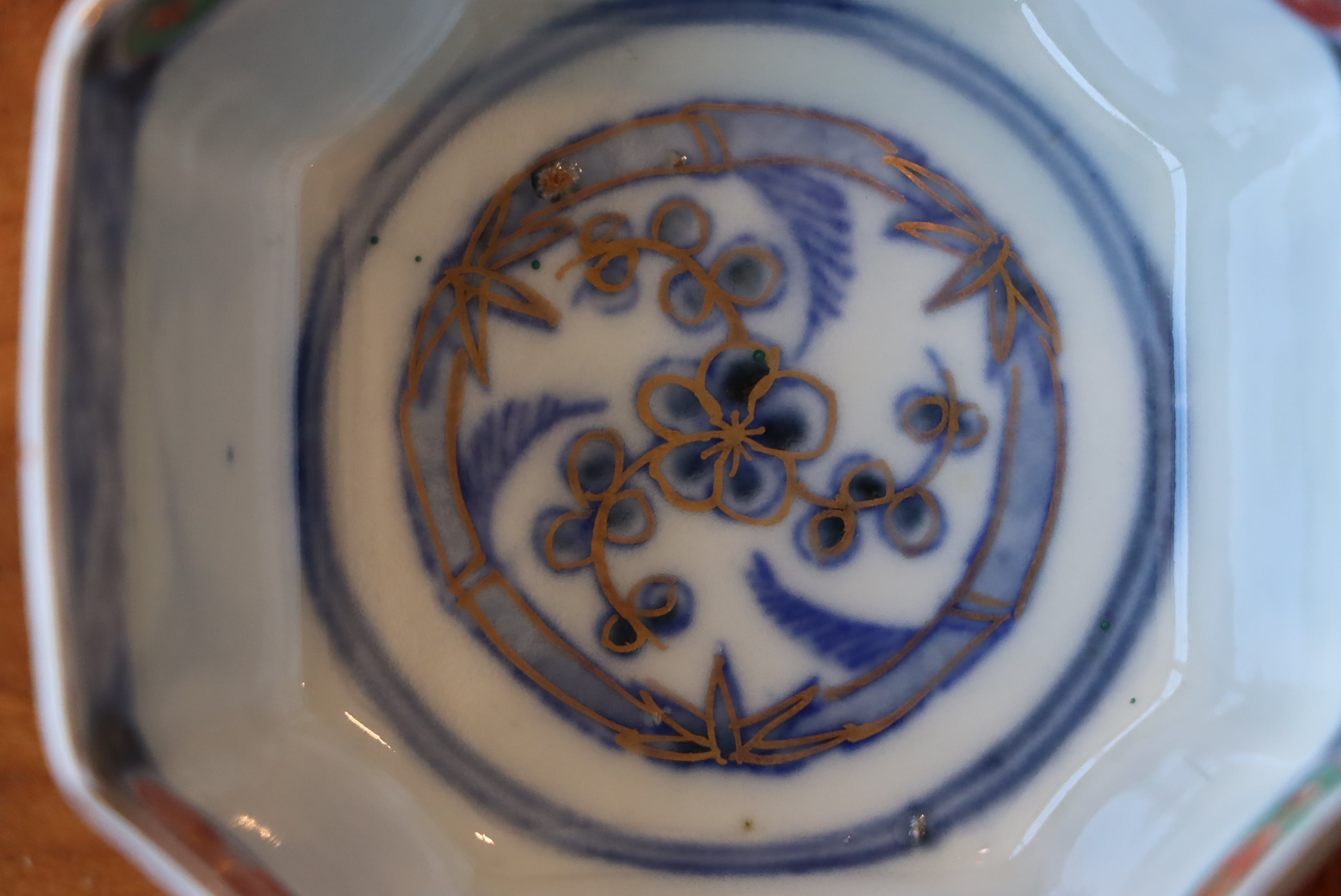 焼成時に窯の中でできる鉄分、くっつき、かまきず、ピンホール、経年による釉薬の薄れがございます。また、一枚一枚手描き、手作りですので器のサイズ(ミリ)、色味、描かれている文様の大きさなど個体差があり、ひとつとして同じものはございません。そういった時代感、個性をご理解いただき、楽しんでくだされば幸いです。電子レンジや食器洗い乾燥機のご使用はお控えください。