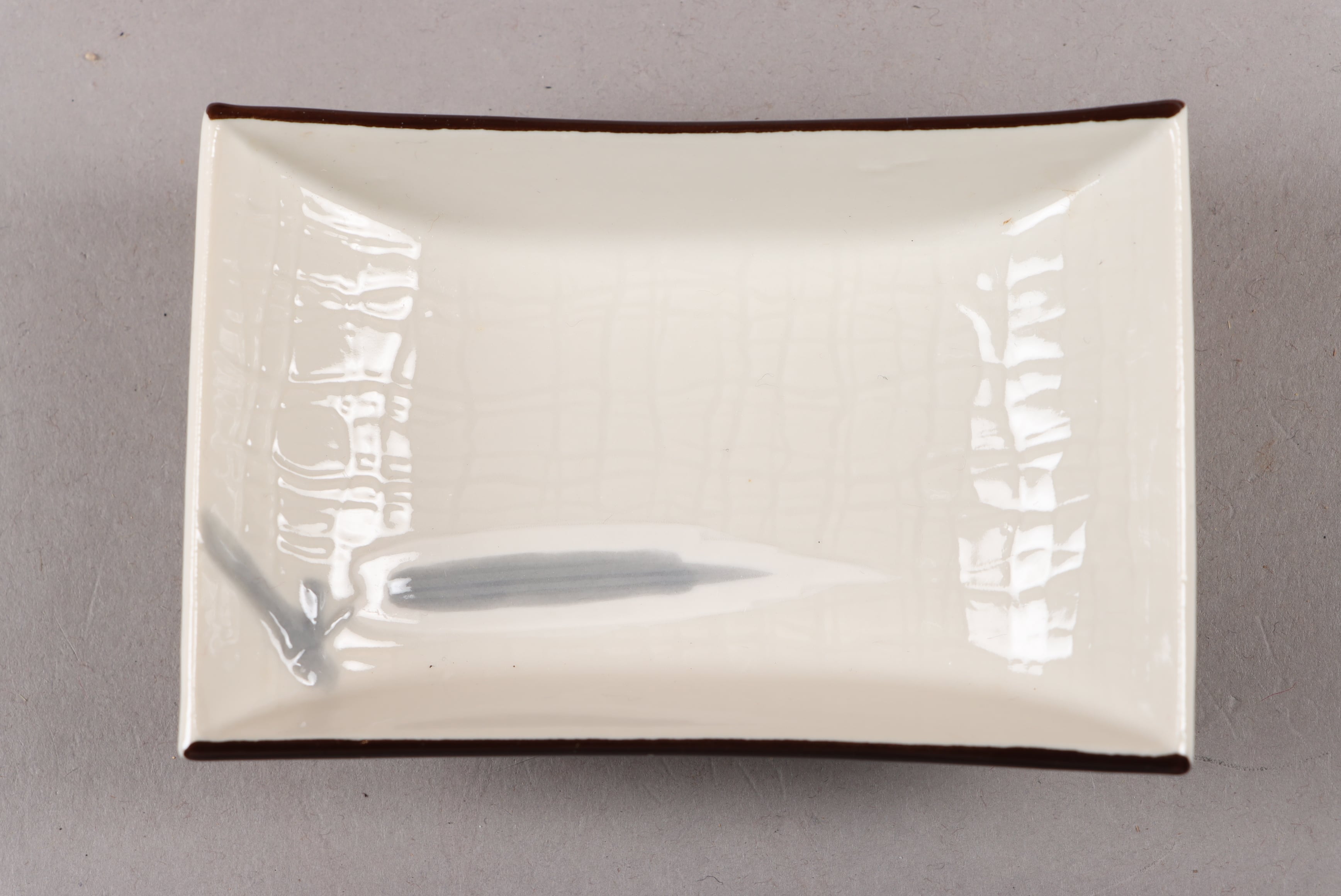 白高麗 鍋島具山作 笹彫 鮎皿 猪口付 共箱