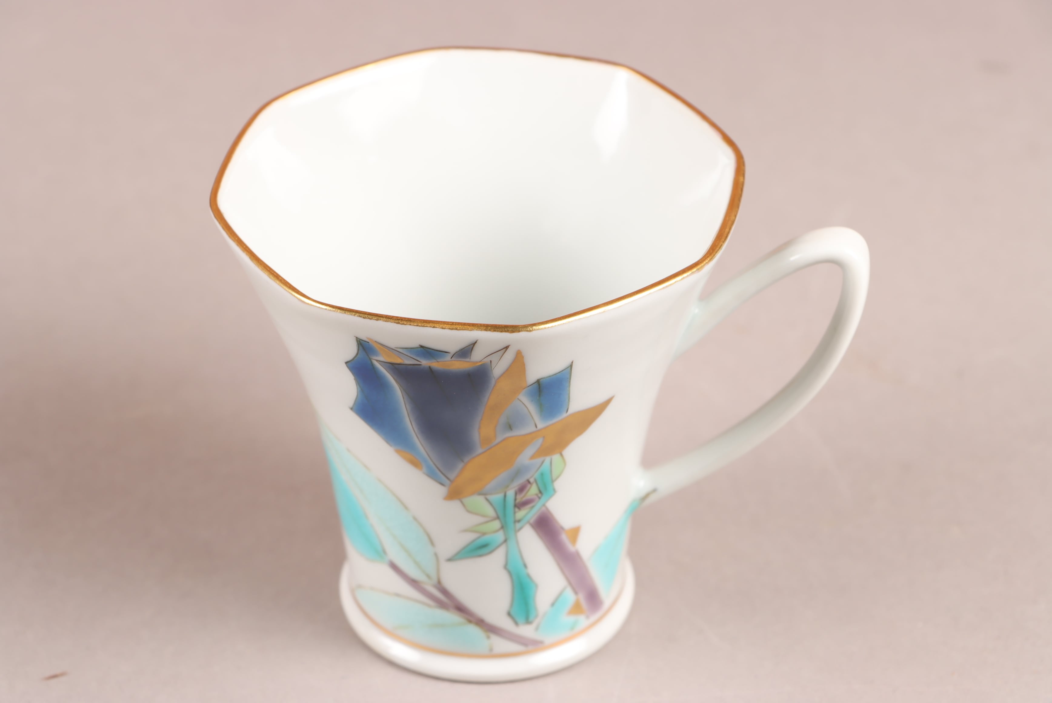 九谷焼 山岸大成作 色絵 薔薇文 珈琲椀 共箱