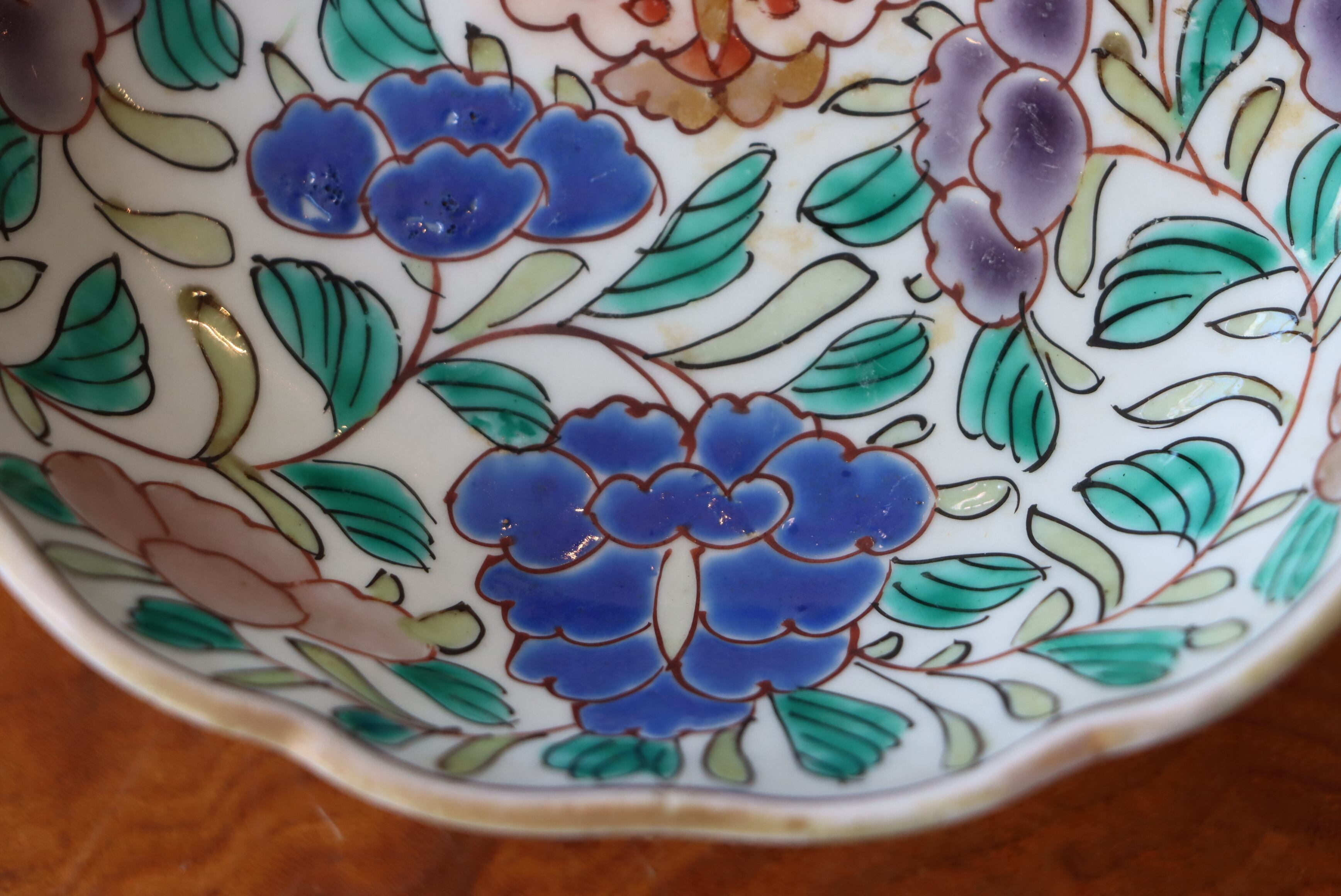 状態:焼成時に窯の中でできる鉄分、くっつき、かまきず、ピンホール、経年による釉薬の薄れがございます。また、一枚一枚手描き、手作りですので器のサイズ(ミリ)、色味、描かれている文様の大きさなど個体差があり、ひとつとして同じものはございません。そういった時代感、個性をご理解いただき、楽しんでくだされば幸いです。電子レンジや食器洗い乾燥機のご使用はお控えください。