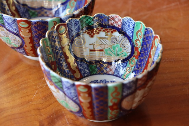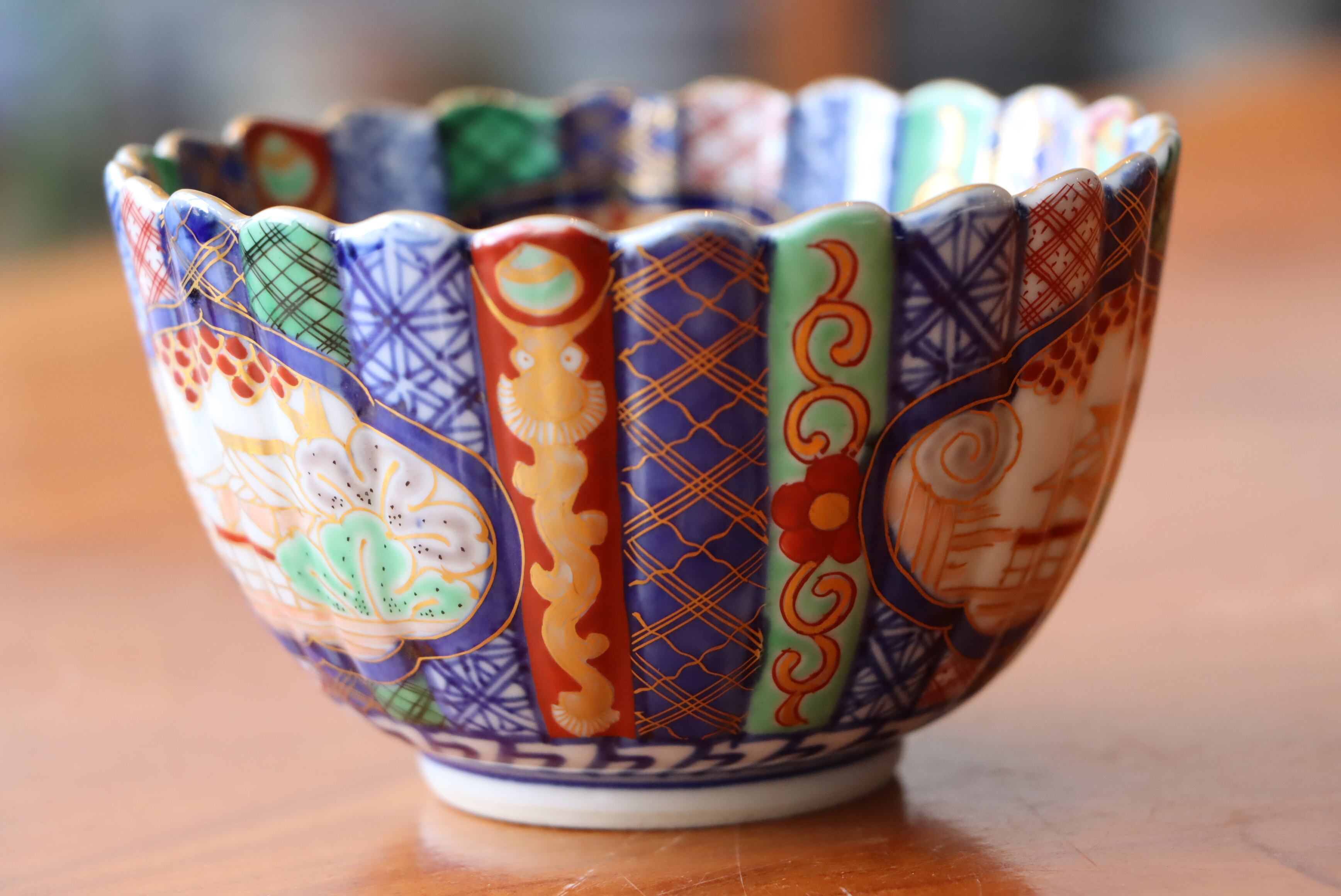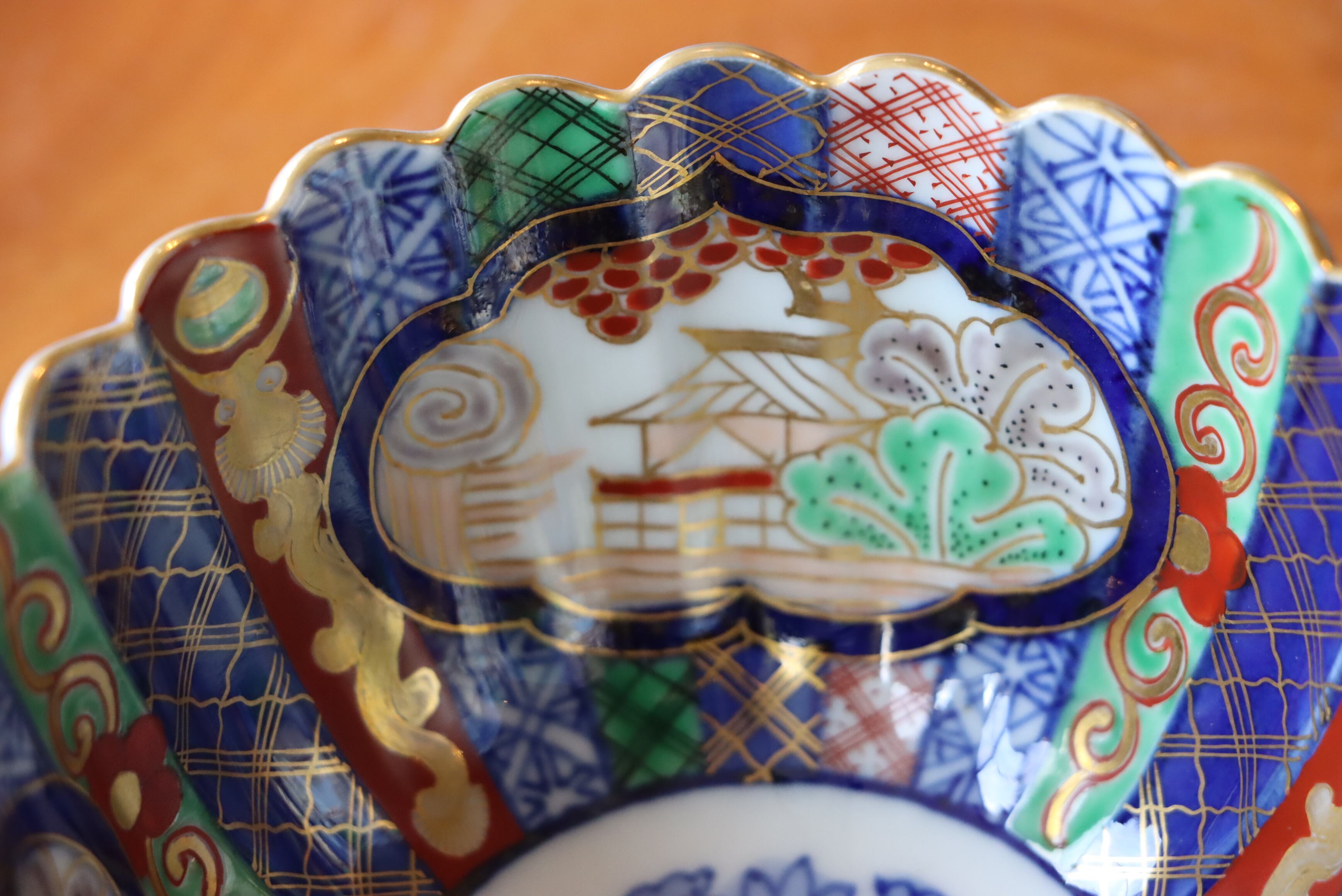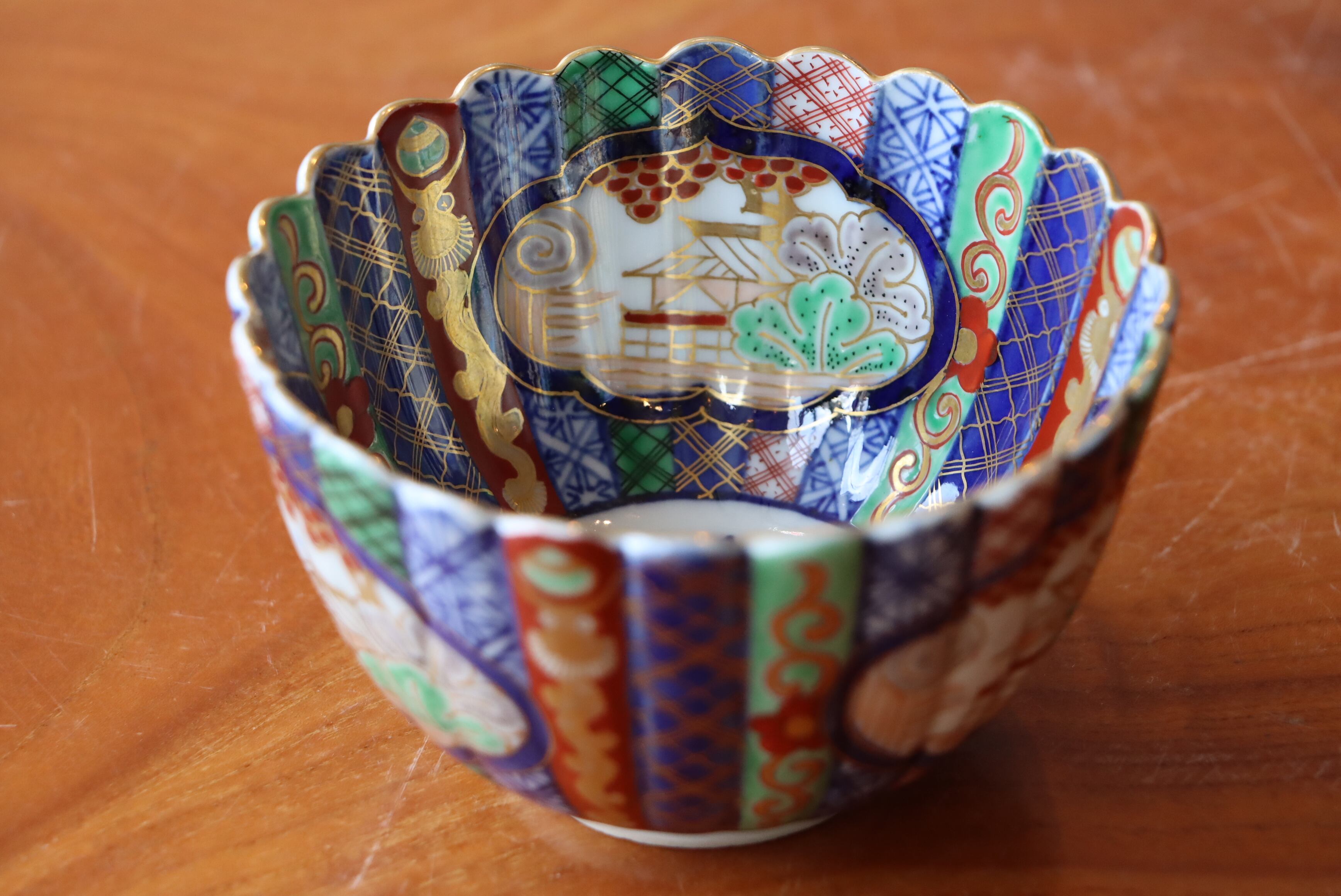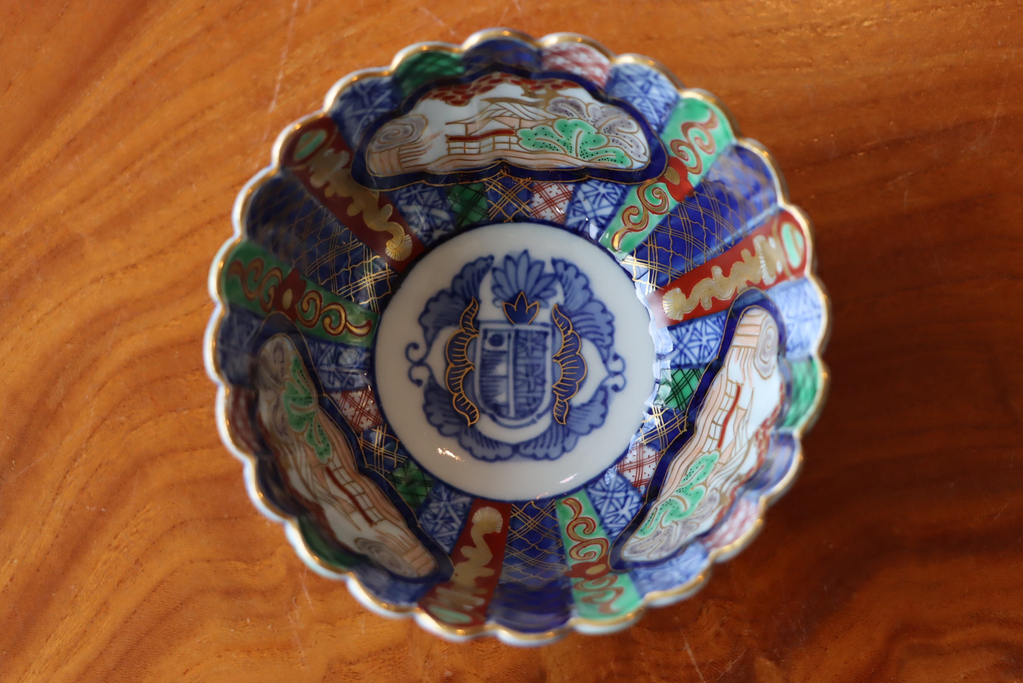 大聖寺伊万里 色絵 菊割 楼閣山水文 向付/Daisyo-ji Imari cup