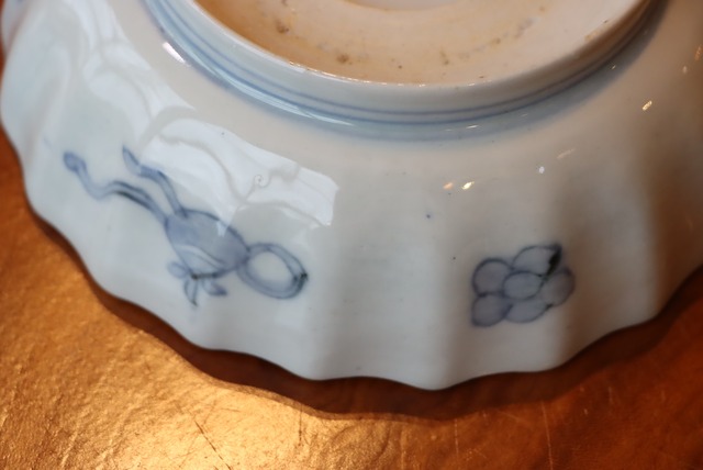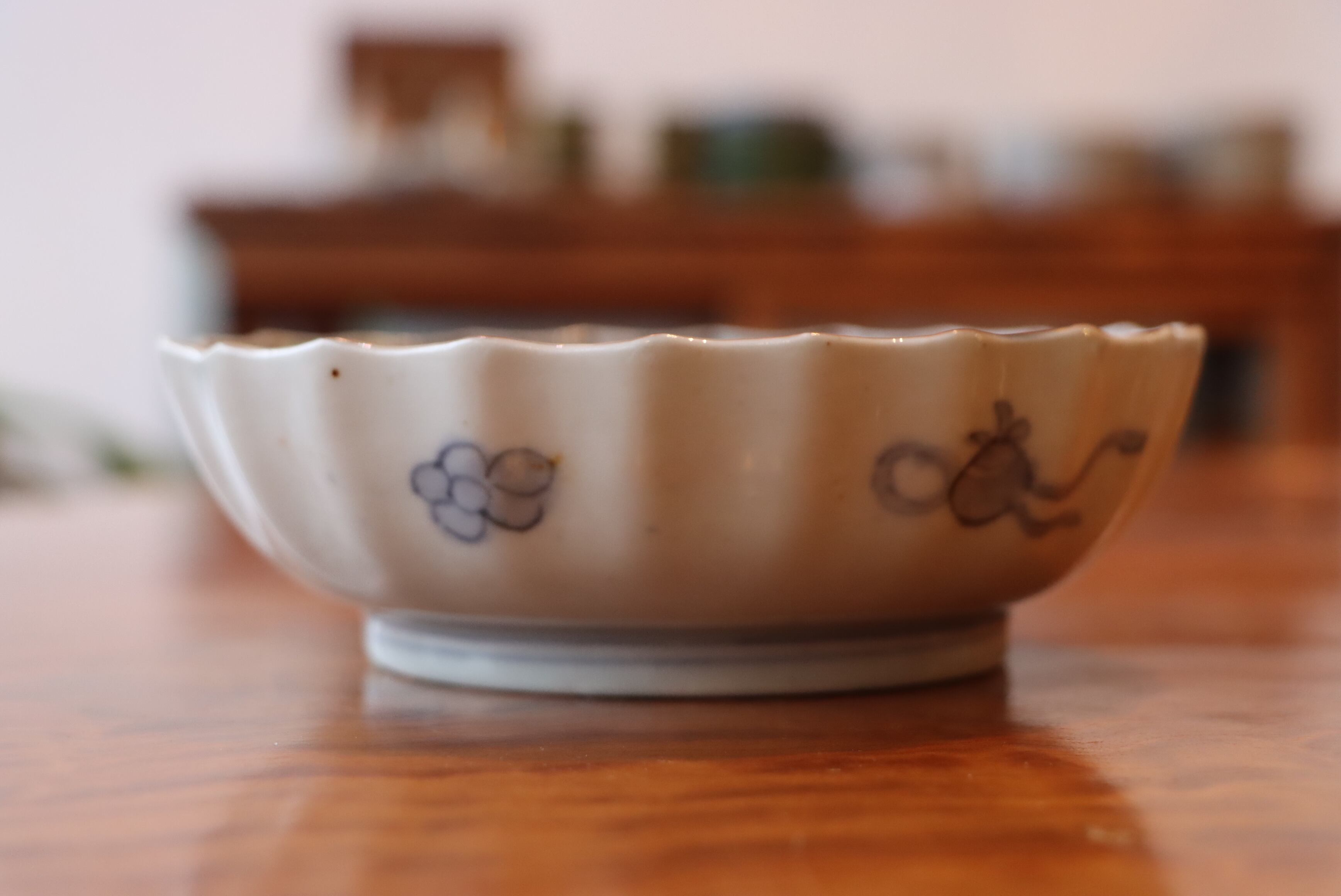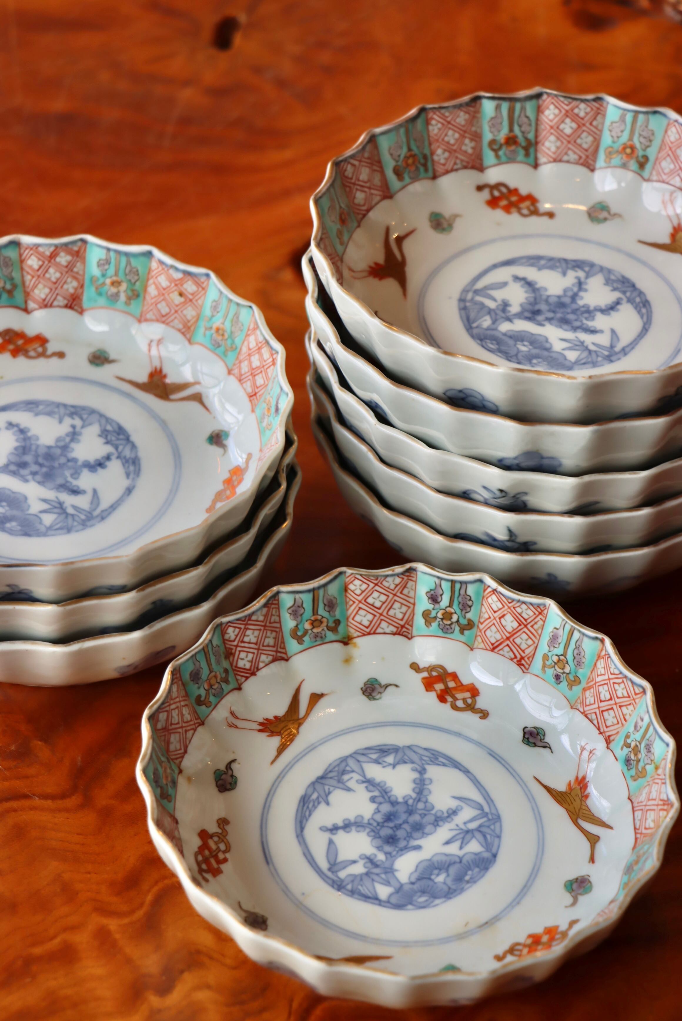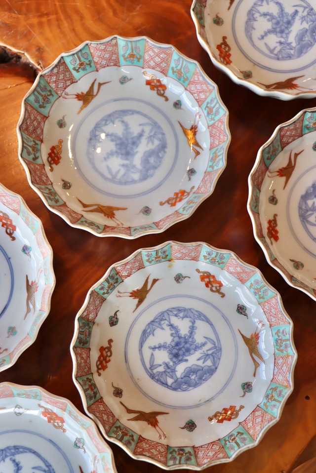 伊万里焼 色絵 松竹梅鶴文 膾皿/Imari lobed bowl