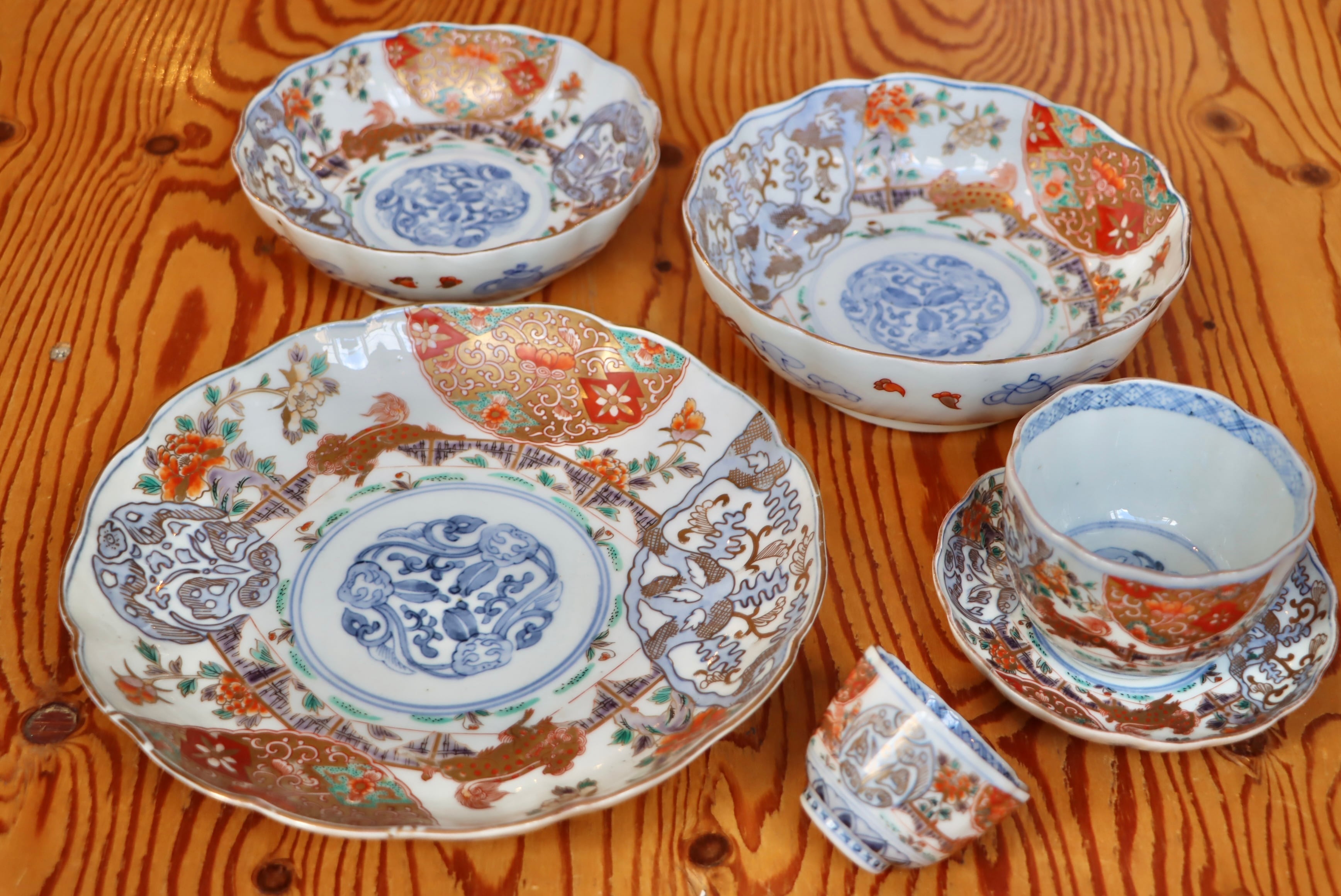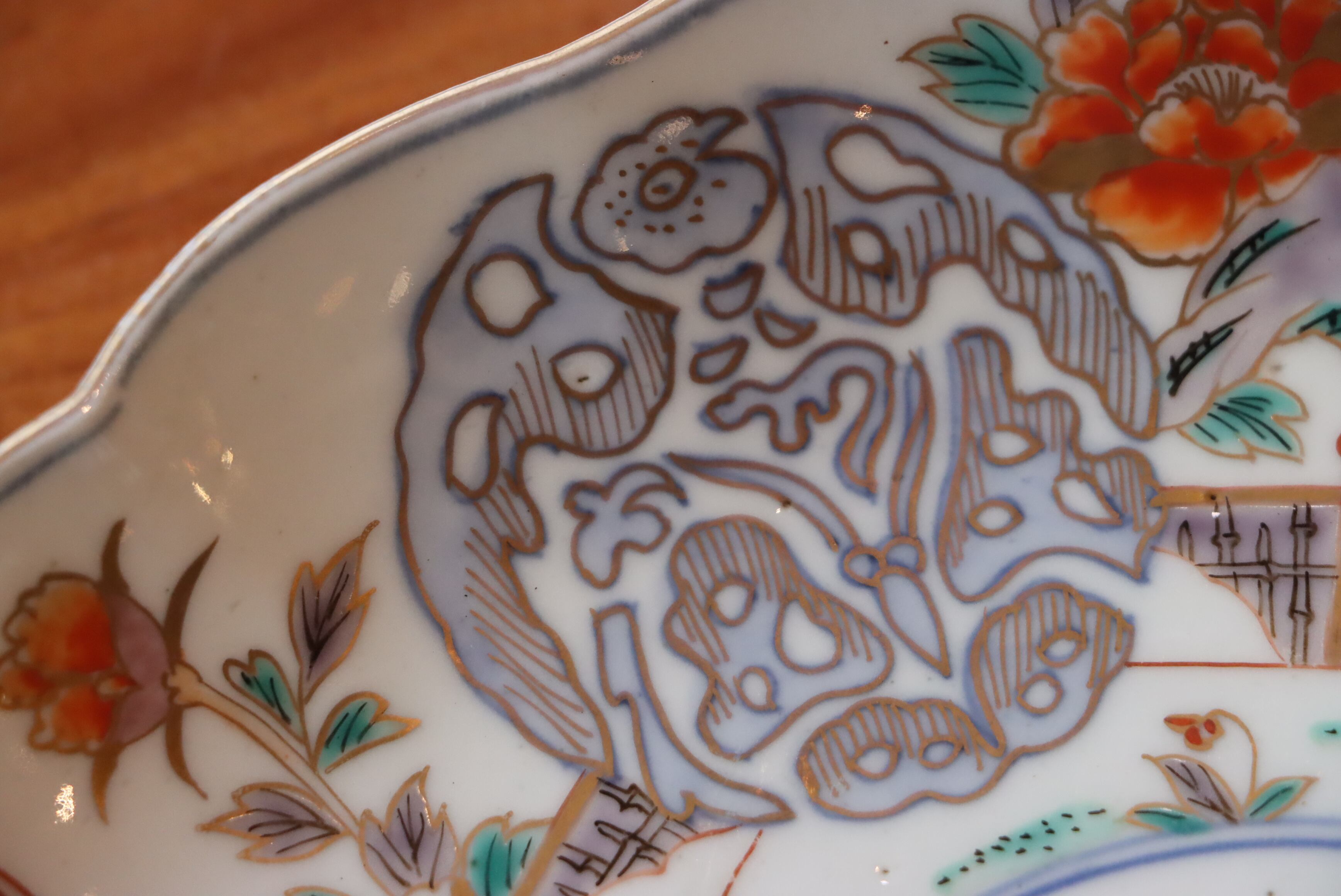 【Imari medium size plate with lion and peony design in overglaze enamels.】