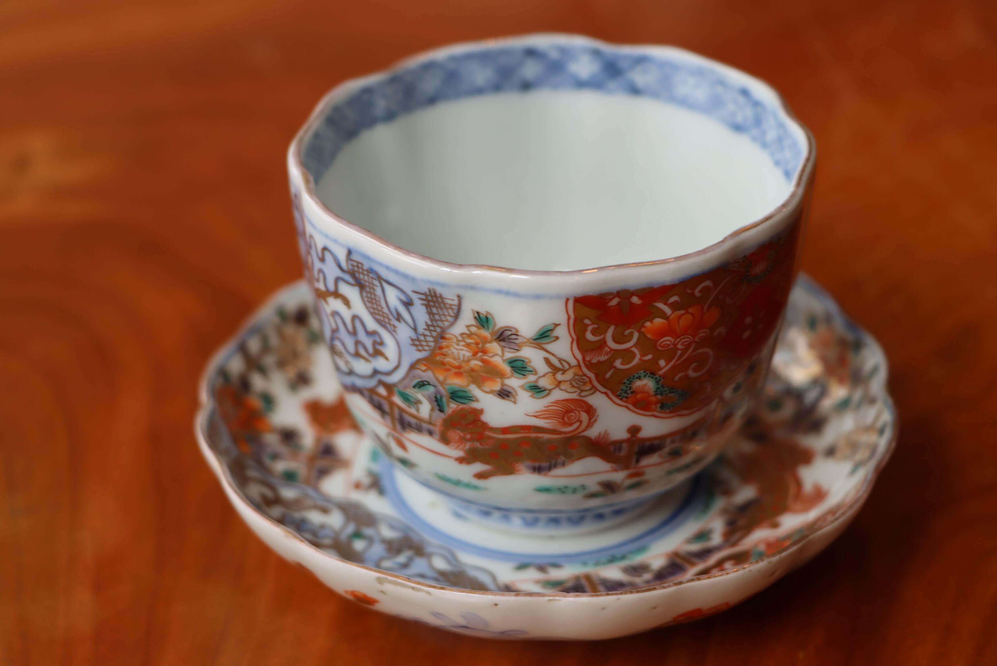 【Imari small plate with lion and peony design in overglaze enamels.】