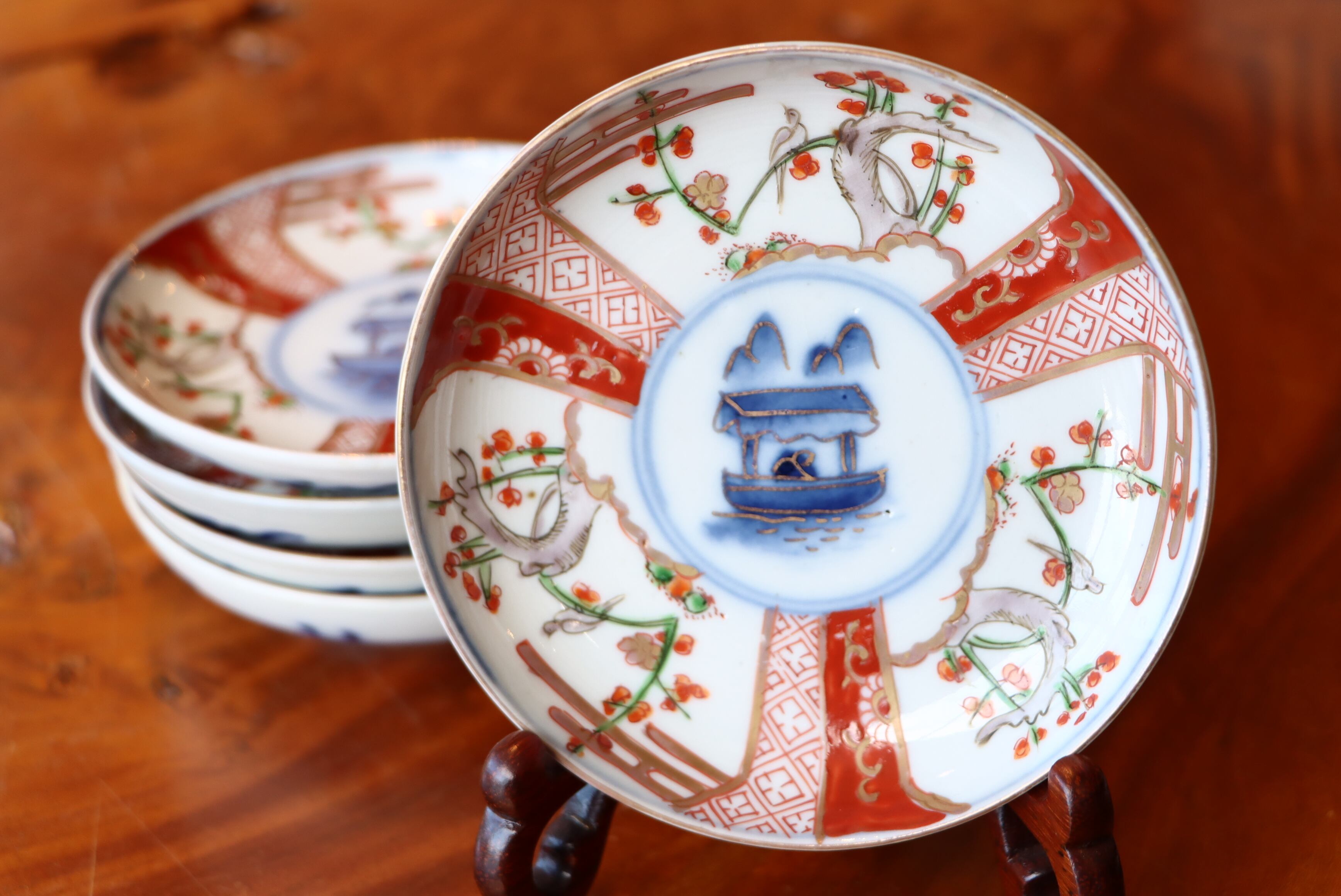 色絵 梅鳥文 小皿 五枚組/Small plate , set of 5