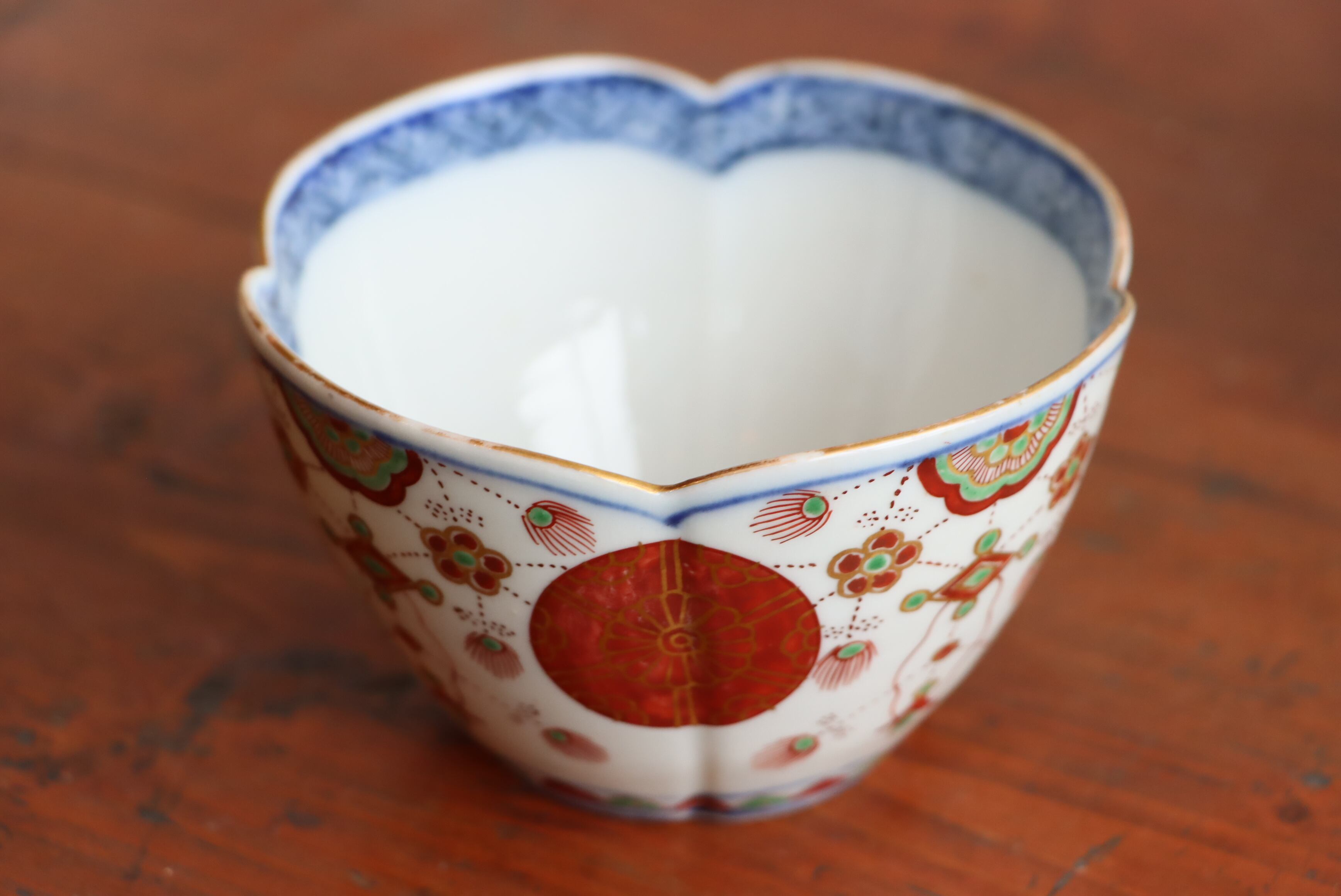 【Daisyo-ji imari "Muko-duke" cup with "Akadama-yoraku" design in overglaze enamels.】