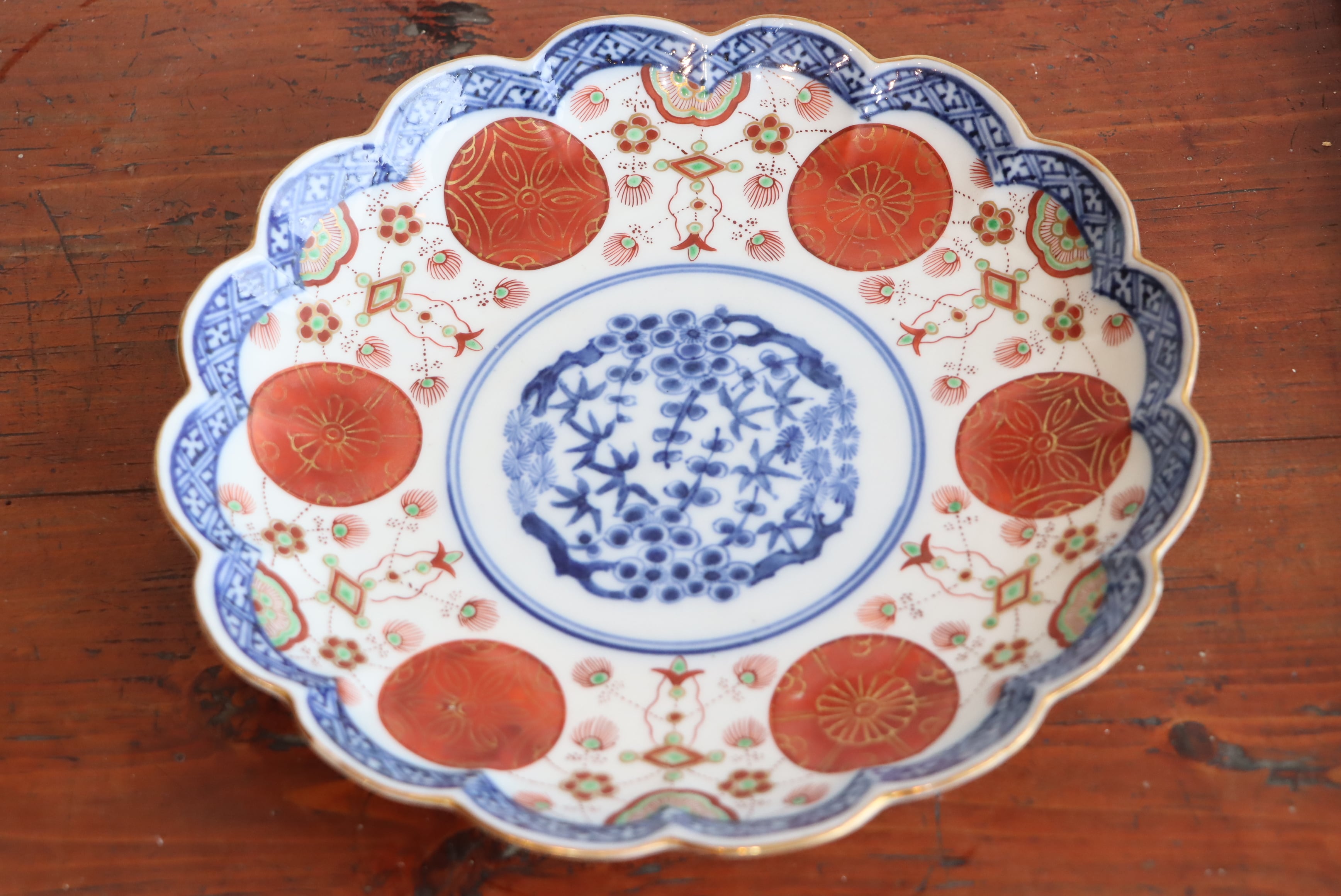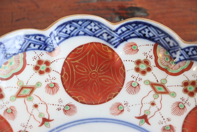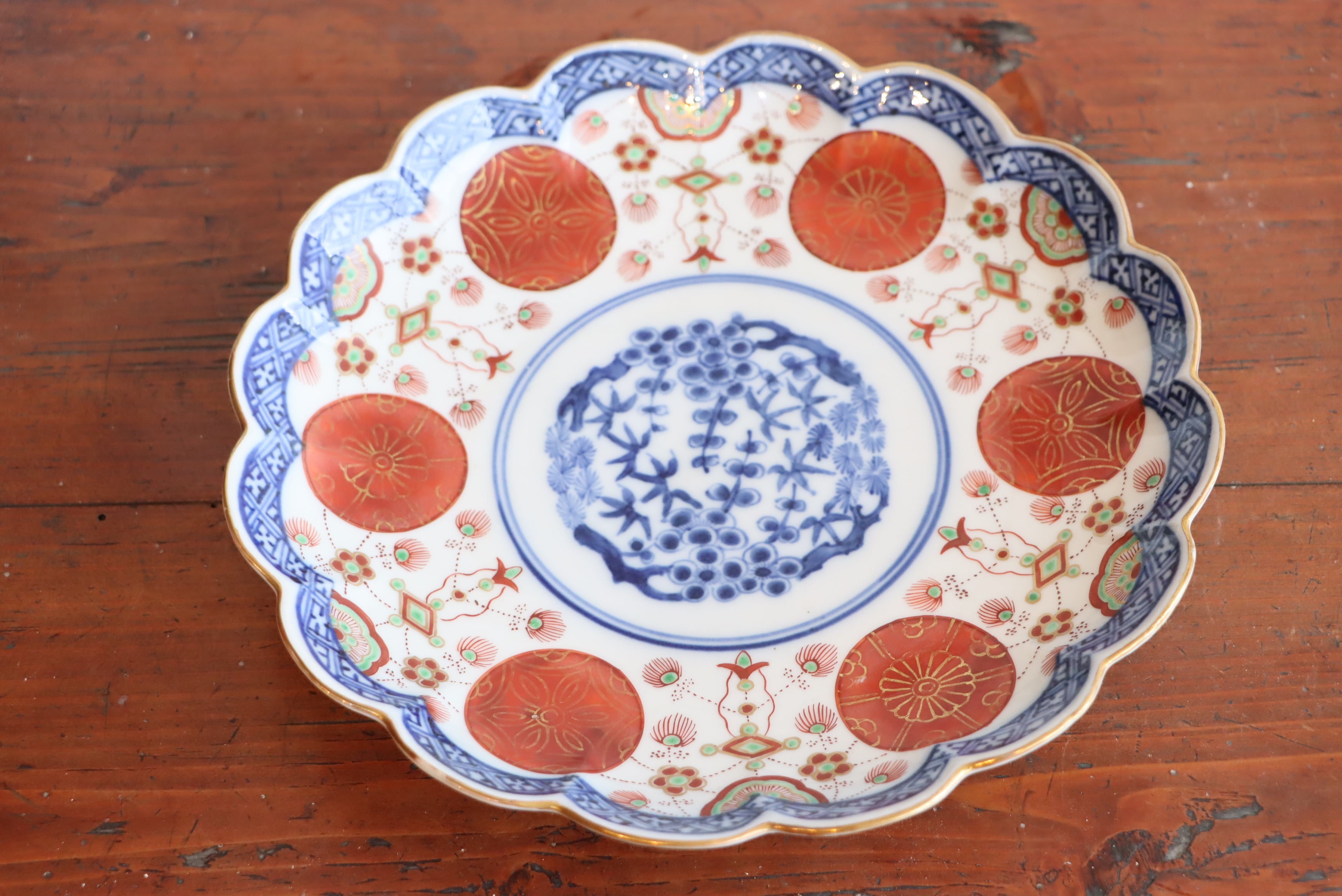 大聖寺伊万里 色絵 赤玉瓔珞文 中皿 七寸 通りもの/Daisyo-ji Imari medium size plate
