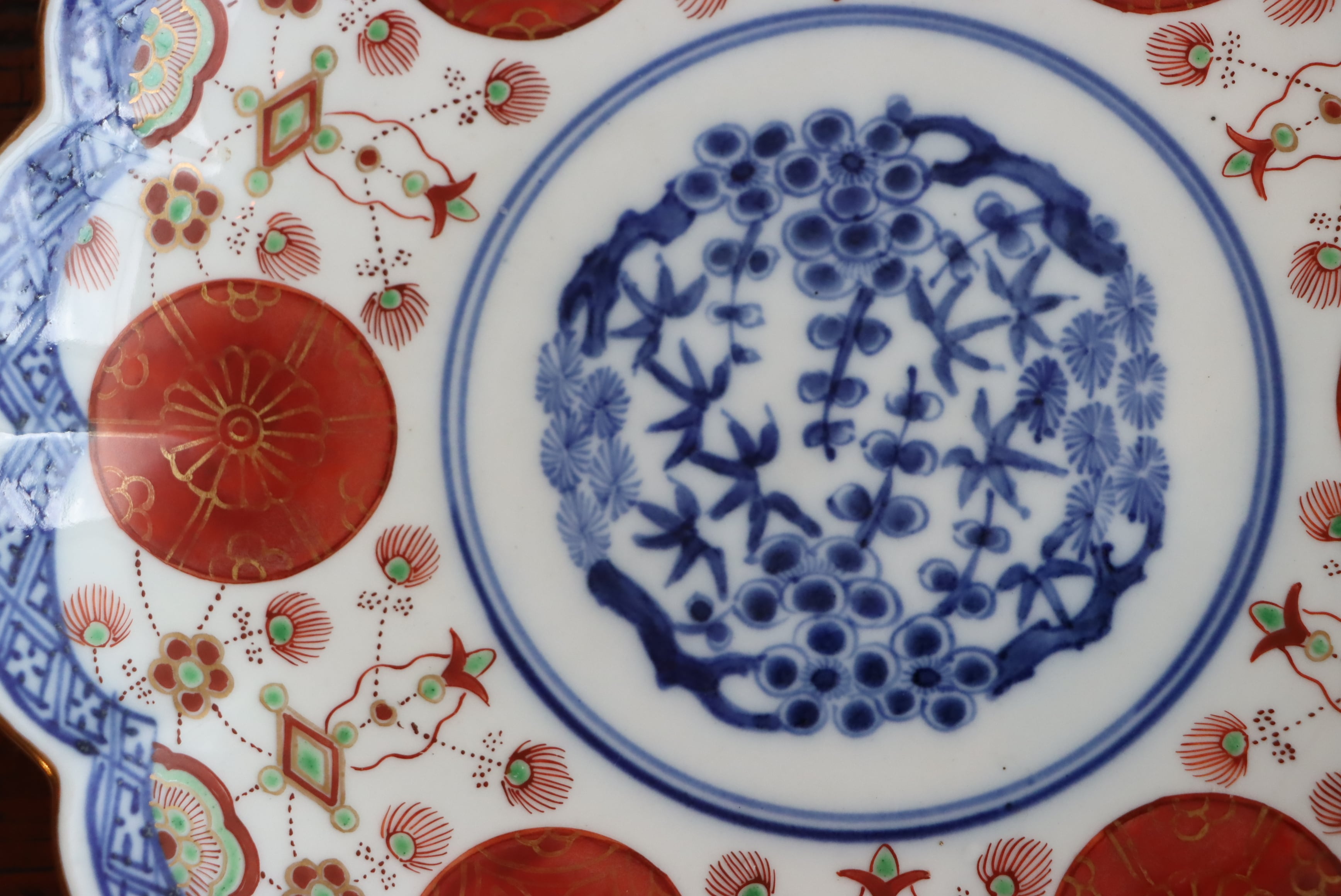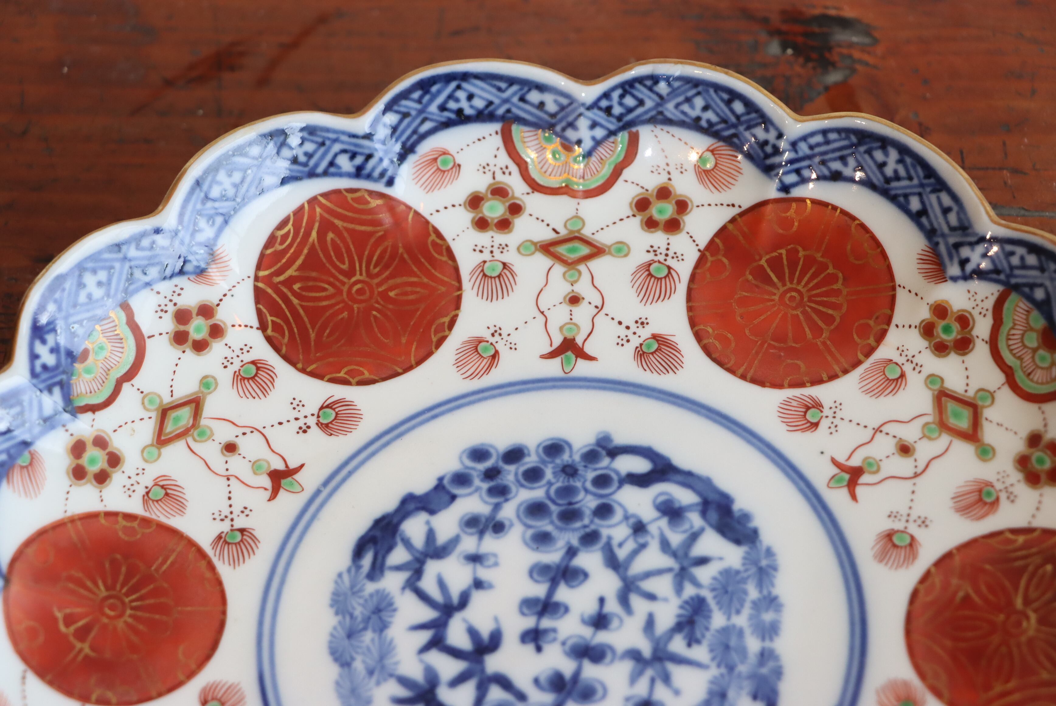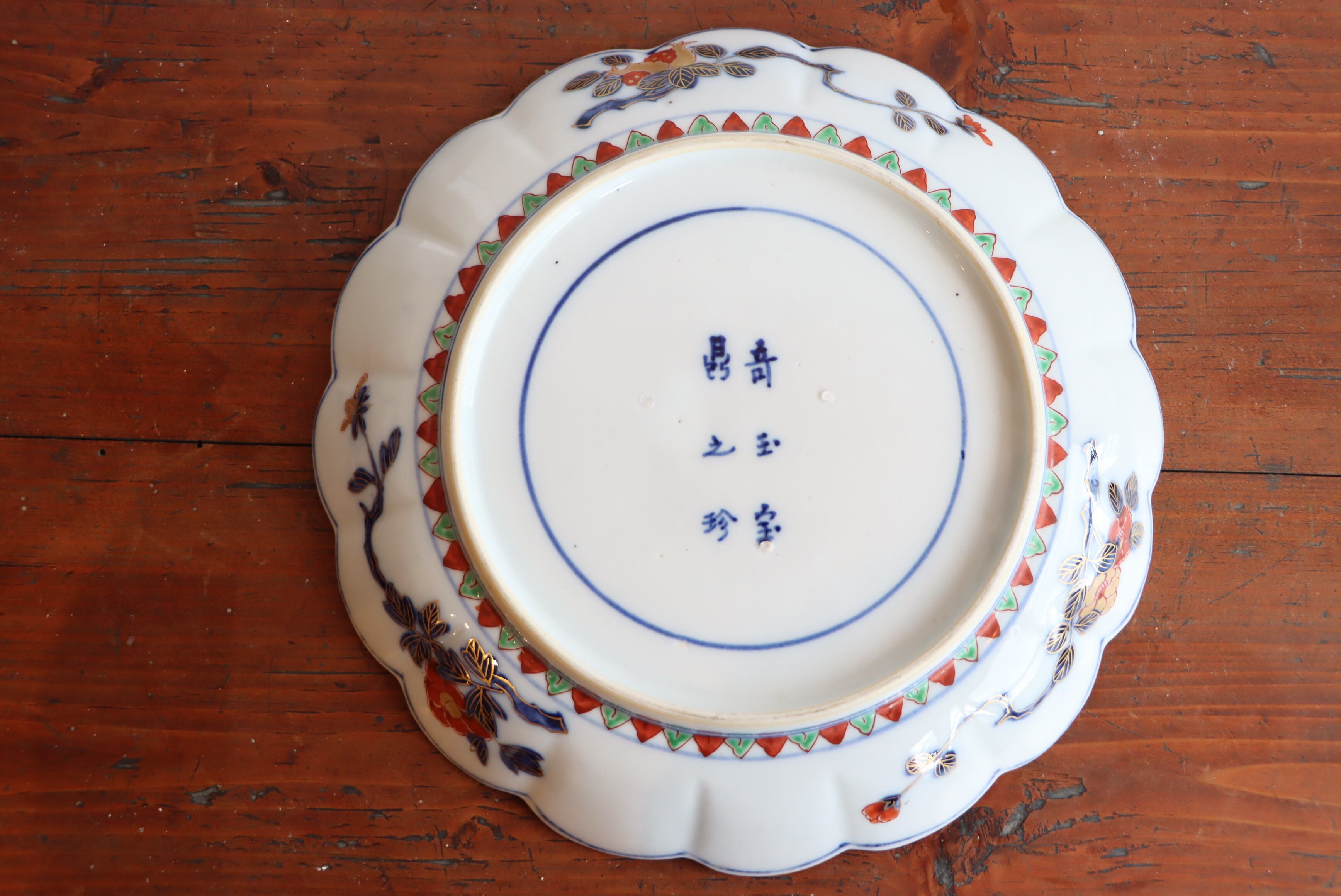 大聖寺伊万里 色絵 赤玉瓔珞文 中皿 七寸 通りもの/Daisyo-ji Imari medium size plate