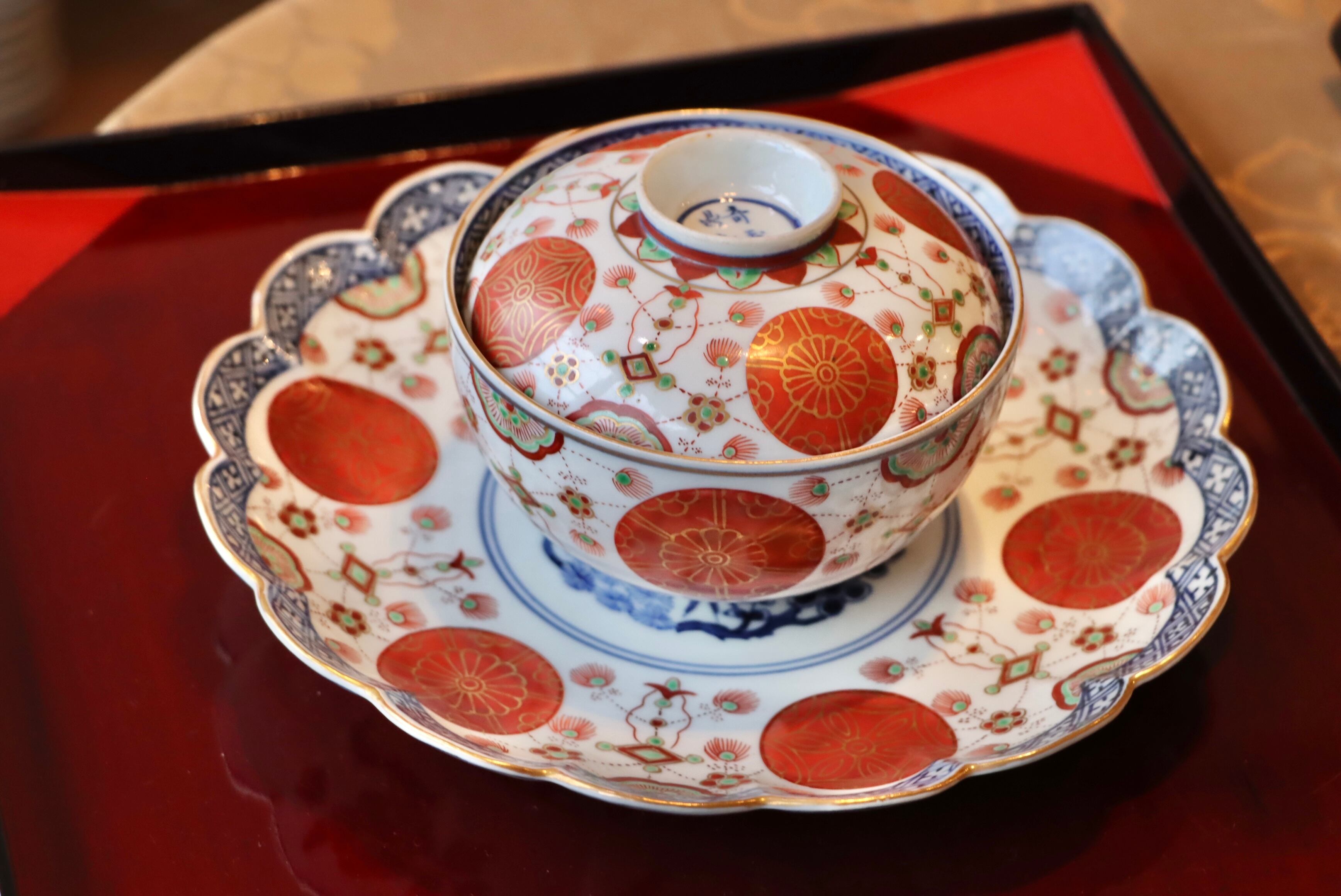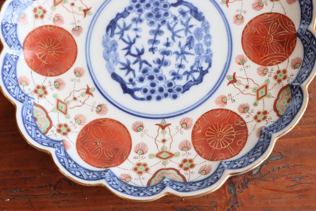 【Daisyo-ji Imari medium size plate with "Akadama-yoraku" design in overglaze enamels.】