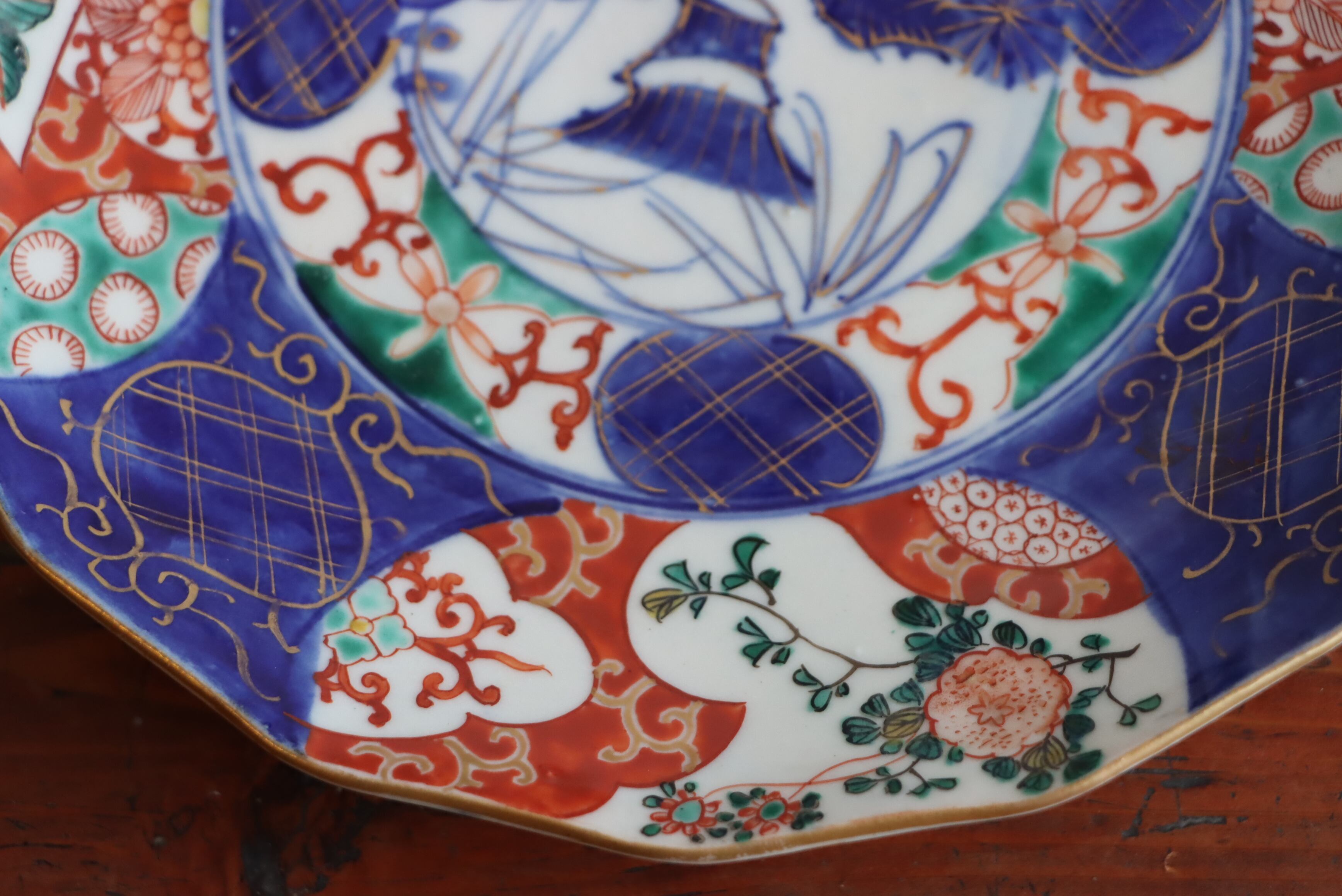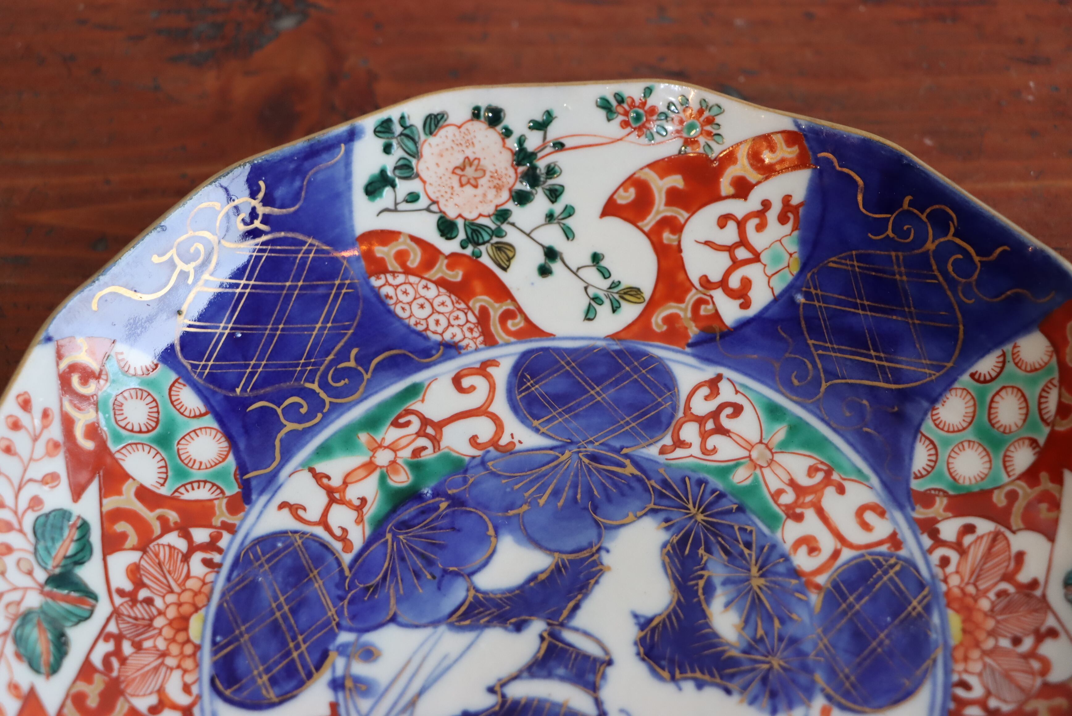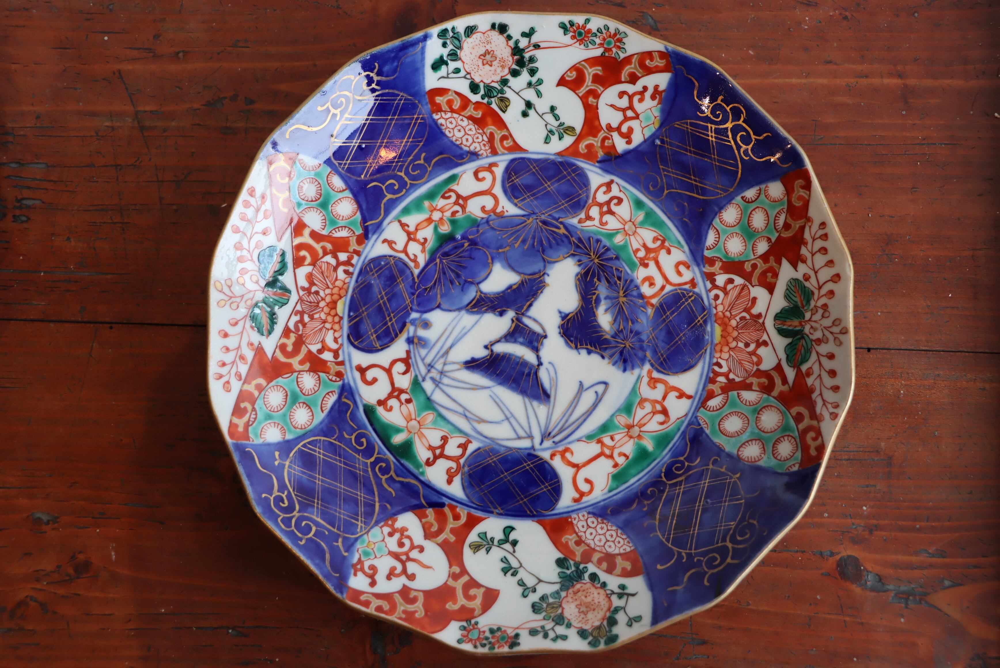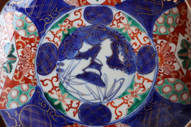 【Medium size plate with paulownia ,pine, bamboo and plum design in overglaze enamels.】