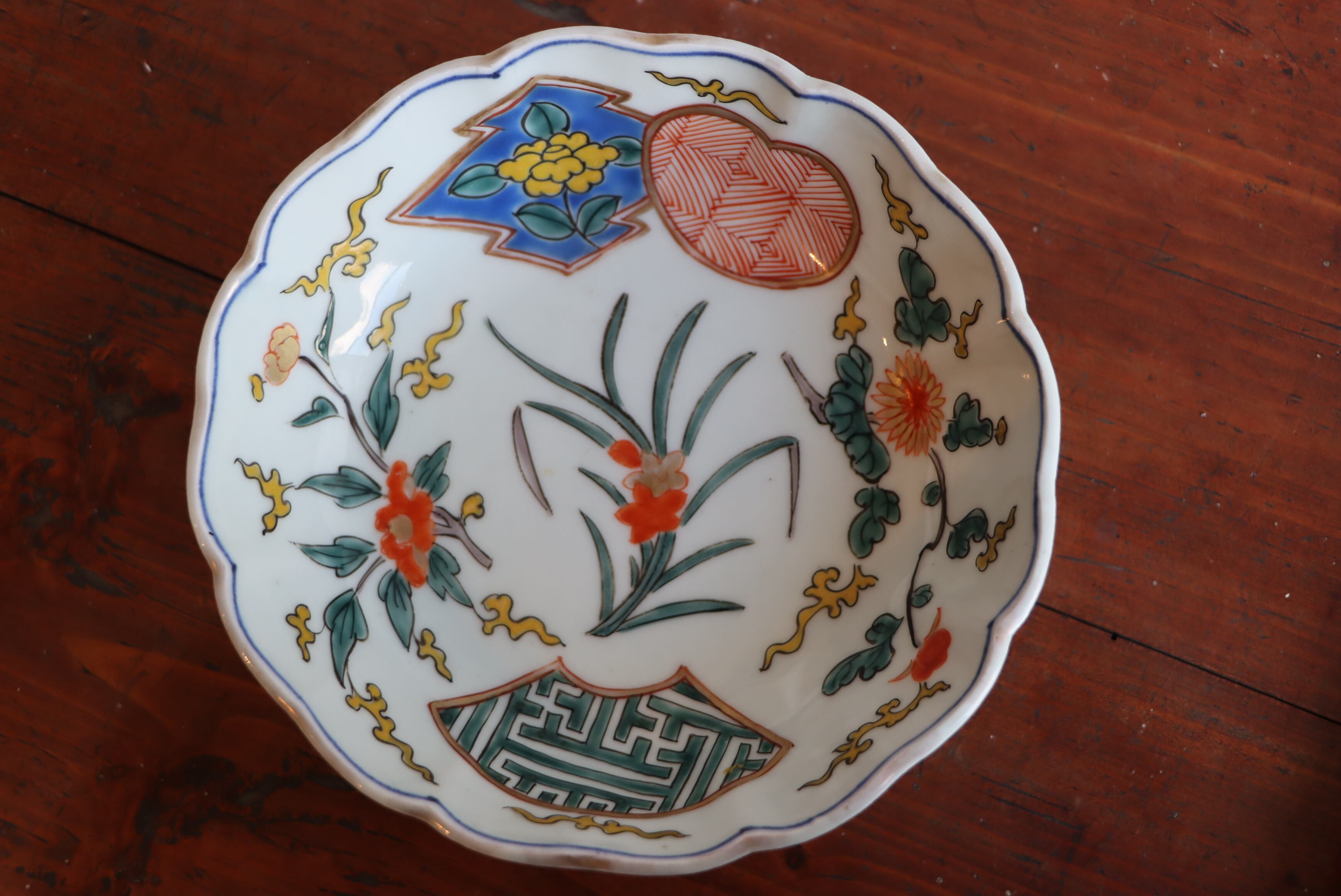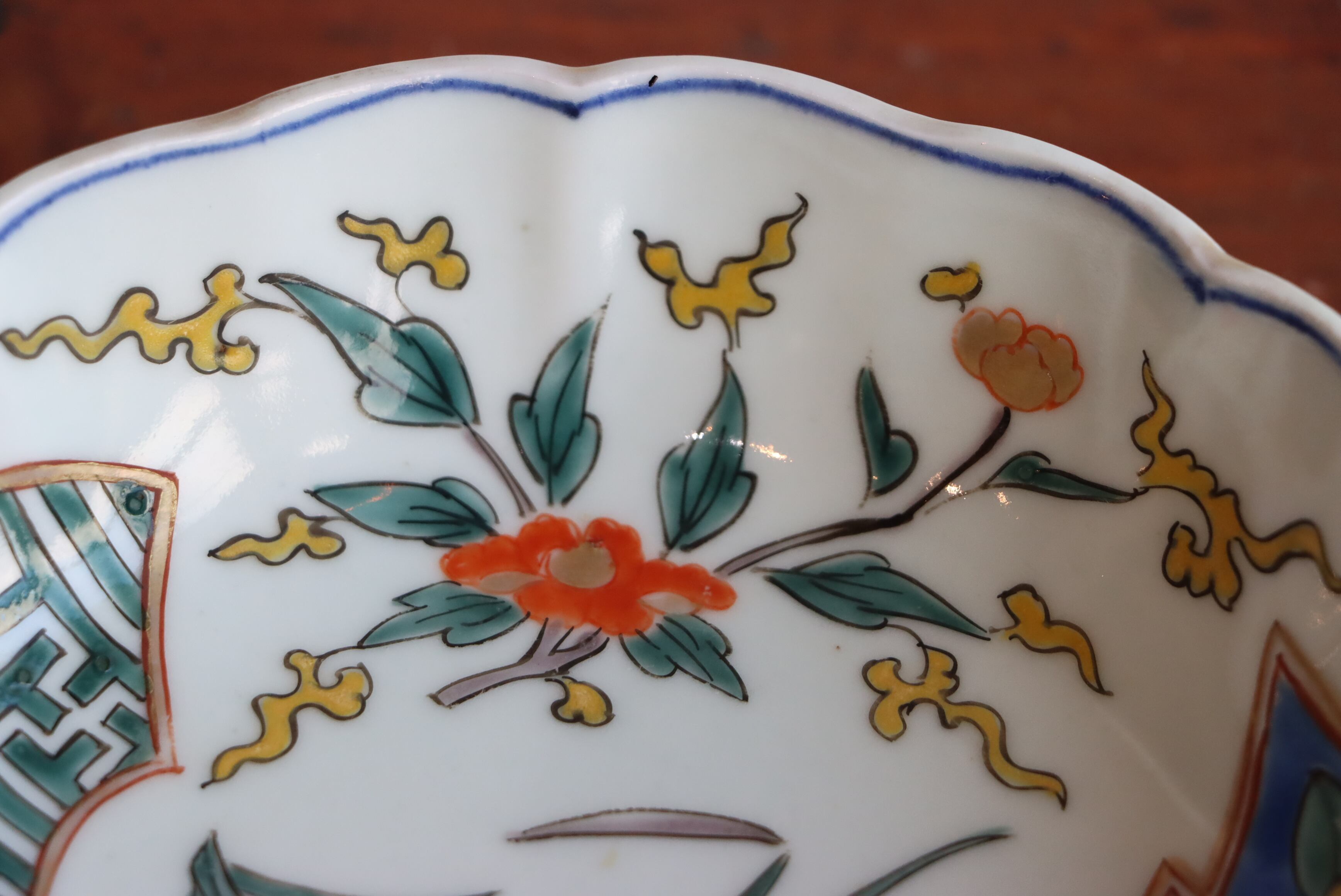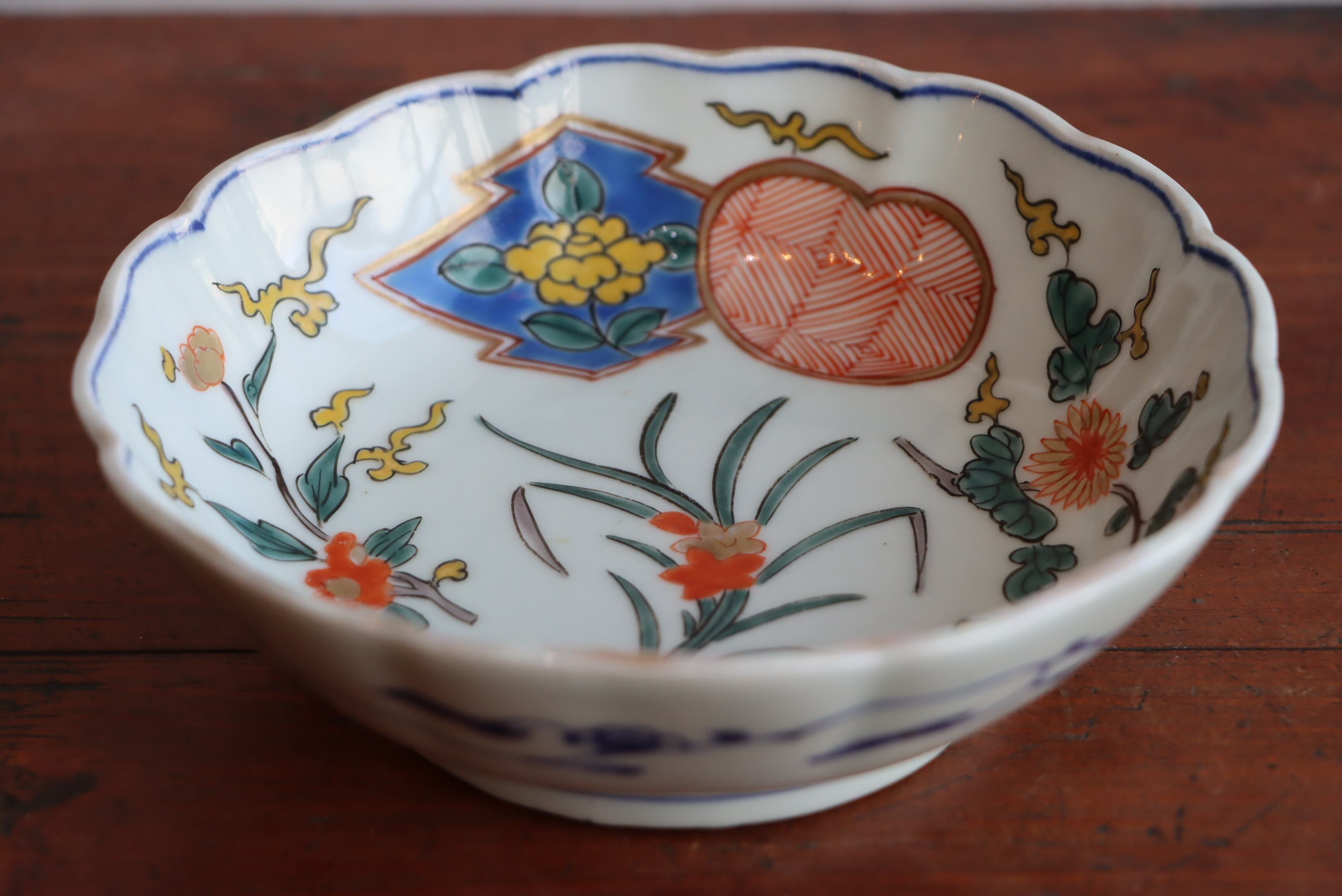伊万里焼 色絵 花扇文 膾皿/Imari lobed bowl