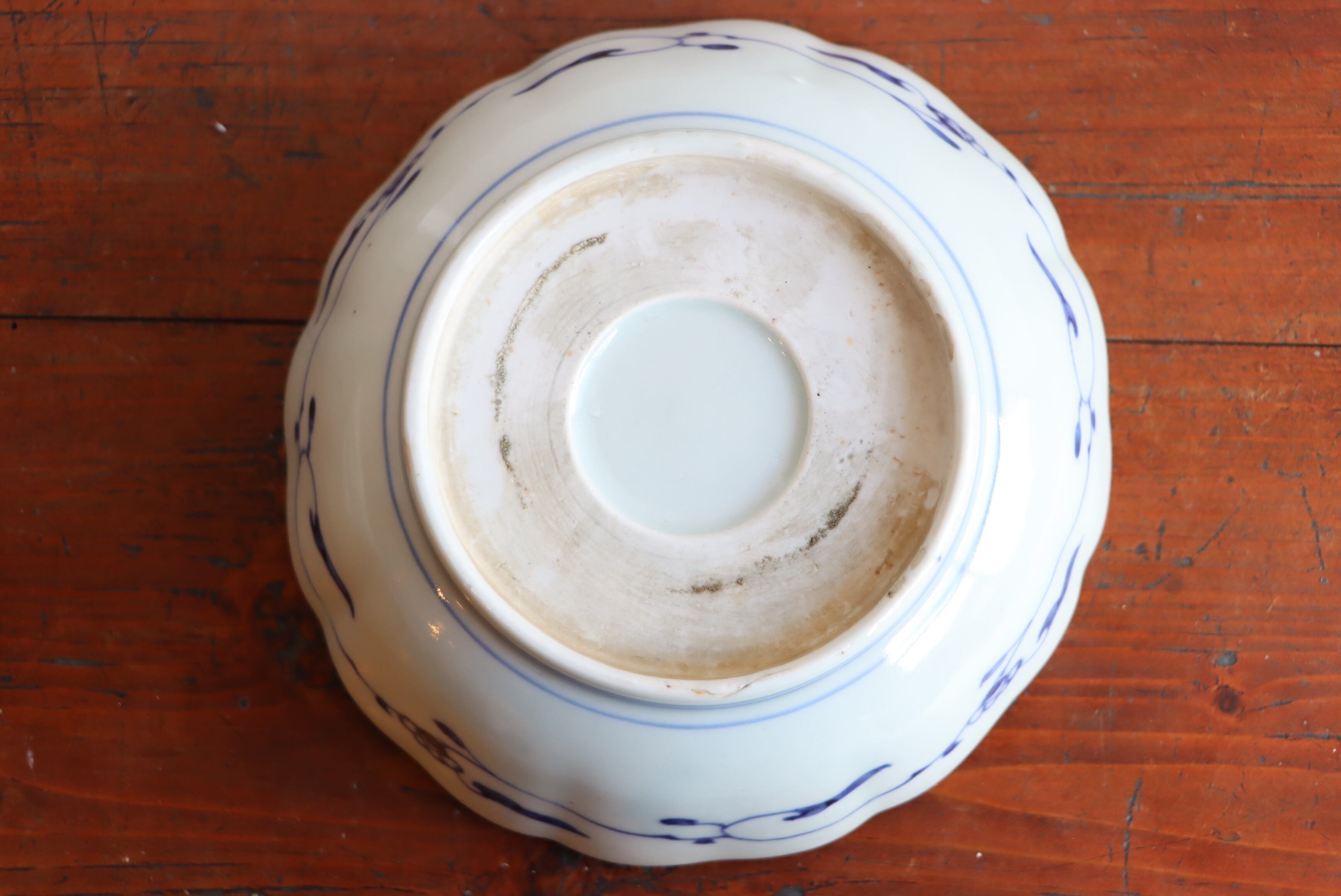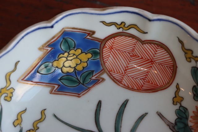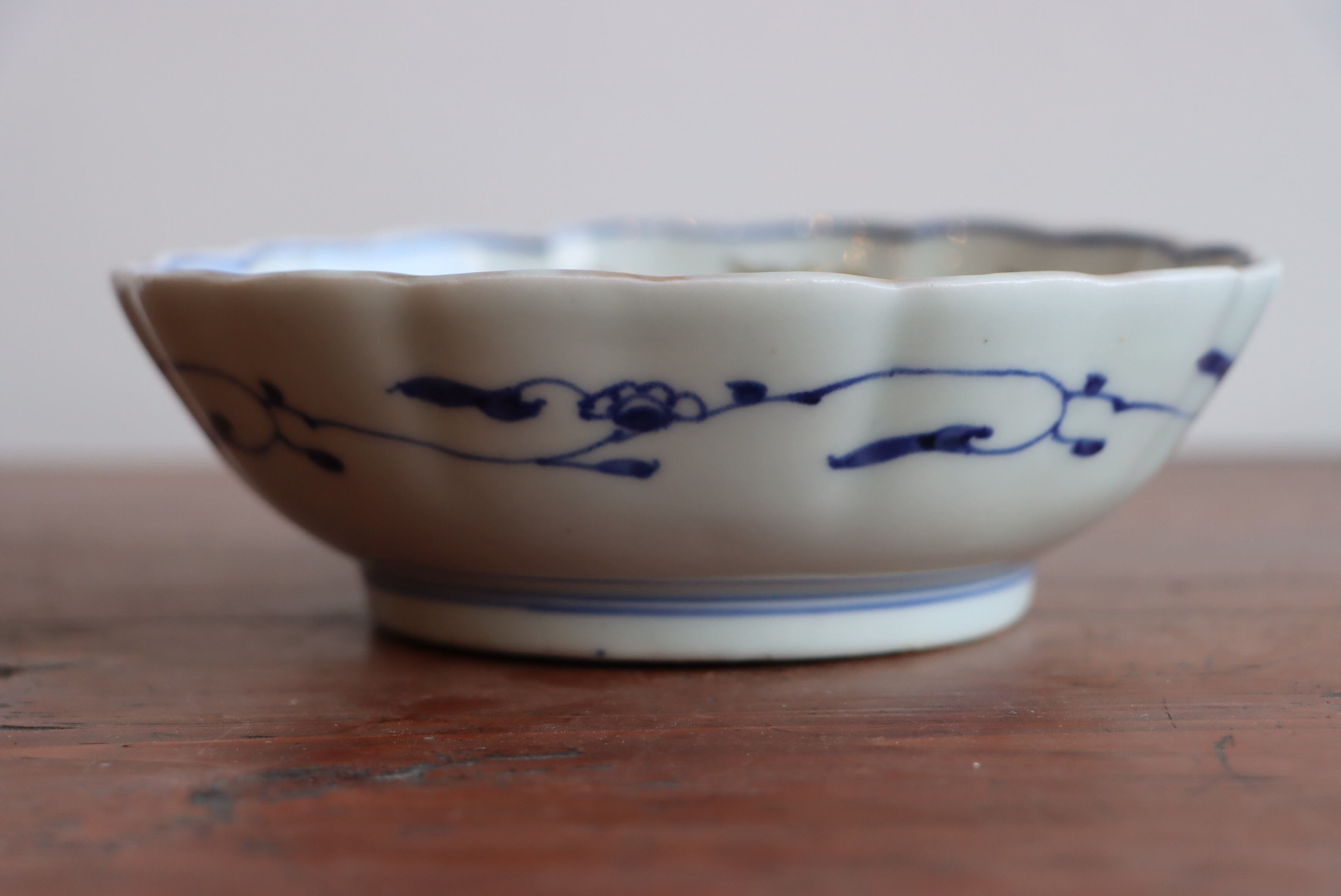 伊万里焼 色絵 花扇文 膾皿/Imari lobed bowl