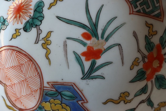 【Imari lobed bowl with flower and fan design in overglaze enamels.】