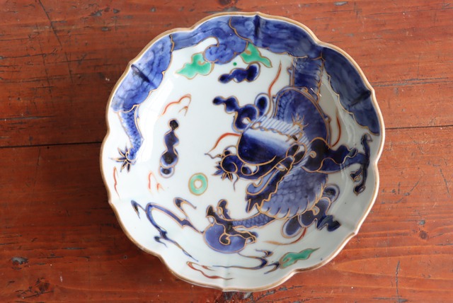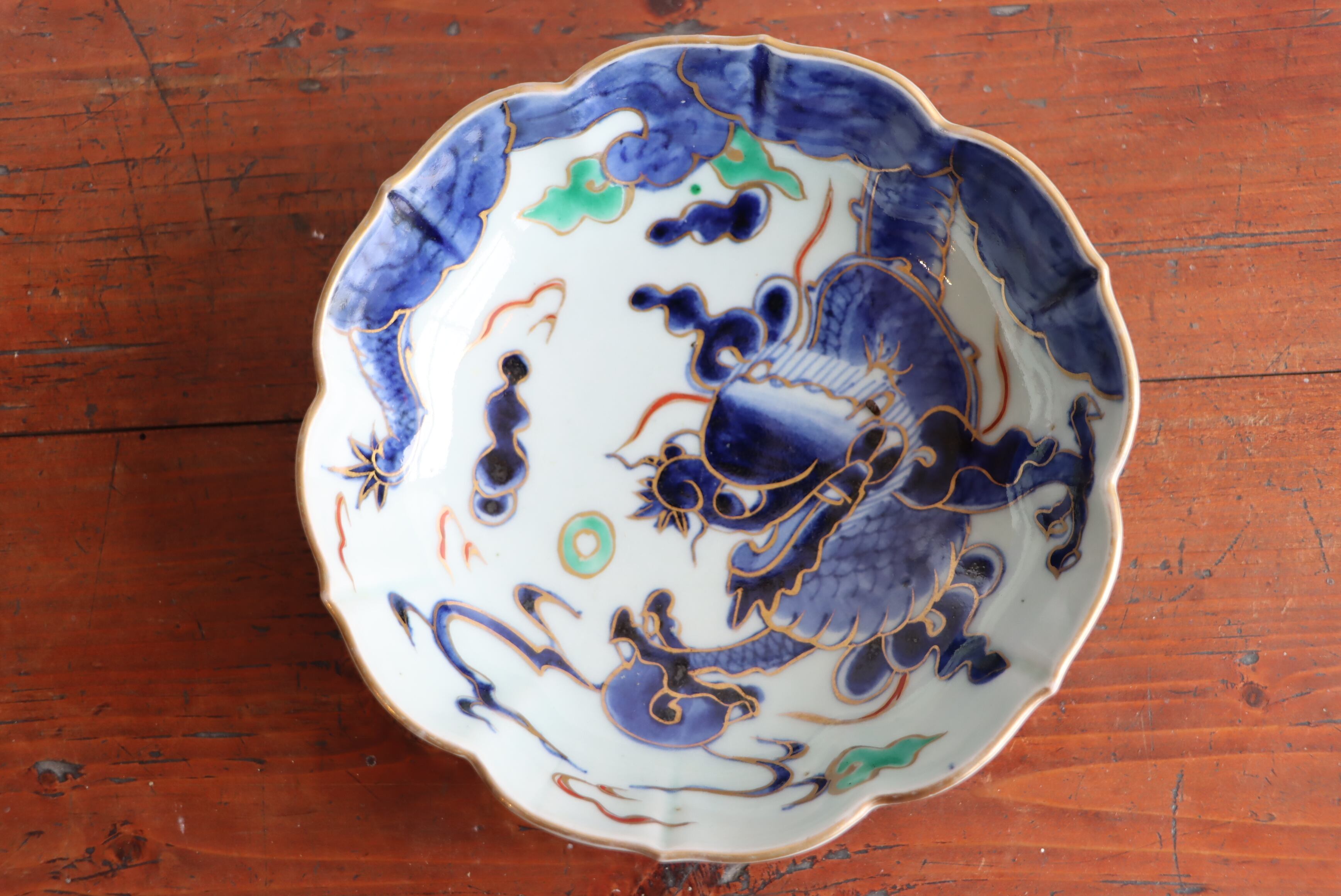 古伊万里 色絵 龍宝珠文 膾皿/Old Imari lobed bowl