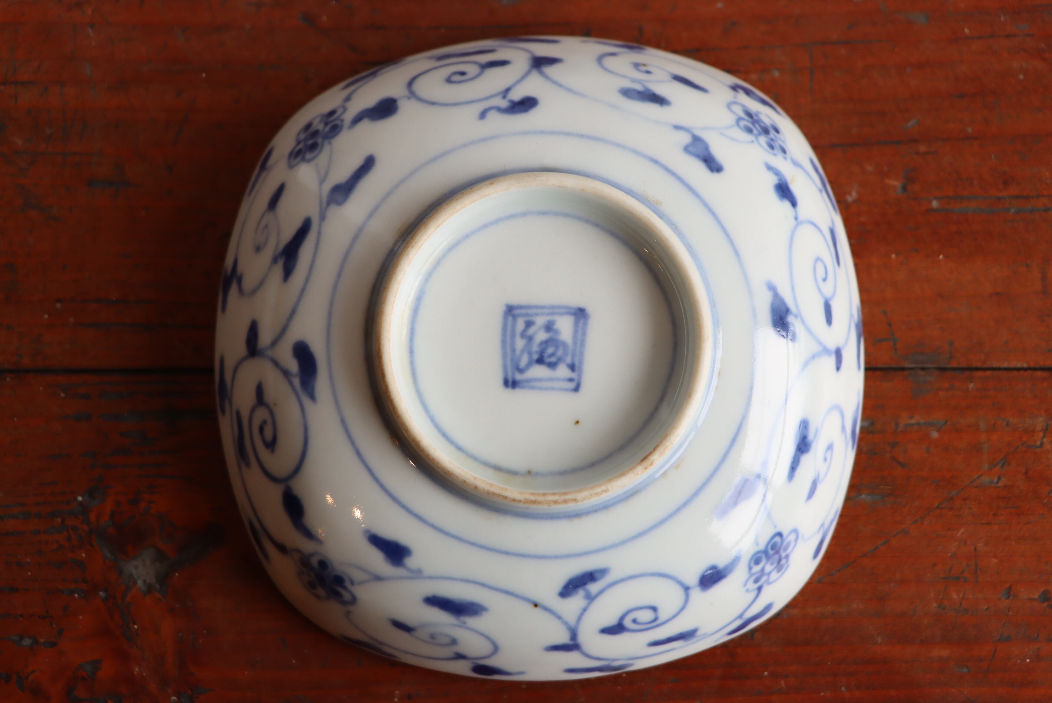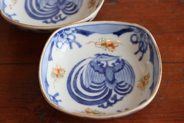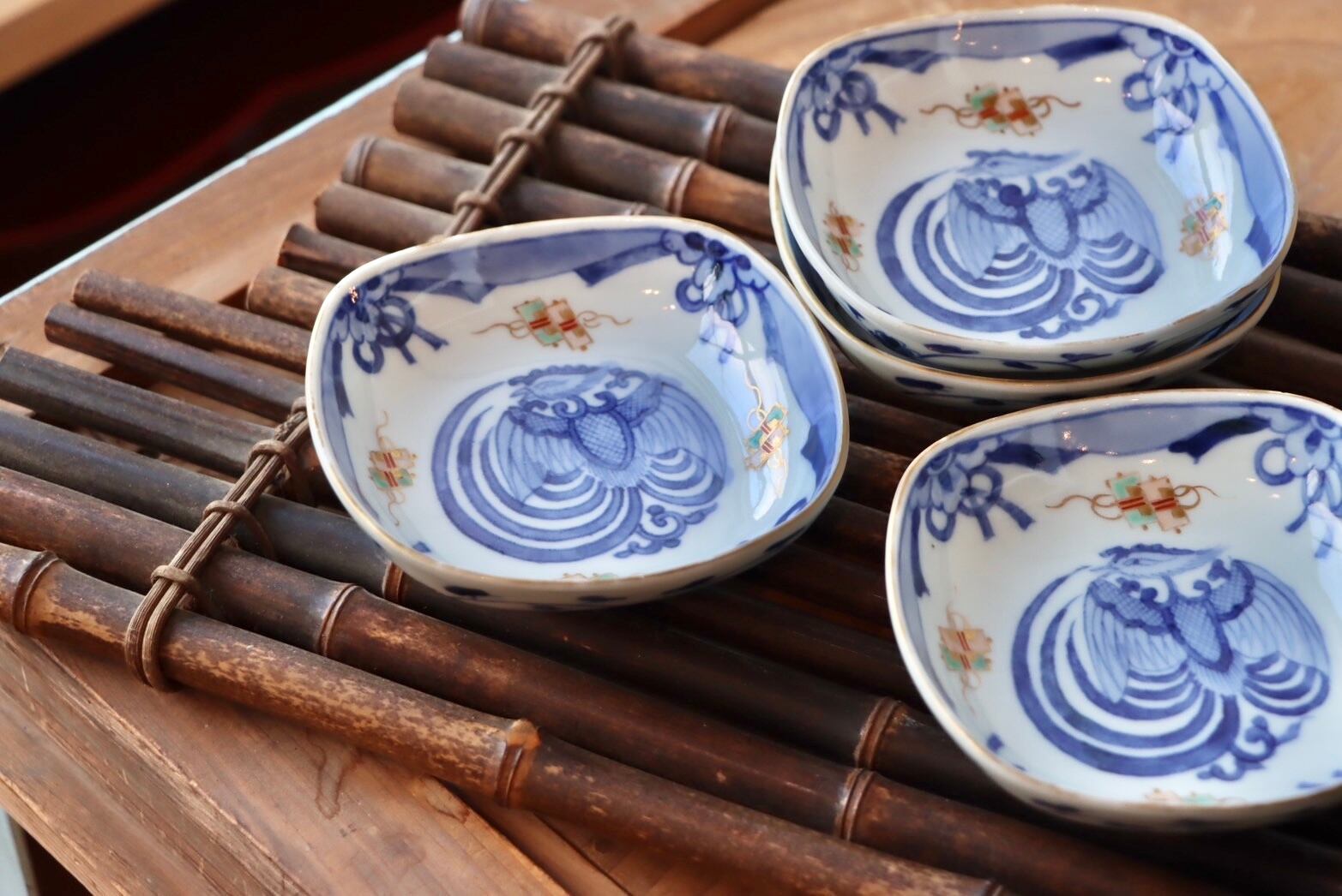 古伊万里 色絵 鳳凰宝巻文 四方形 小皿/Old Imari small plate