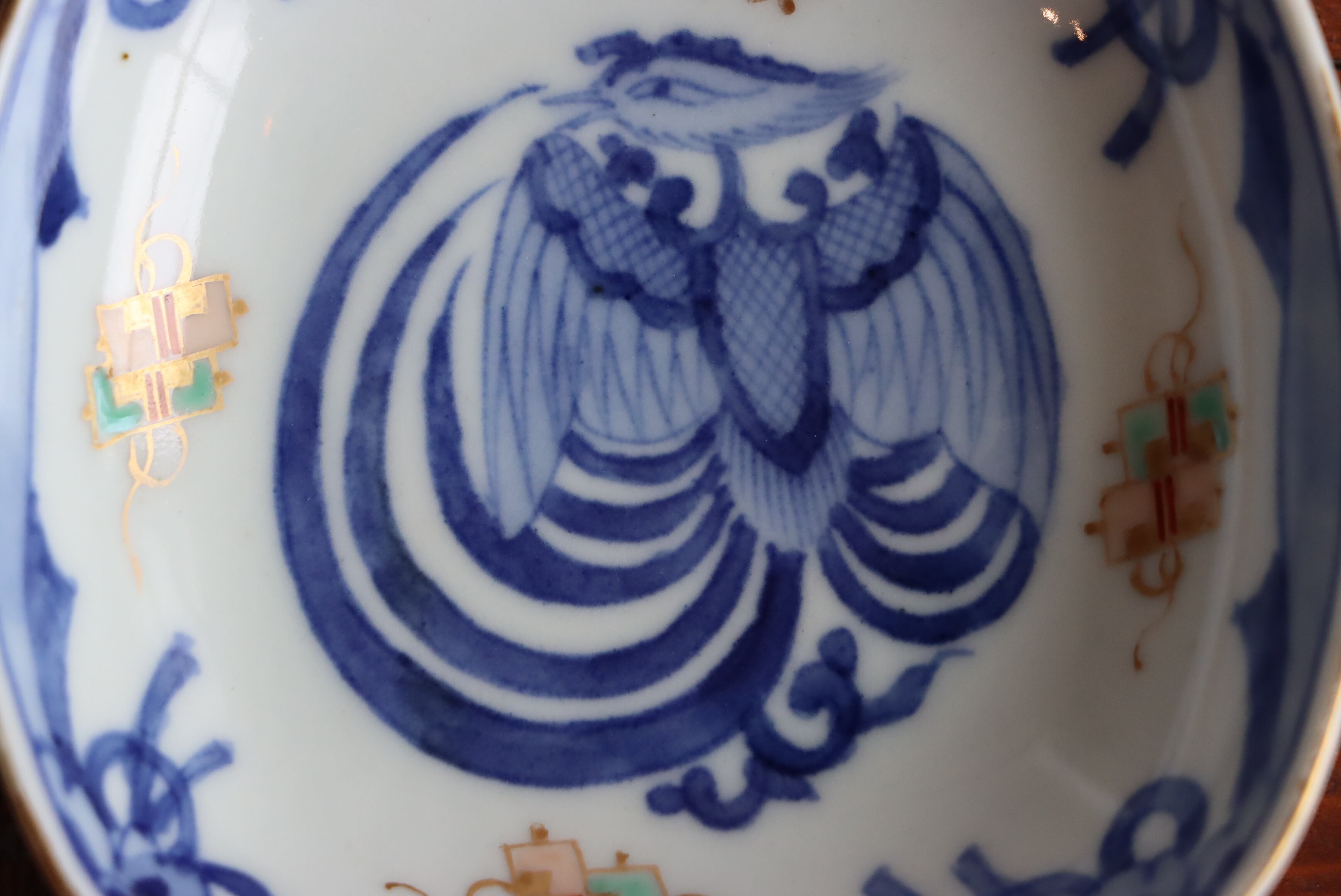 【Old Imari square shaped small plate with phoenix and bao-juan design in overglaze enamels.】