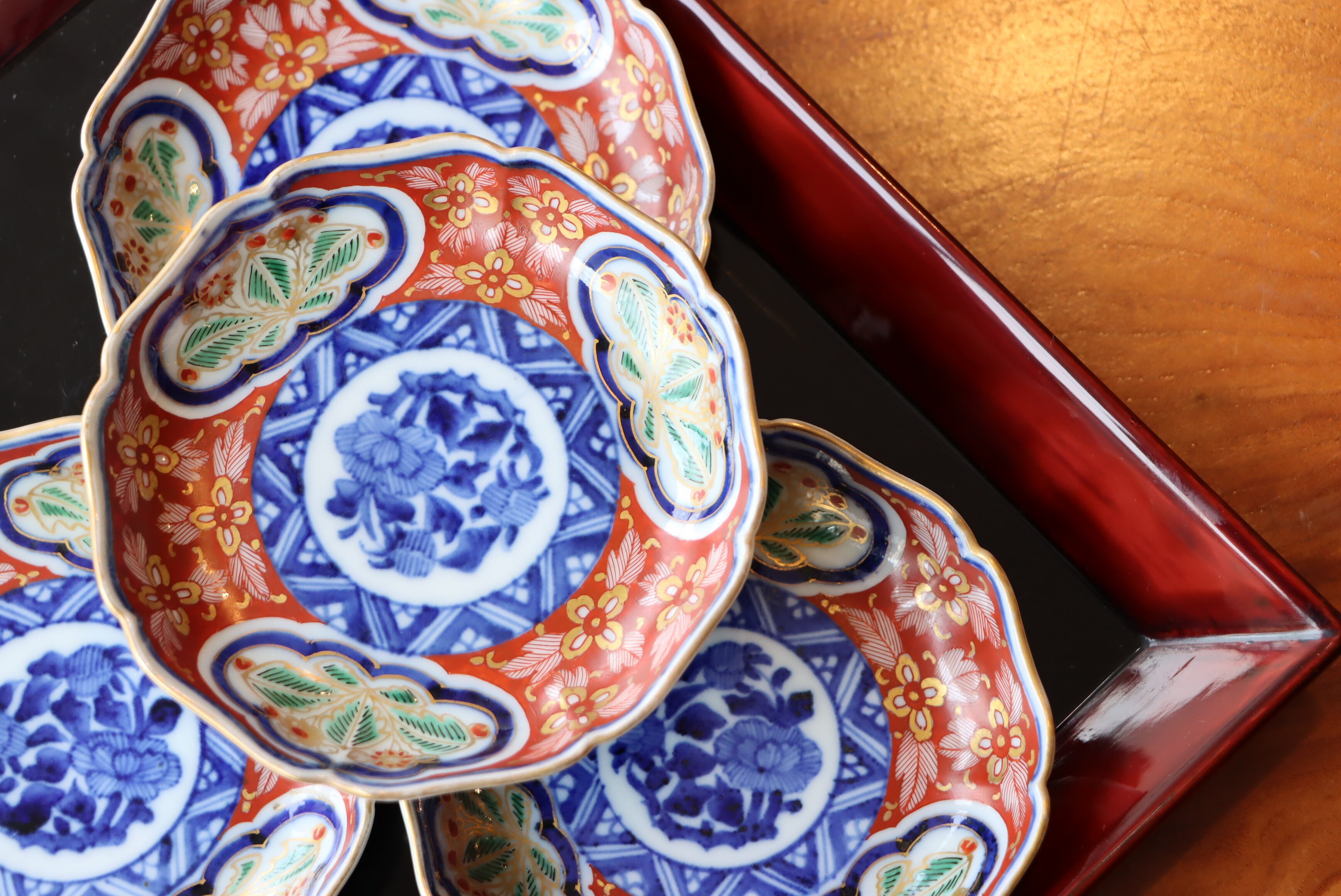焼成時に窯の中でできる鉄分、くっつき、かまきず、ピンホール、経年による釉薬の薄れがございます。また、一枚一枚手描き、手作りですので器のサイズ(ミリ)、色味、描かれている文様の大きさなど個体差があり、ひとつとして同じものはございません。そういった時代感、個性をご理解いただき、楽しんでくだされば幸いです。電子レンジや食器洗い乾燥機のご使用はお控えください。