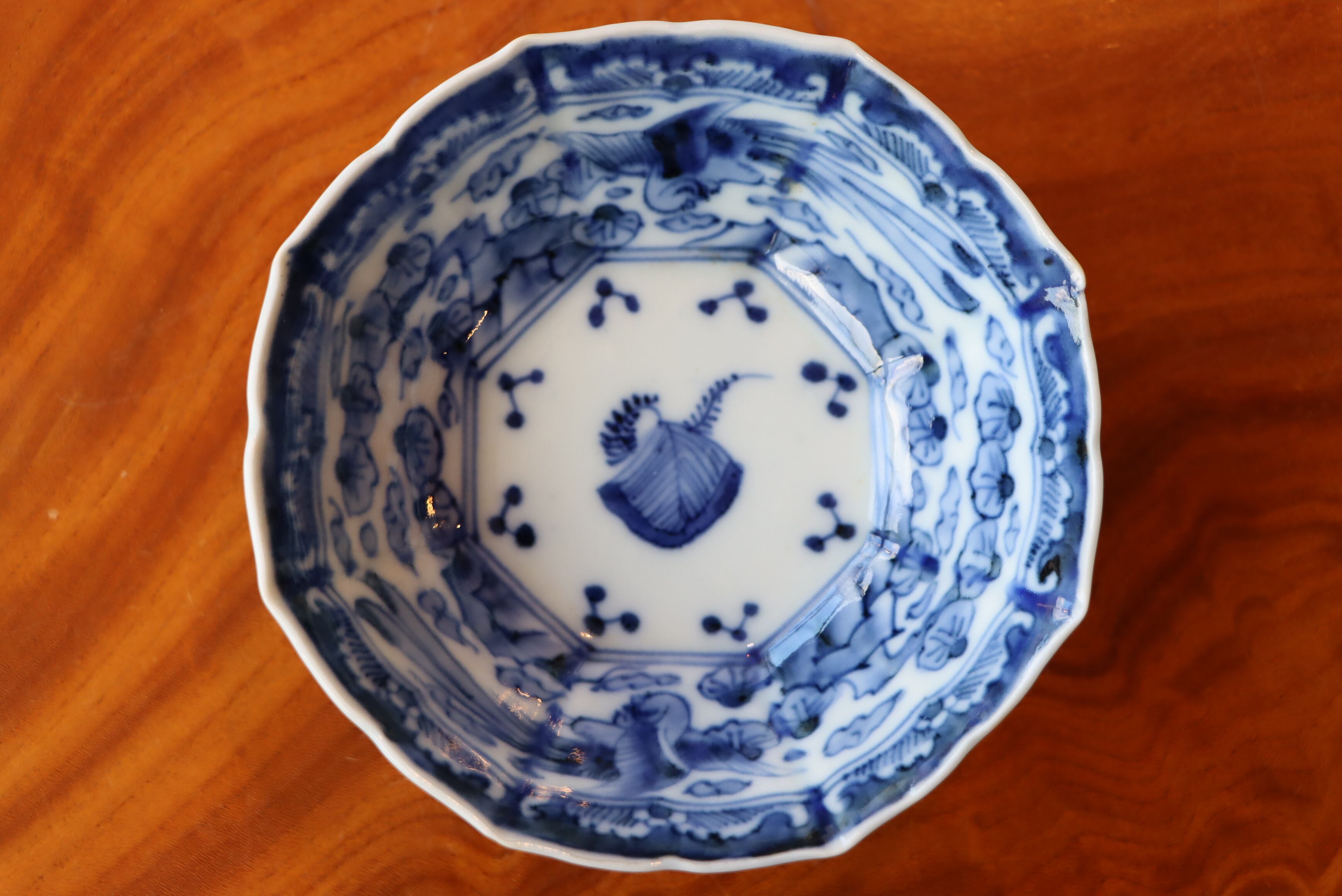 九谷焼 染付 鳳凰桐文 八角形 向付/Kutani bowl