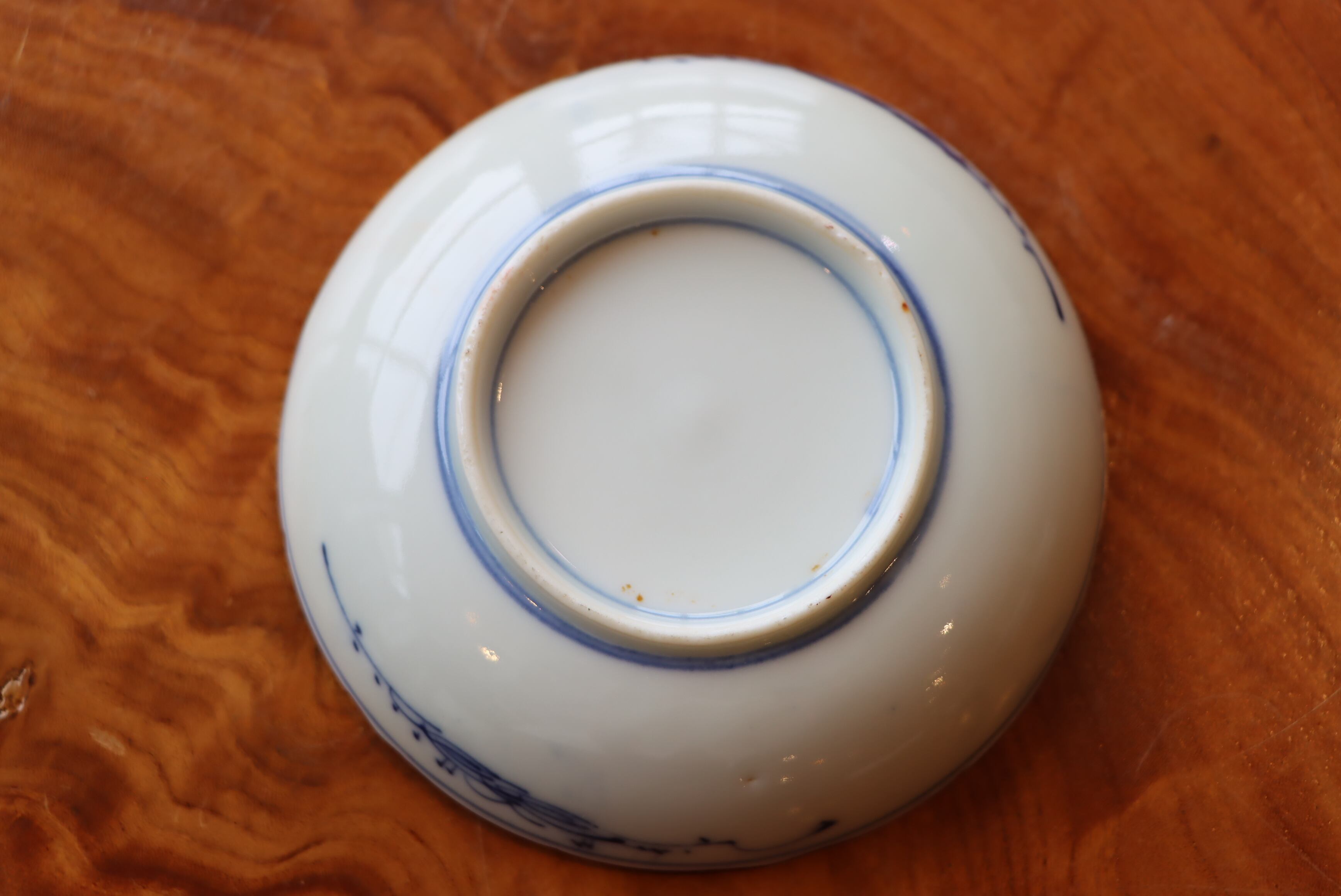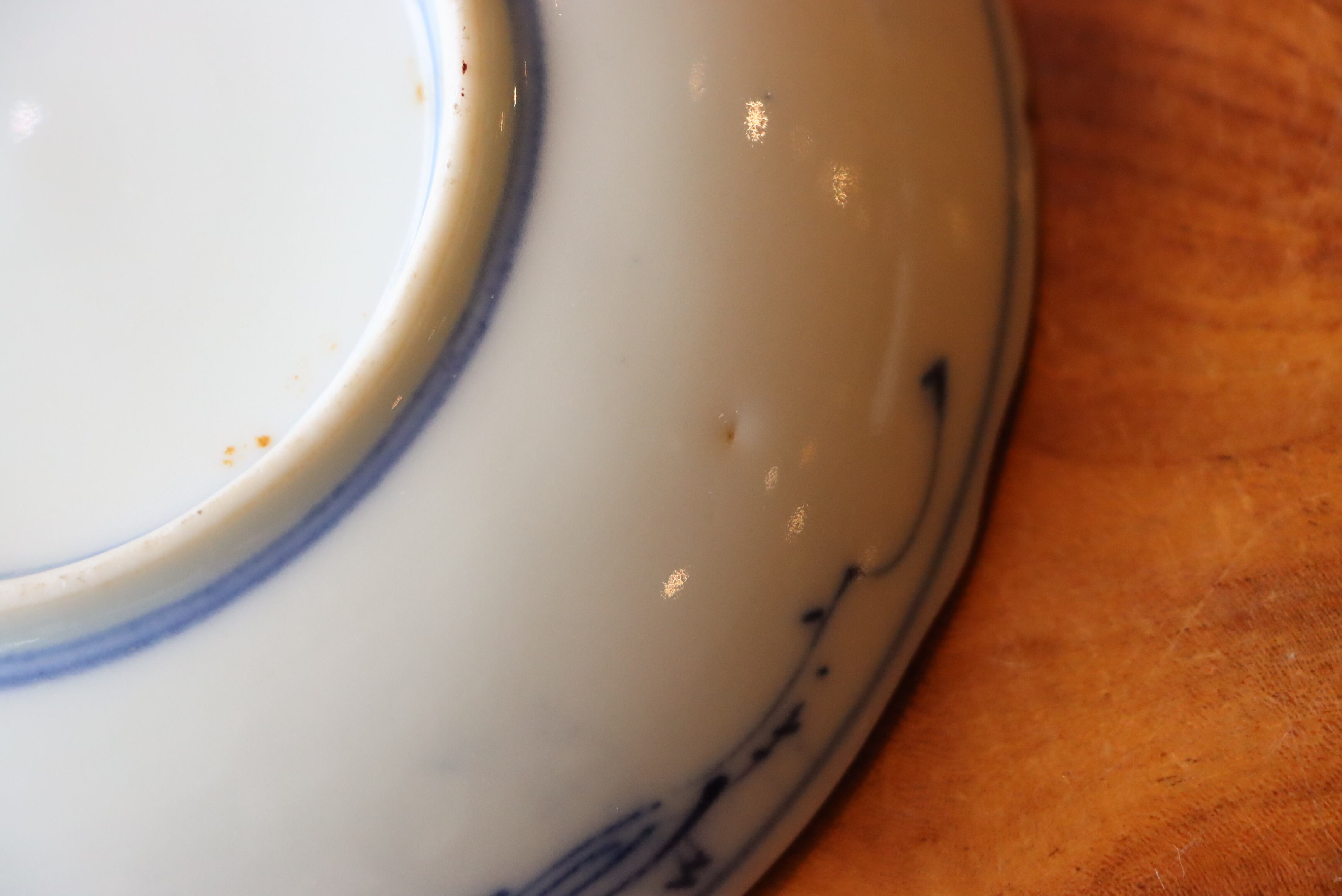 焼成時に窯の中でできる鉄分、くっつき、かまきず、ピンホール、経年による釉薬の薄れがございます。また、一枚一枚手描き、手作りですので器のサイズ(ミリ)、色味、描かれている文様の大きさなど個体差があり、ひとつとして同じものはございません。そういった時代感、個性をご理解いただき、楽しんでくだされば幸いです。電子レンジや食器洗い乾燥機のご使用はお控えください。