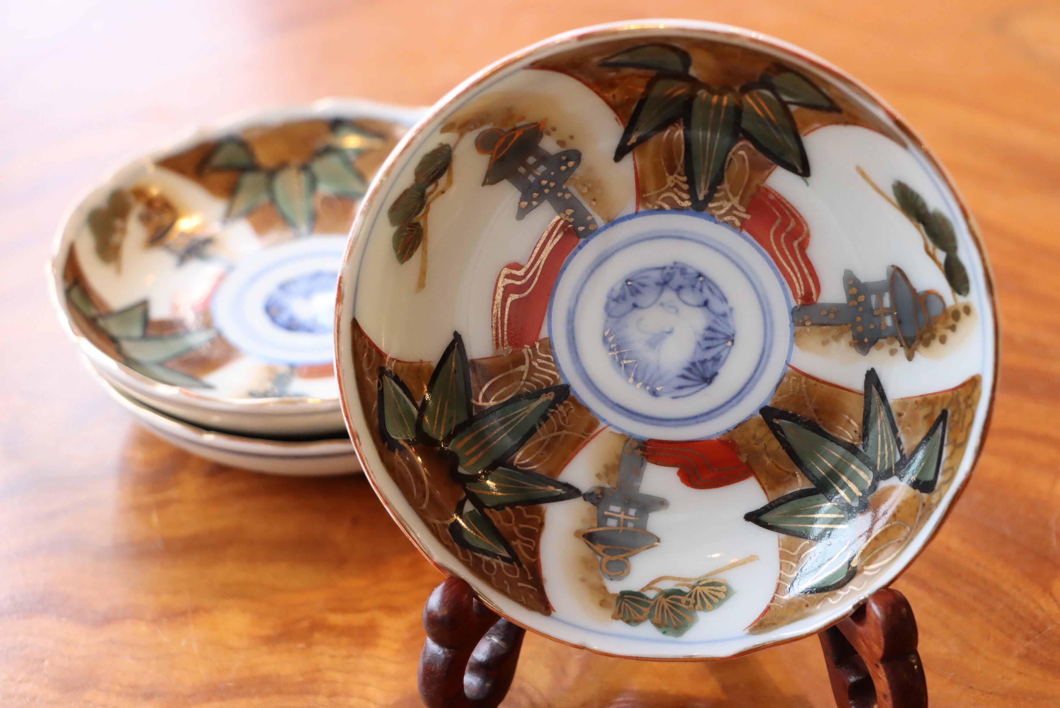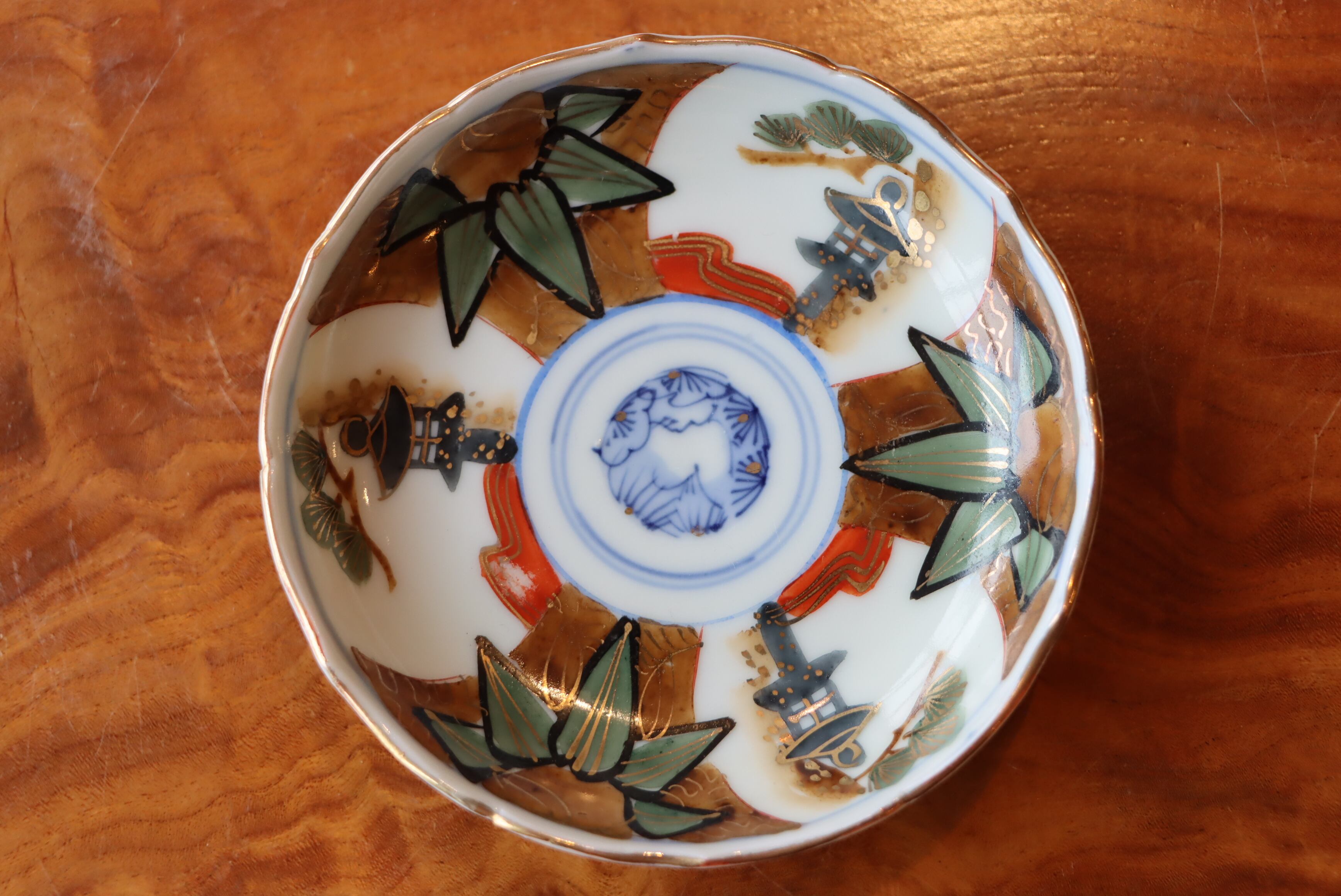 色絵 松竹に石灯籠文 小皿 三枚組/Small plate , set of 3