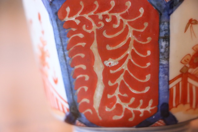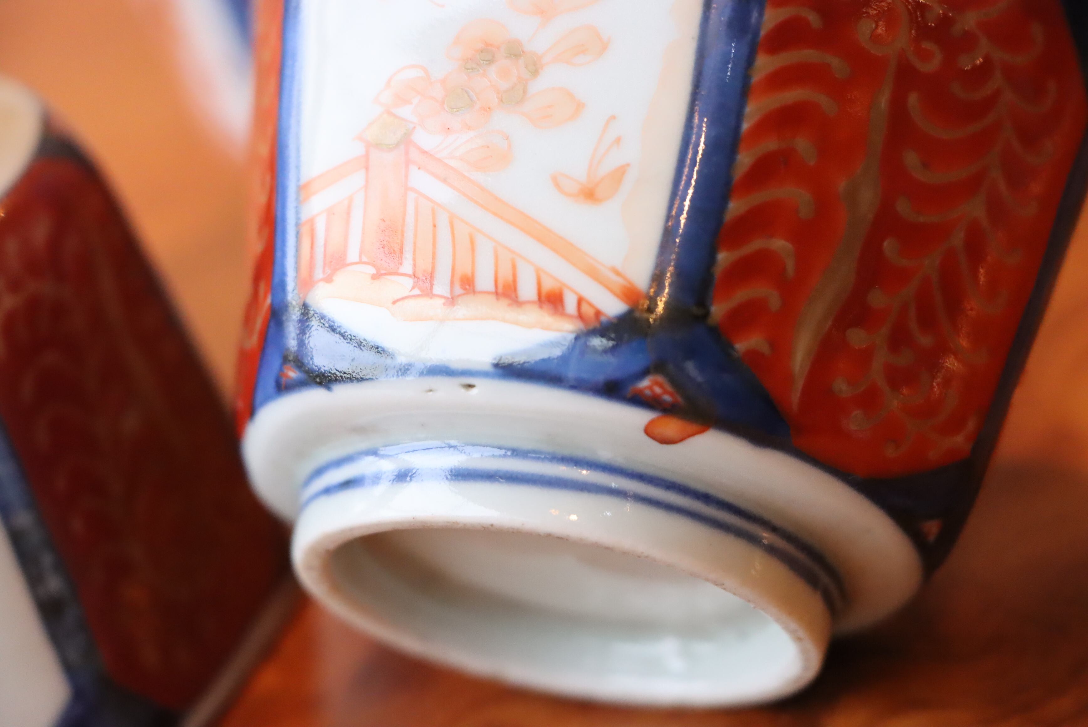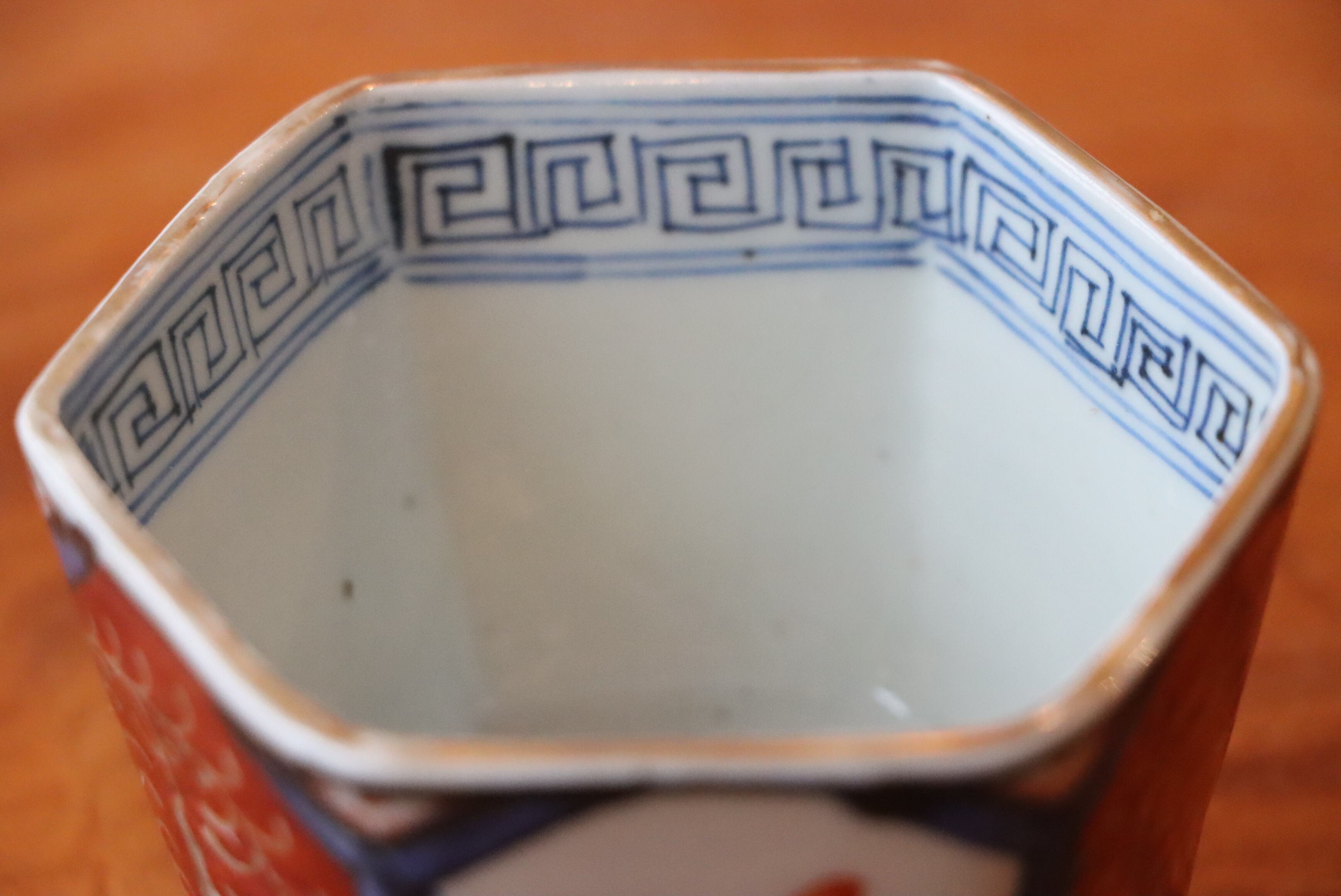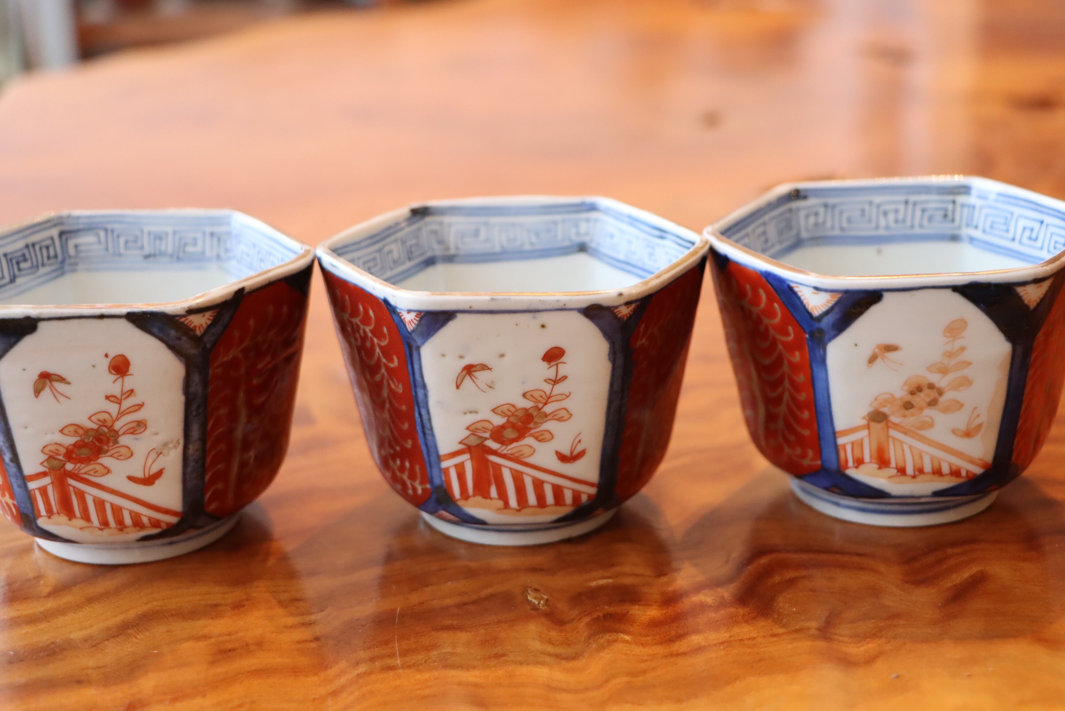 【Imari hexagonal cup with flower and bird design in overglaze enamels ,set of 3】