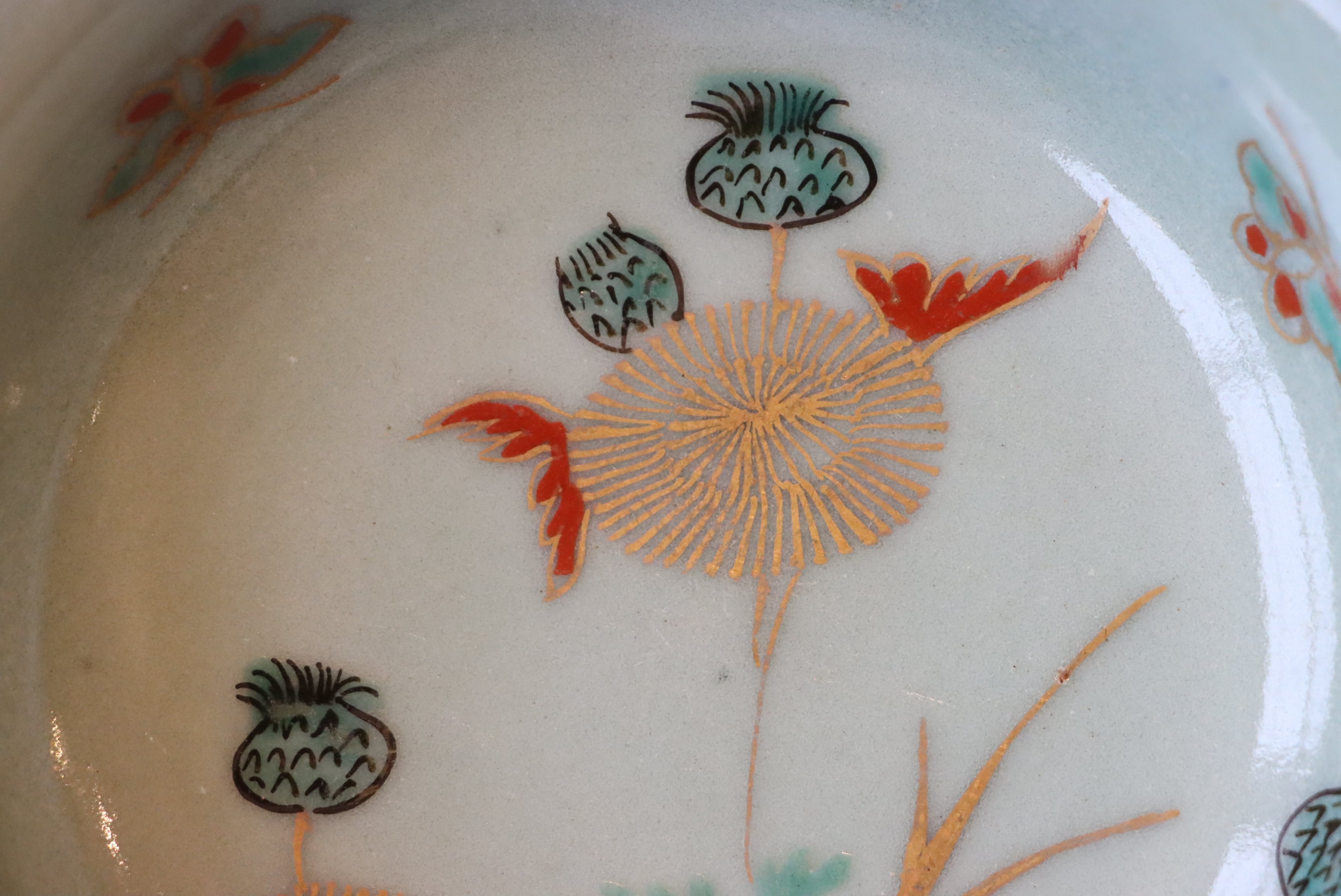 【Old Imari cup with dandelion and butterfly design in overglaze enamels set of 2】
