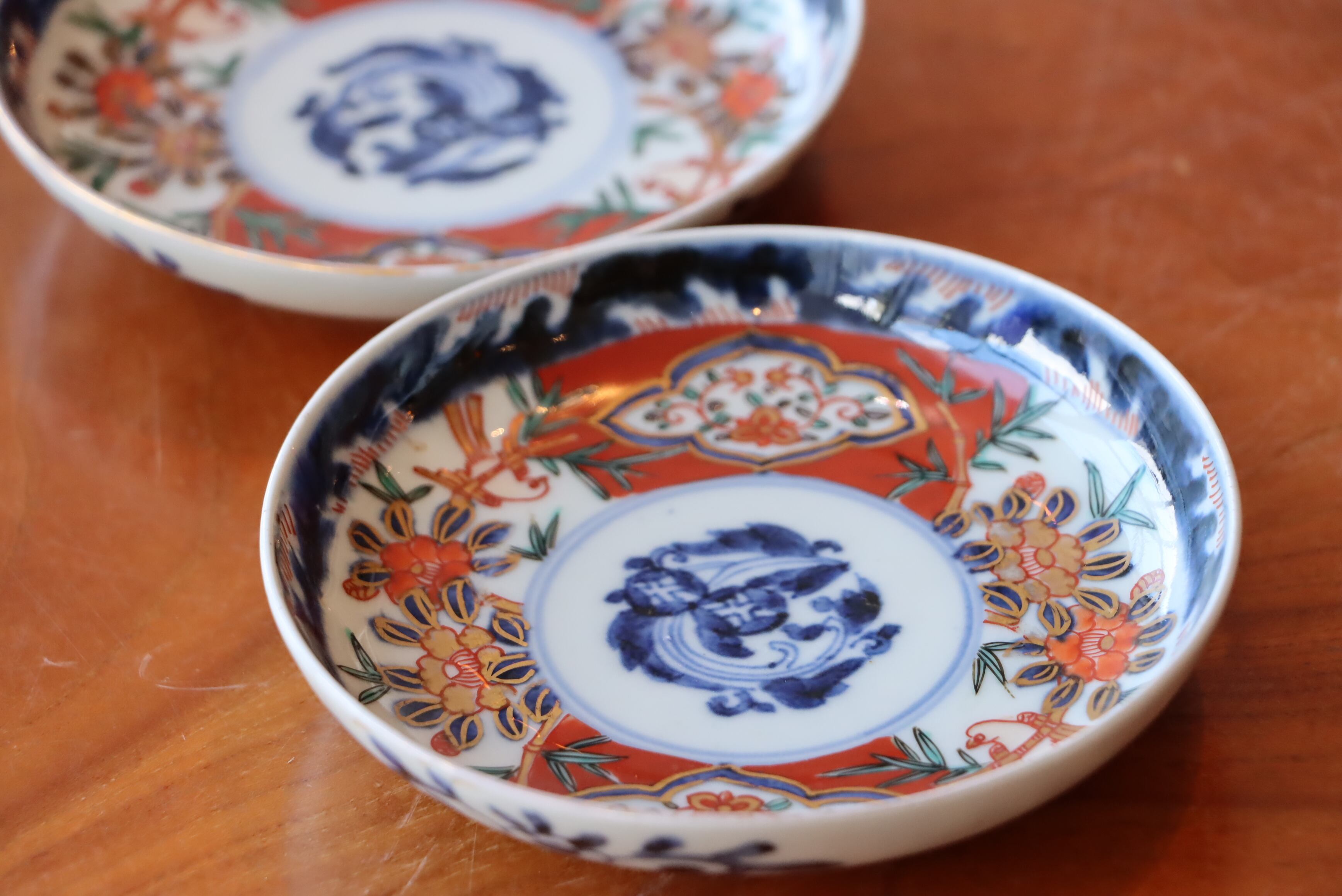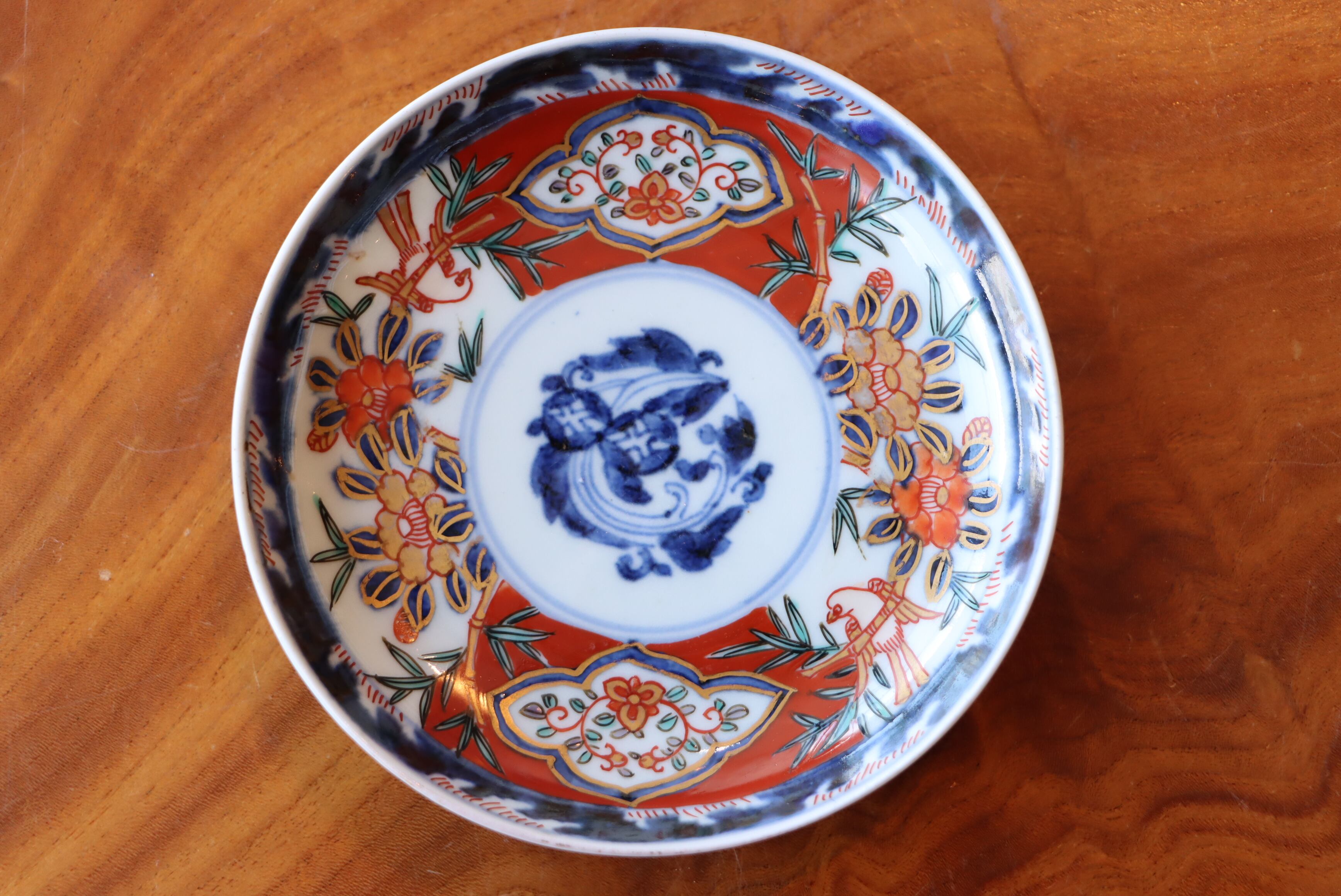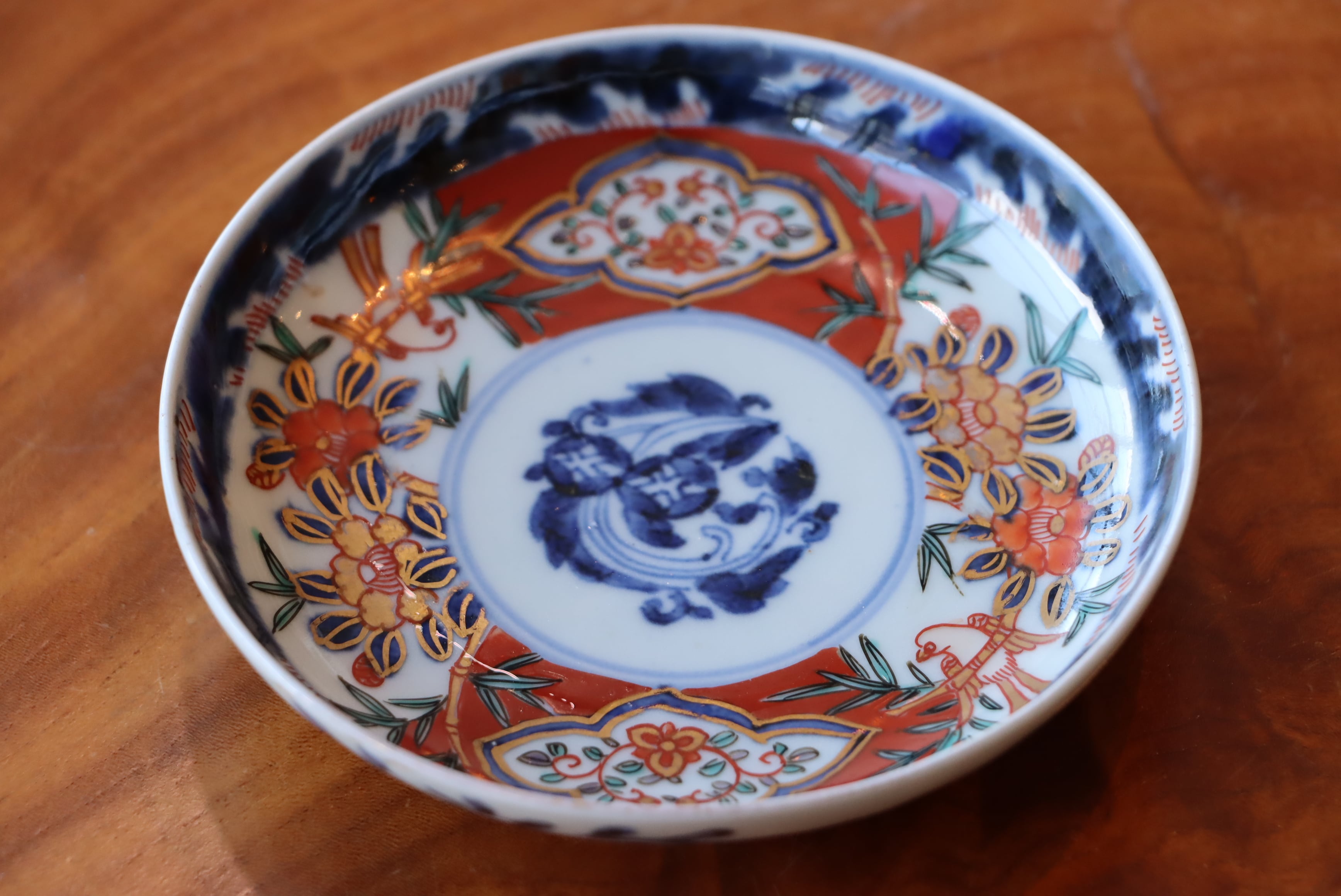伊万里焼 色絵 椿鷹文 小皿/Imari small plate