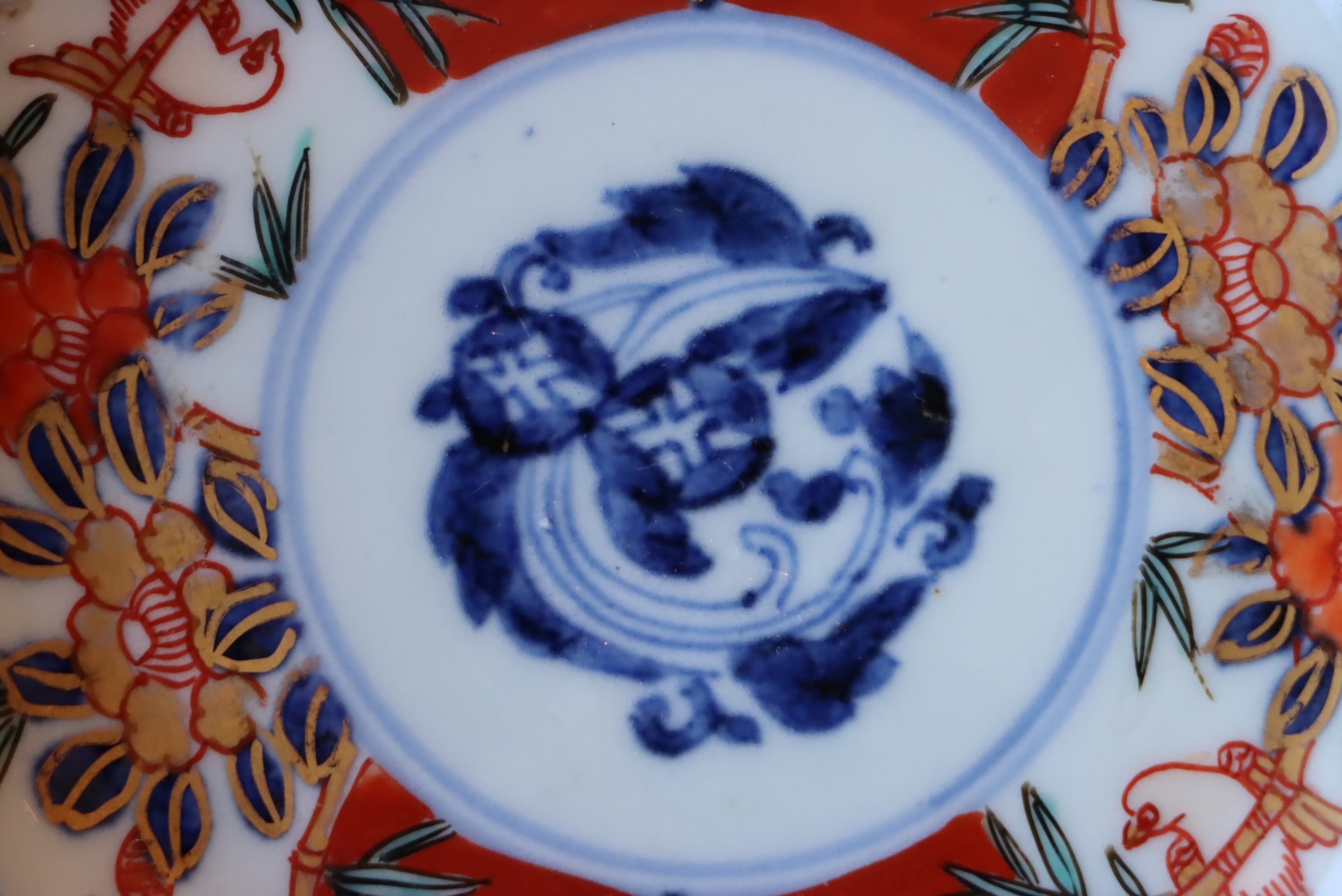 【Imari small plate with camellia and hawks design in overglaze enamels.】