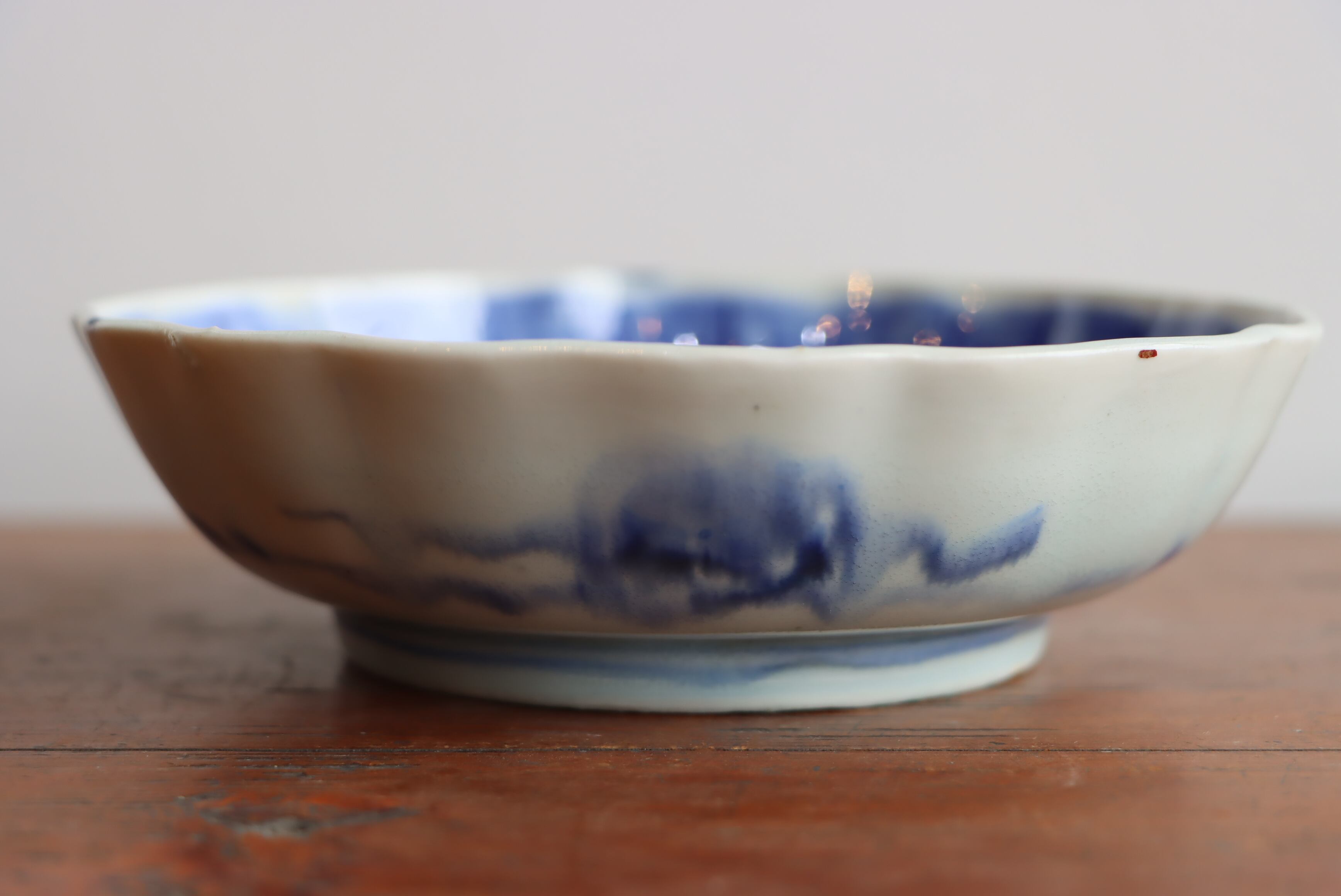 焼成時に窯の中でできる鉄分、くっつき、かまきず、ピンホール、経年による釉薬の薄れがございます。また、一枚一枚手描き、手作りですので器のサイズ(ミリ)、色味、描かれている文様の大きさなど個体差があり、ひとつとして同じものはございません。そういった時代感、個性をご理解いただき、楽しんでくだされば幸いです。電子レンジや食器洗い乾燥機のご使用はお控えください。