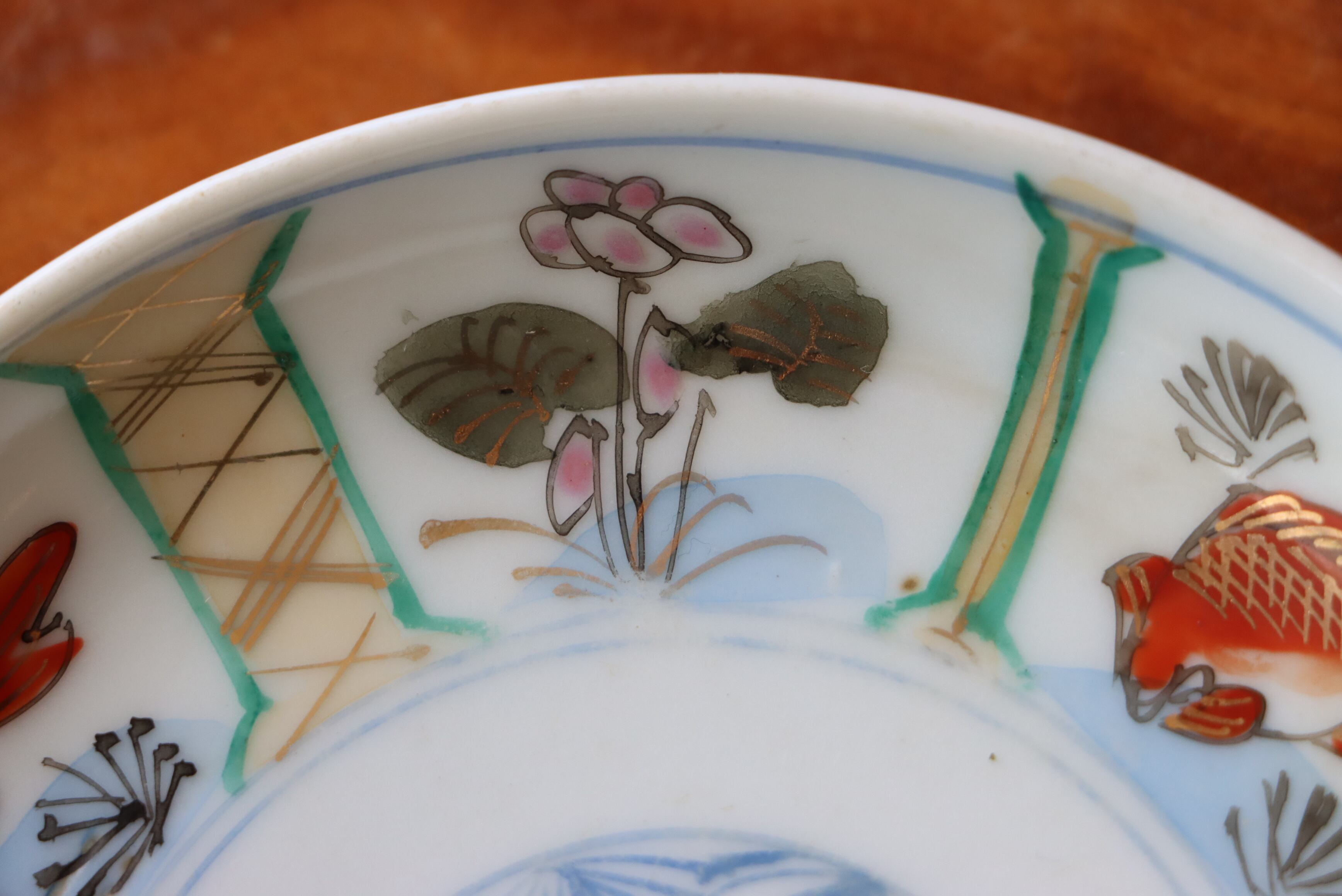 【Small plate with lotus and goldfish design in overglaze enamels,A】