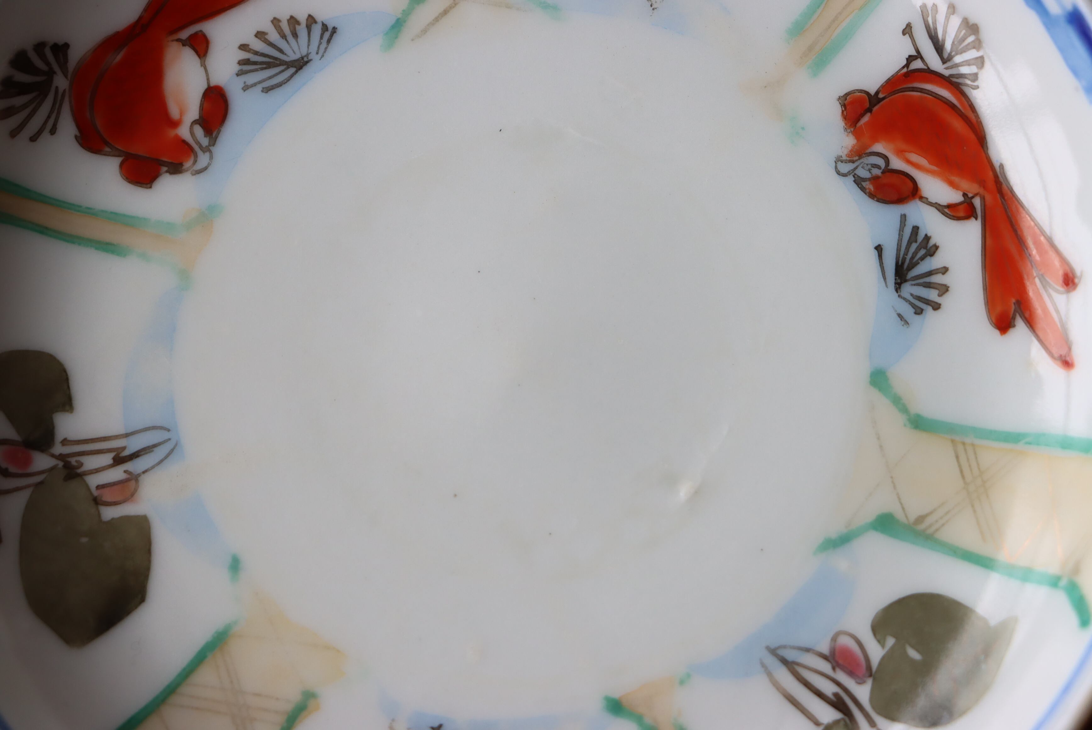 【Small plate with lotus and goldfish design in overglaze enamels,C】